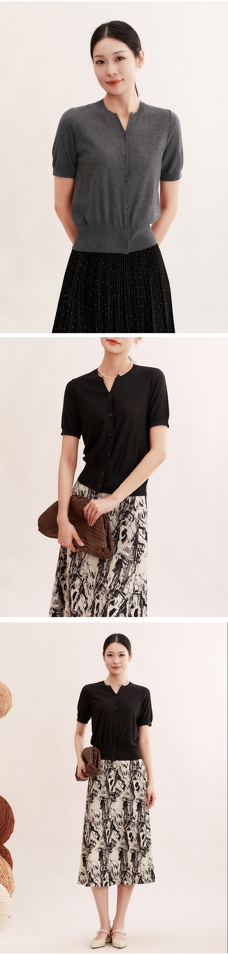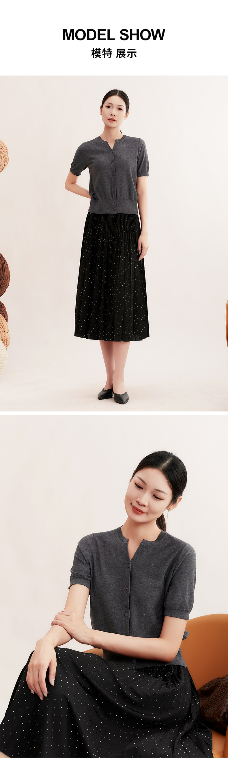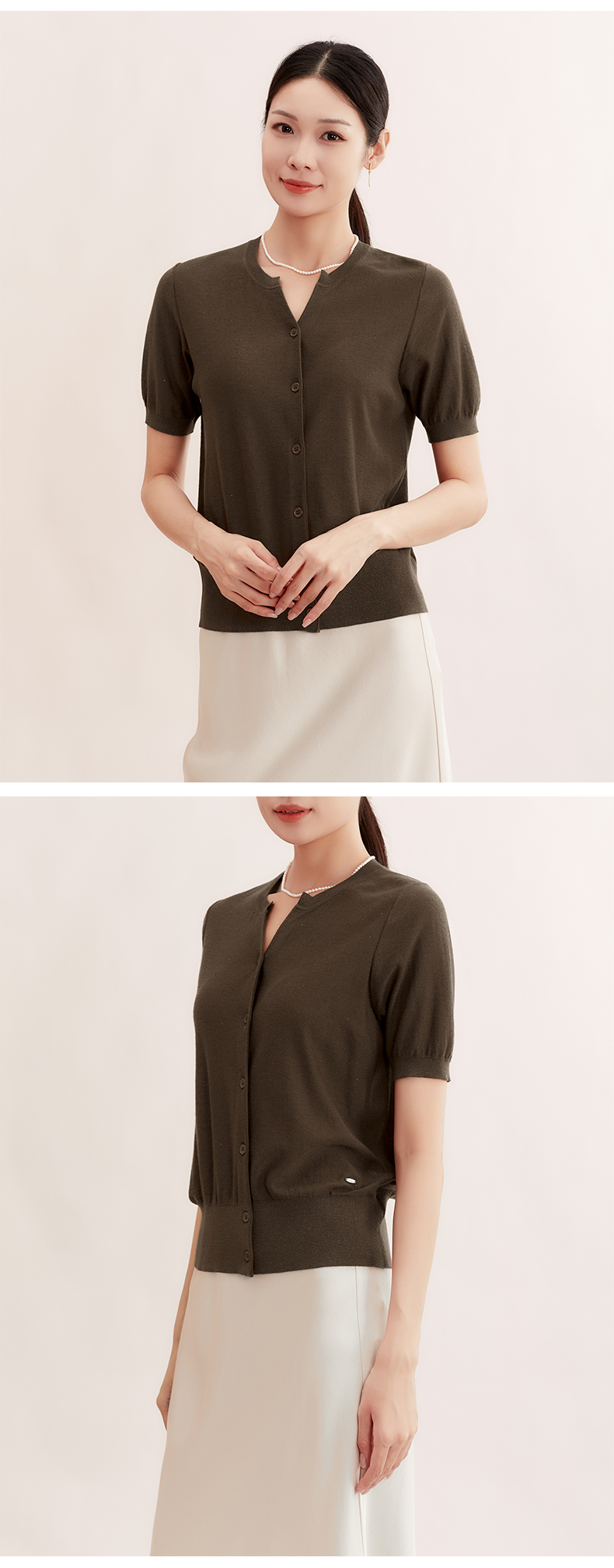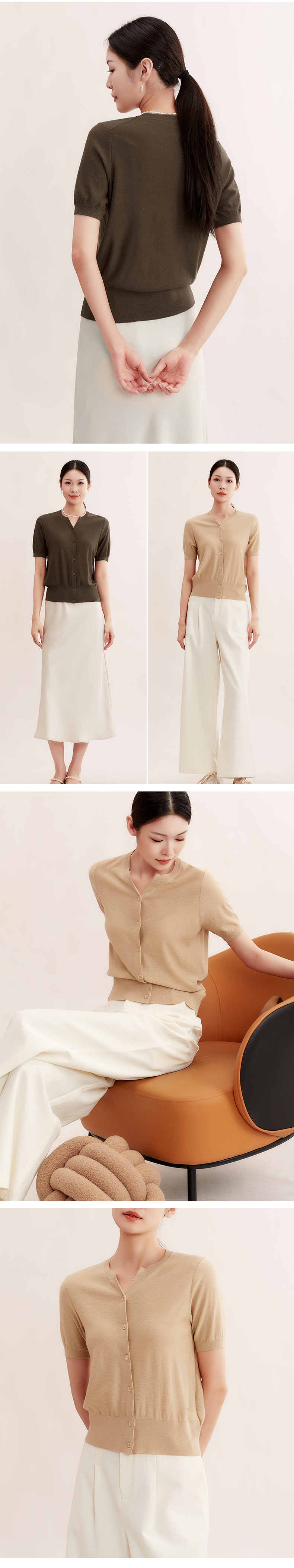 【特价不退换】阿菁娜圆V领金丝绵羊毛针织开衫A29Q318032