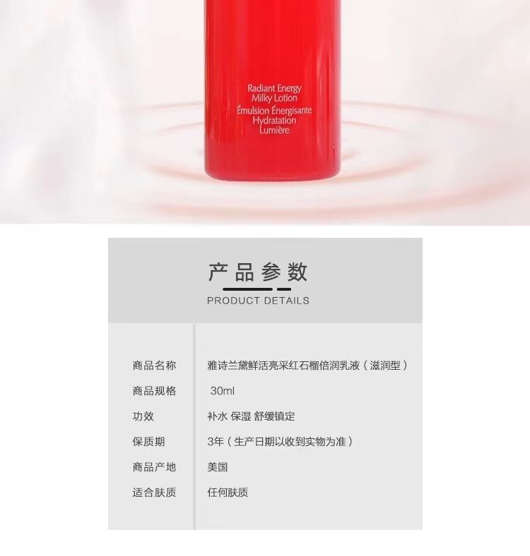 【爆款超低价预售 急单慎拍】雅诗兰黛红石榴乳液30ml小样美白补水去黄提亮保湿清爽淡斑精华乳