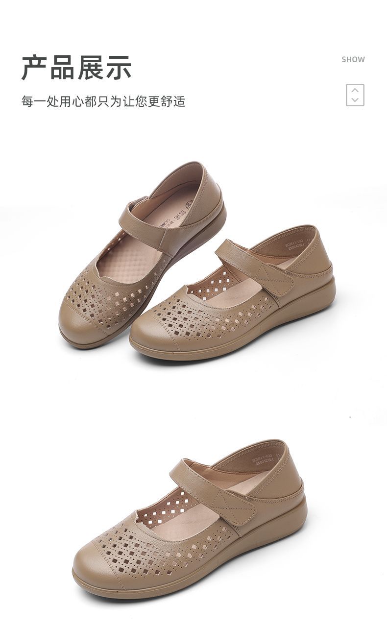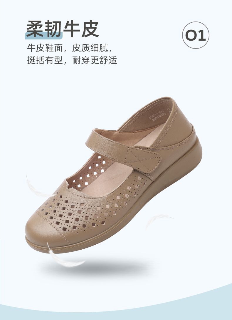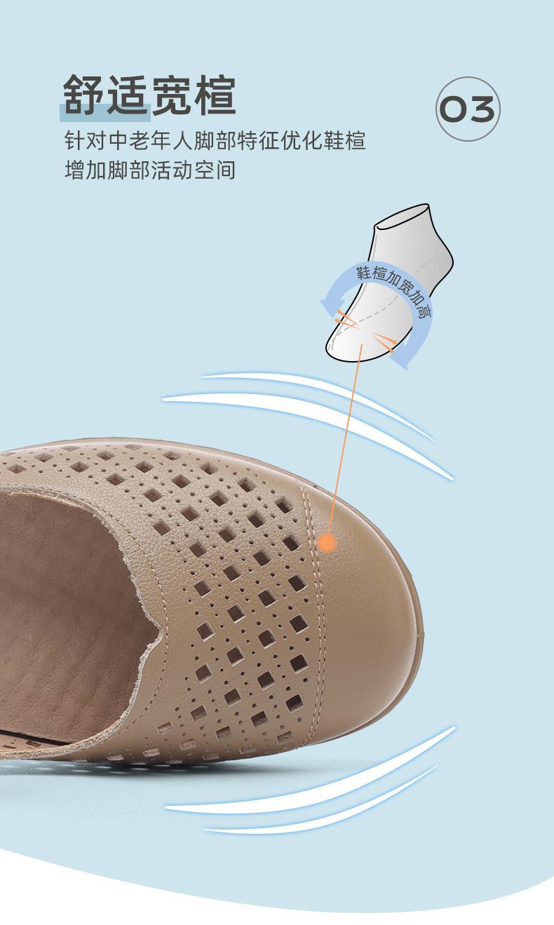 信诺妈妈凉鞋镂空透气洞洞鞋2025夏季新款舒适软底真皮平底老人鞋5C9811-033