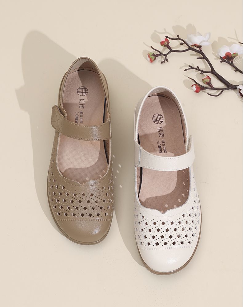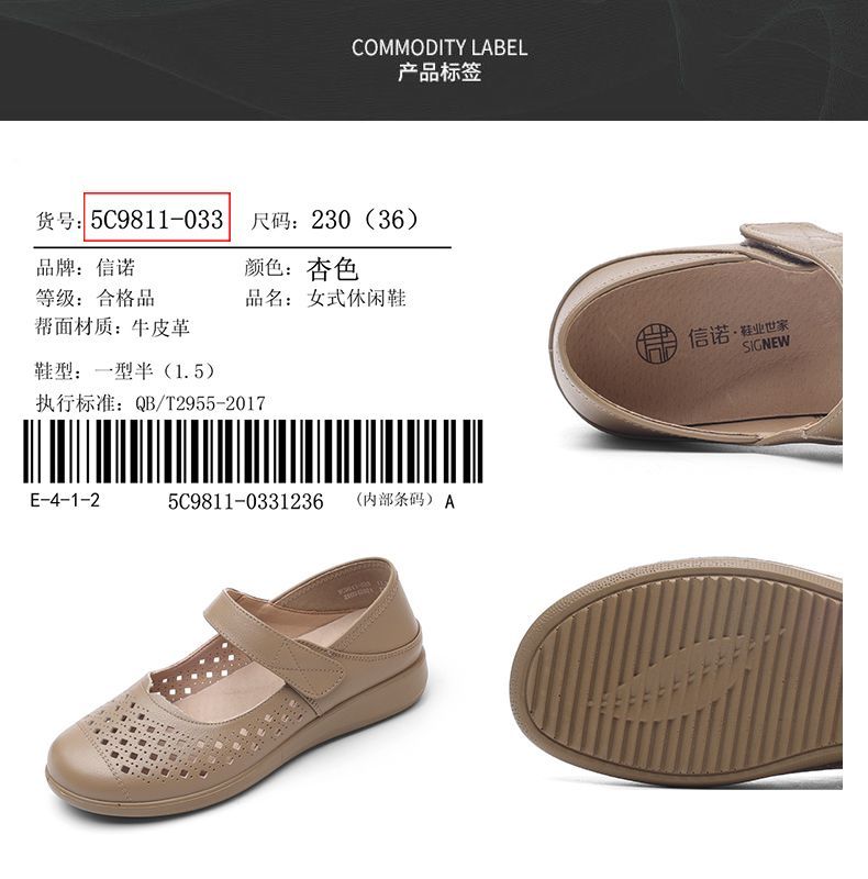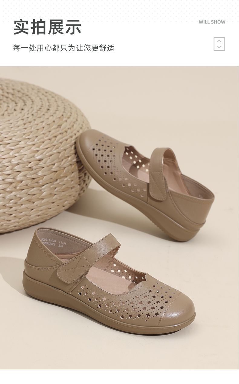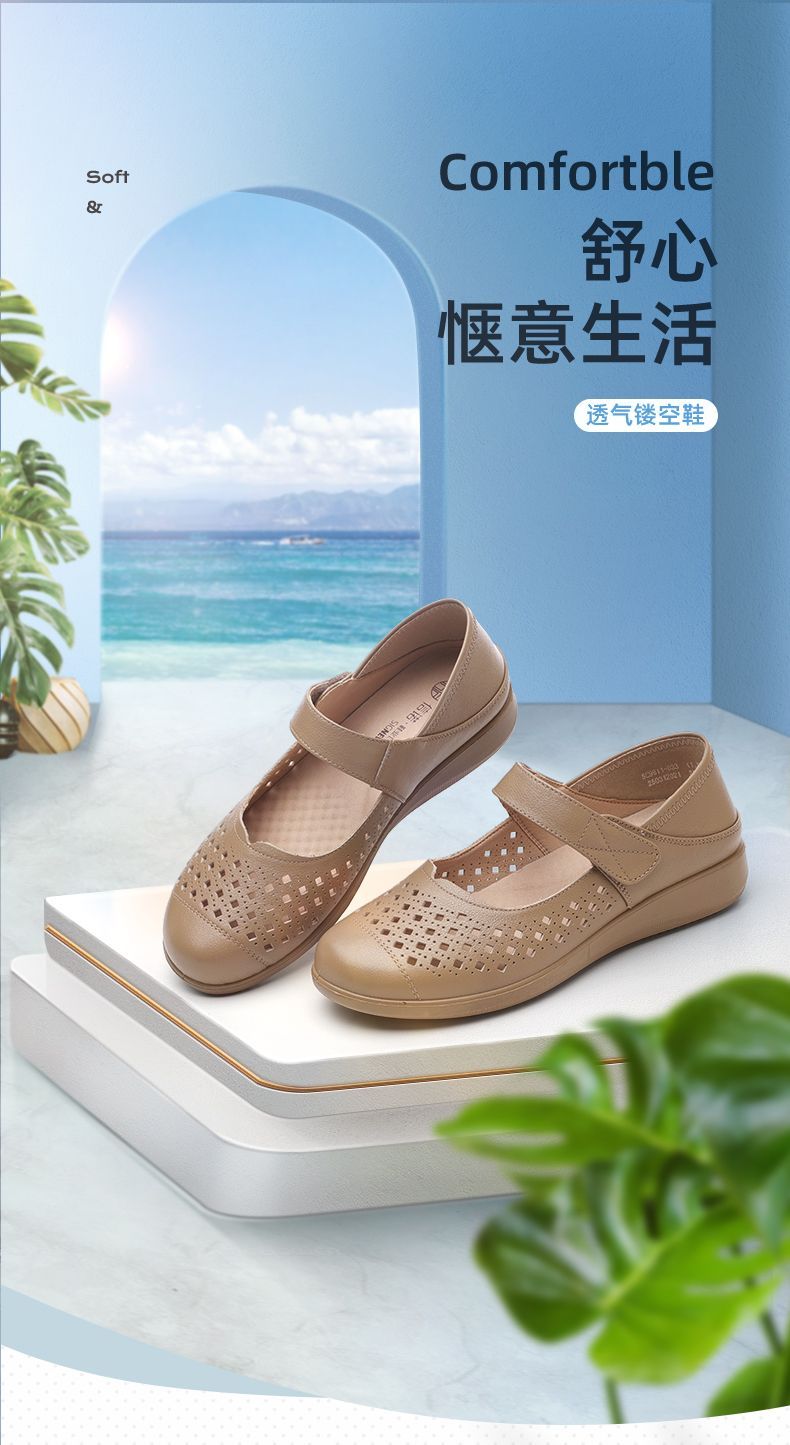 信诺妈妈凉鞋镂空透气洞洞鞋2025夏季新款舒适软底真皮平底老人鞋5C9811-033