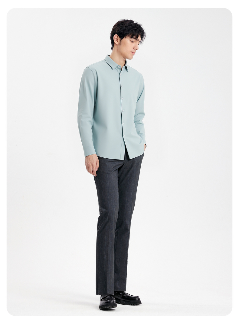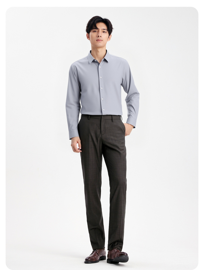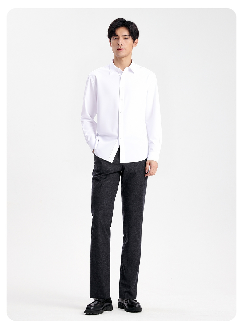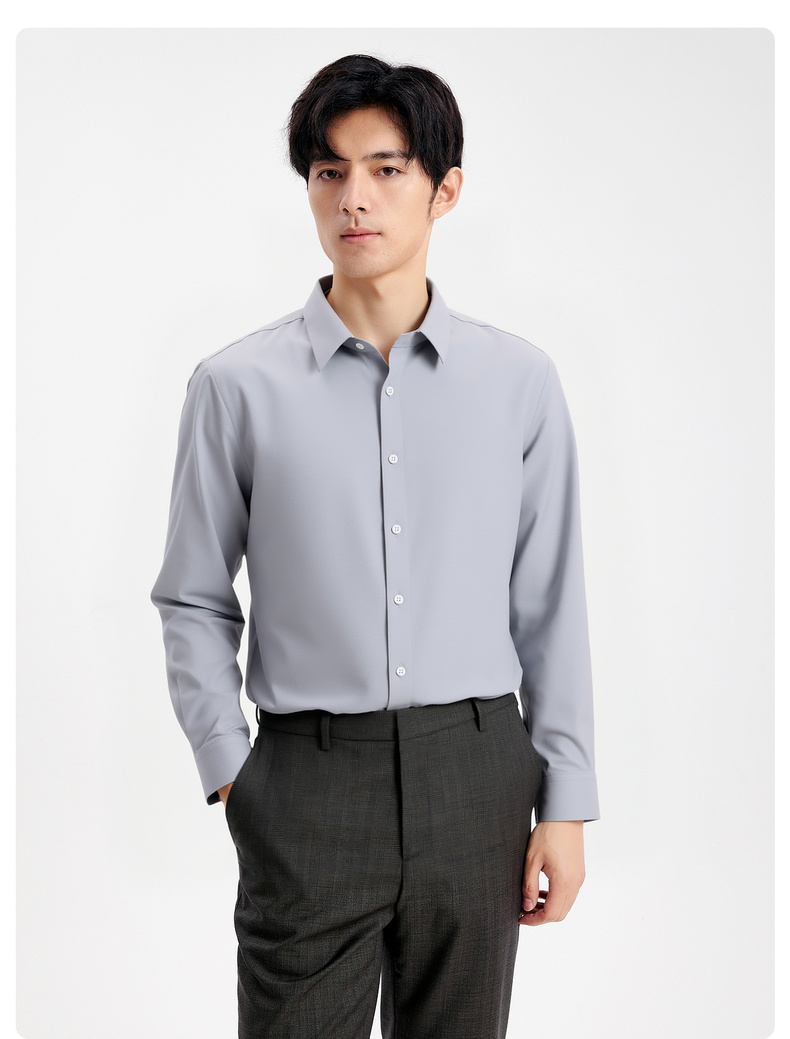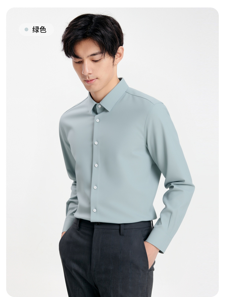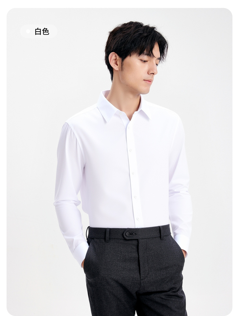 【含绵羊毛+莫代尔】圣得西男士纯色商务长袖衬衫2412952019A