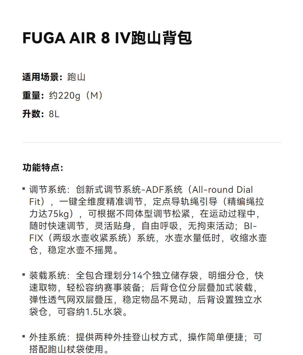 KAILAS凯乐石 FUGA AIR 8 Ⅳ 跑山背包 KA2564005