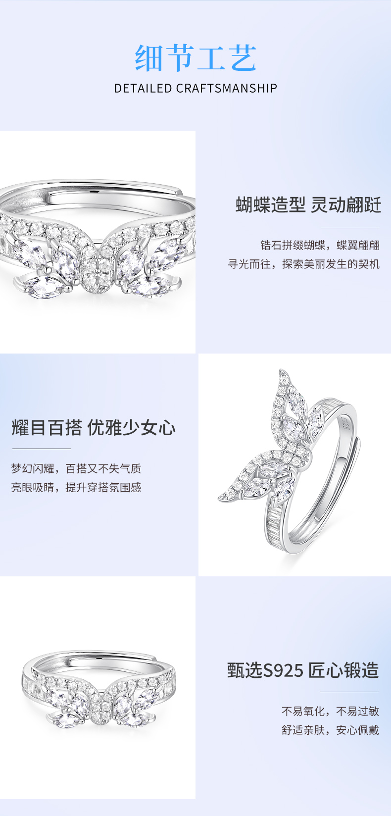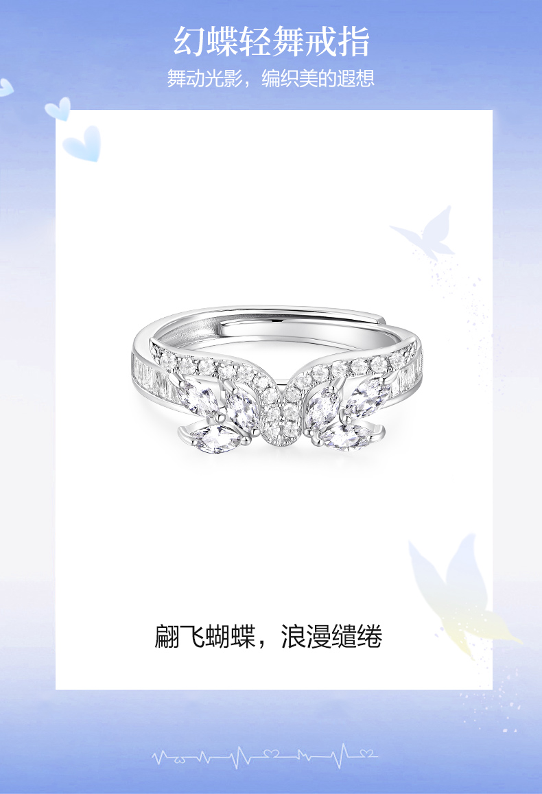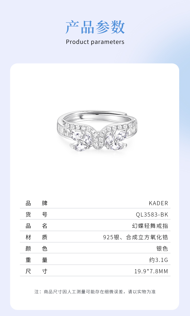 卡蒂罗/KADER 幻蝶轻舞闺蜜女戒 满镶闪锆轻奢时尚高级感开口可调节蝴蝶单戒一只 浪漫优雅灵动小众亚文化