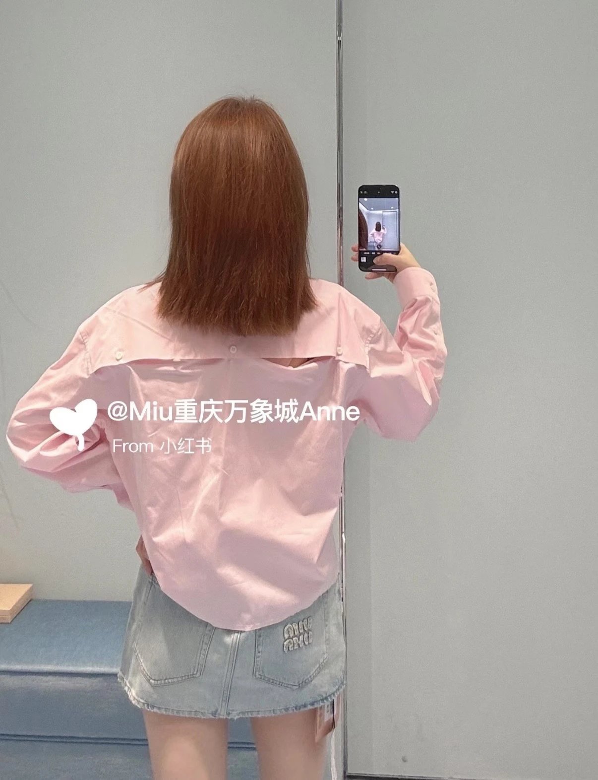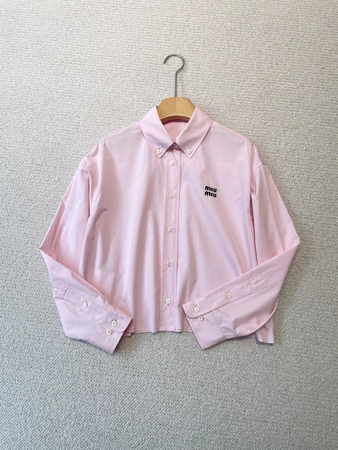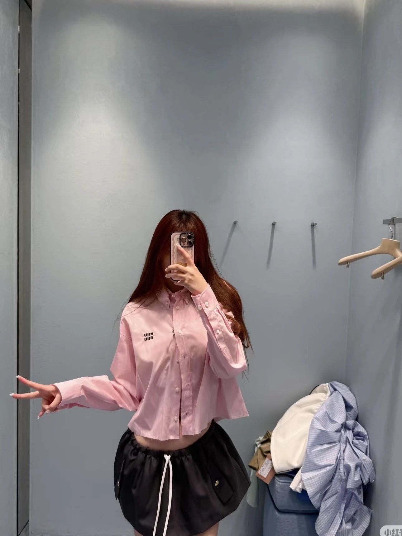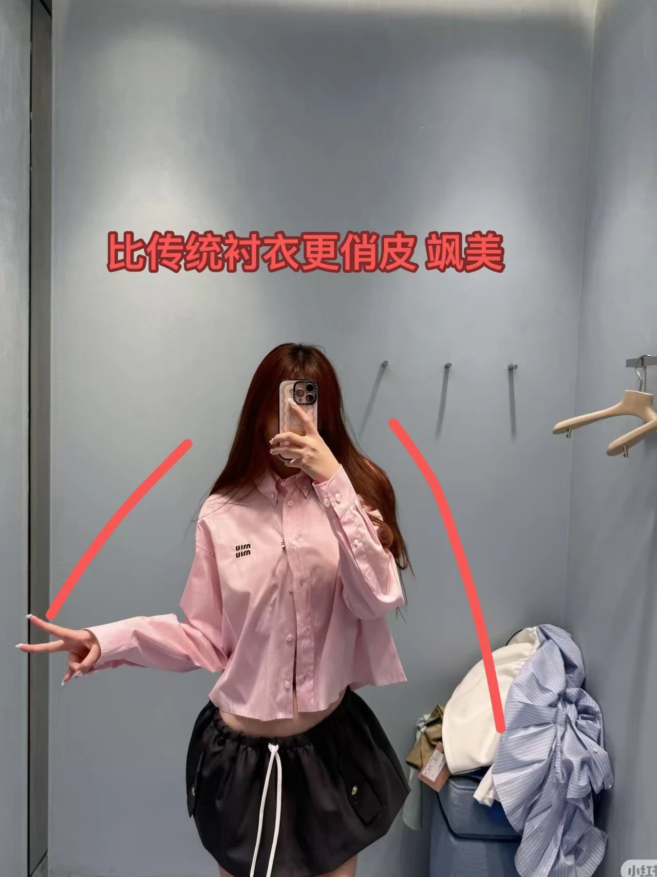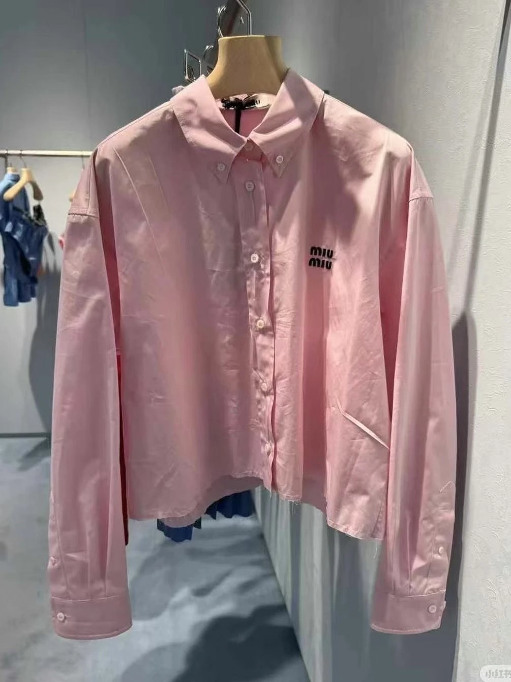 重磅渠道 miu粉衬衣 100支府绸棉 短款宽松衬衫