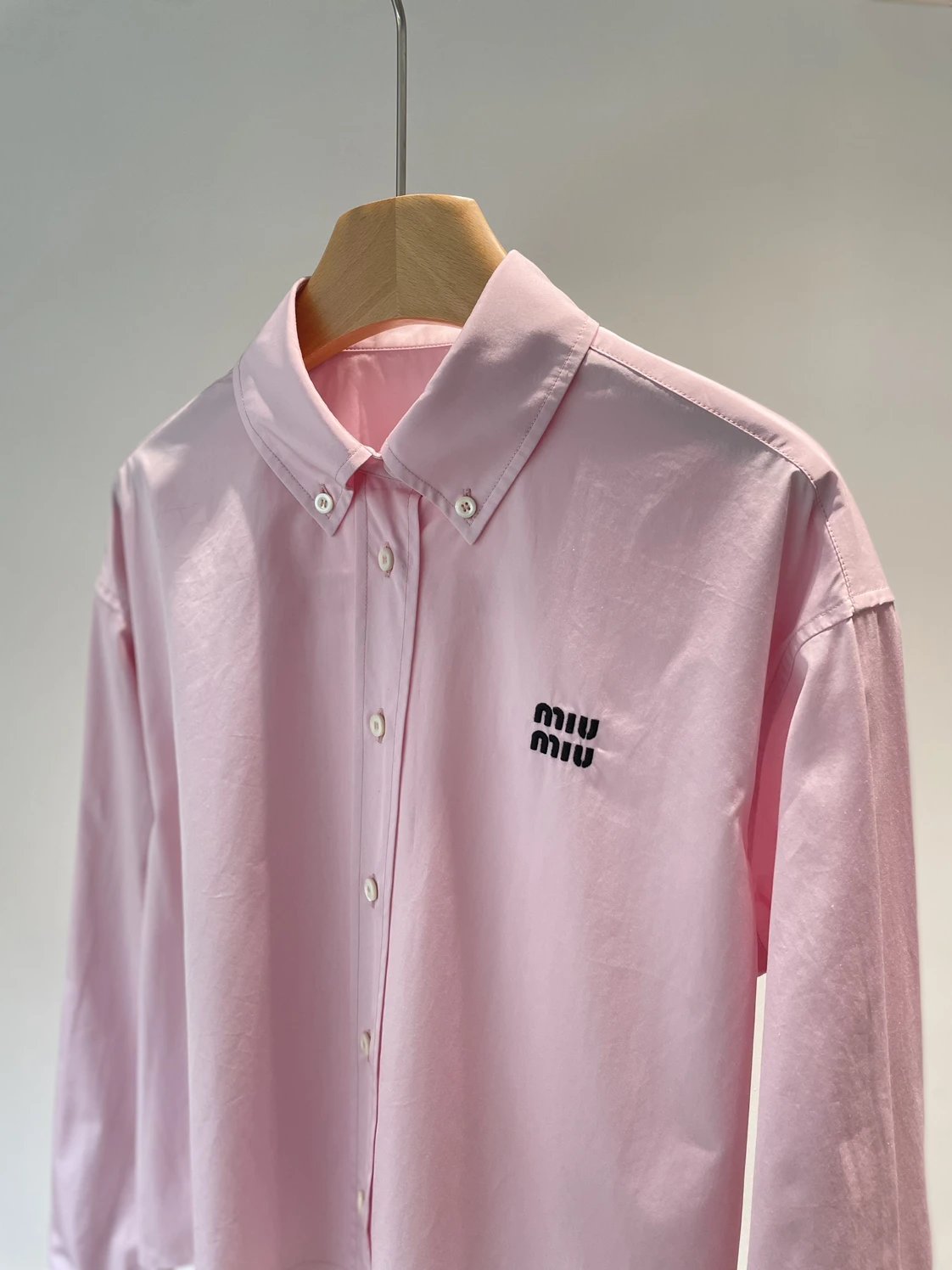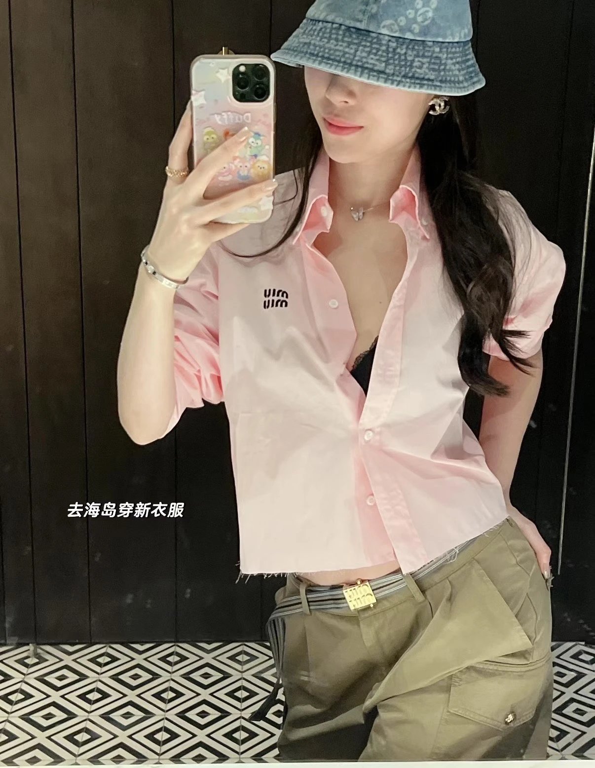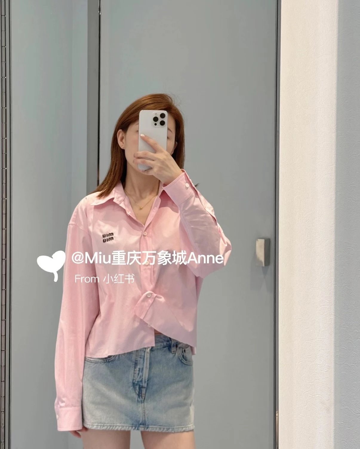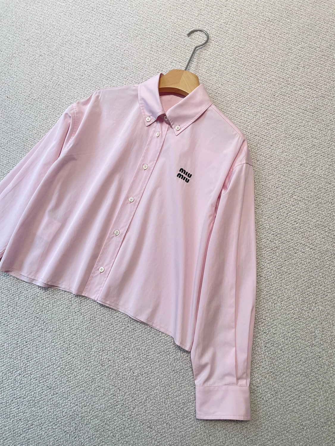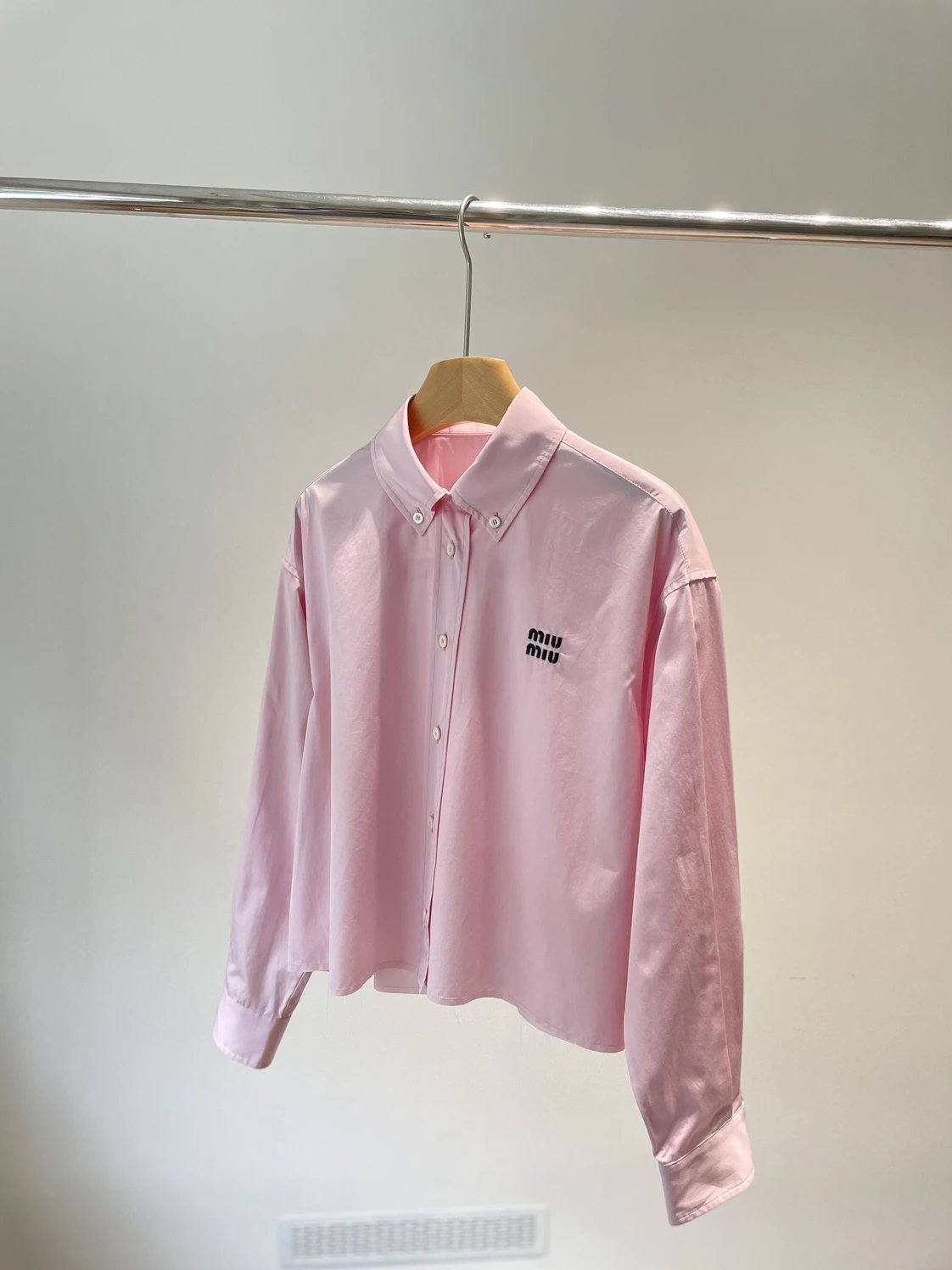 重磅渠道 miu粉衬衣 100支府绸棉 短款宽松衬衫