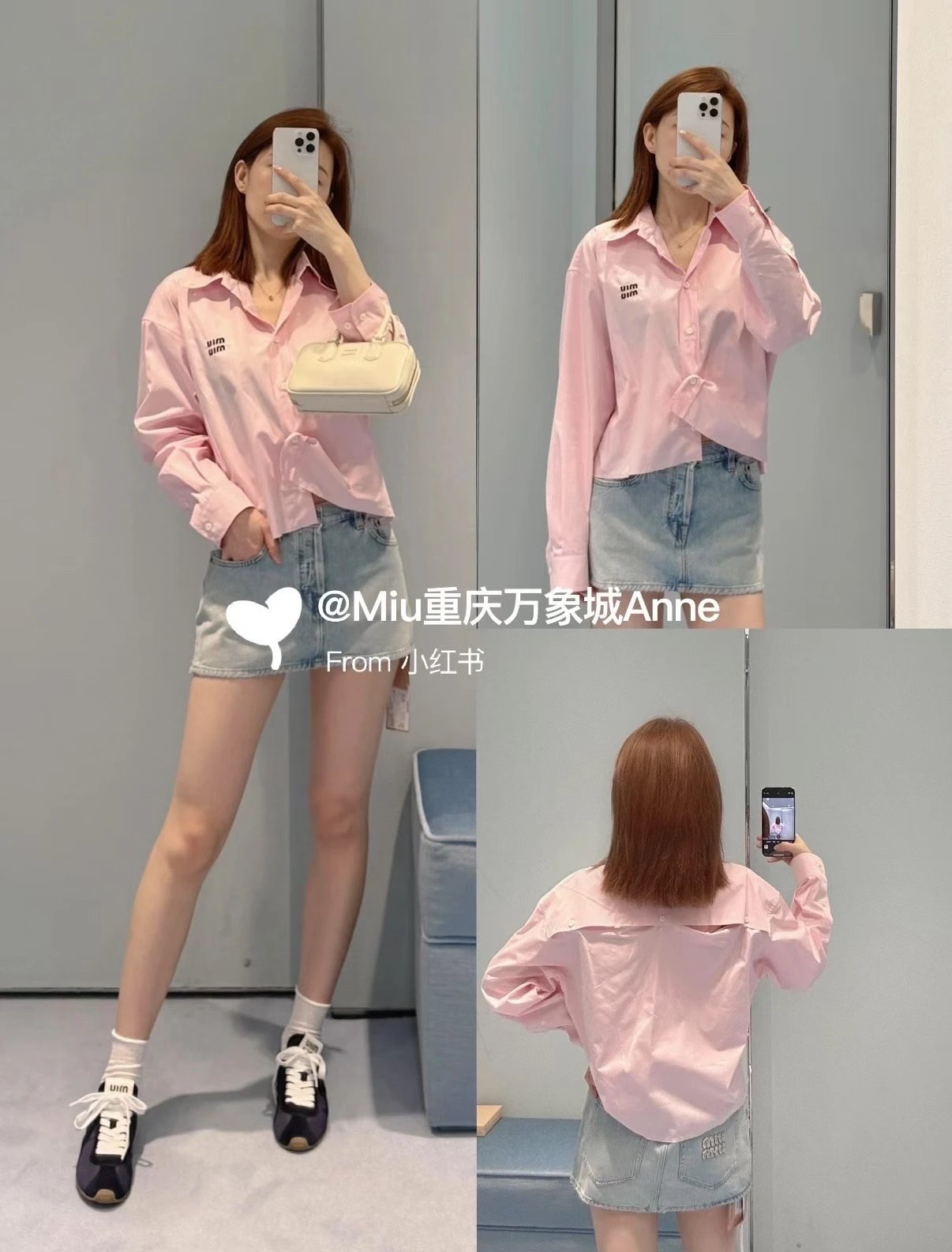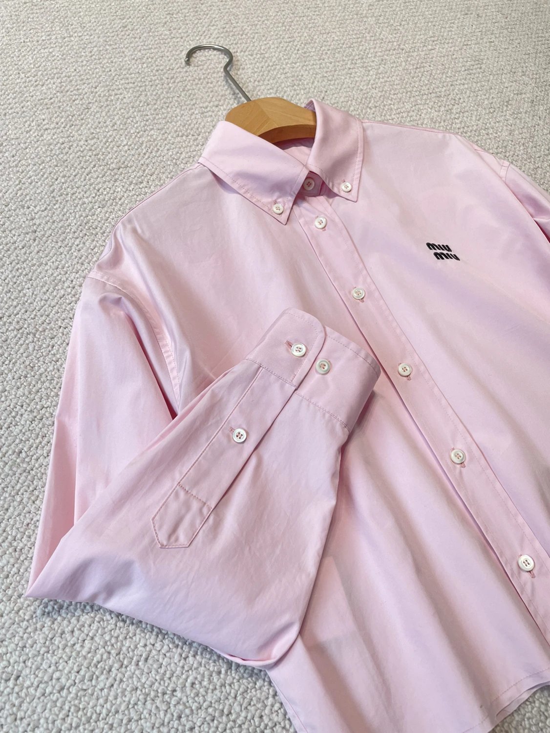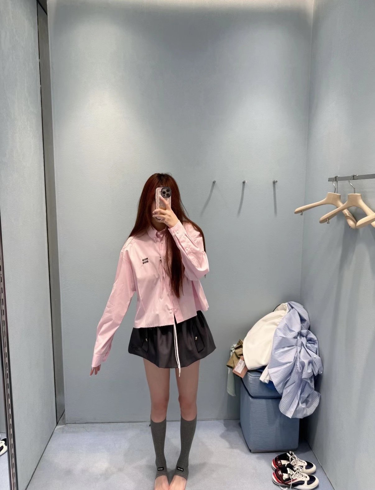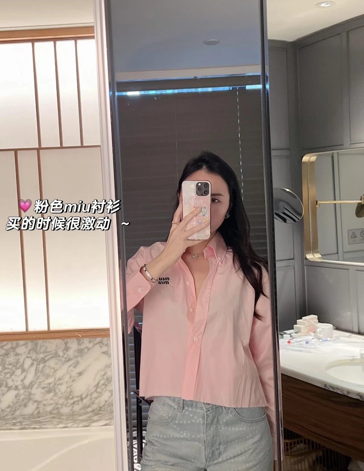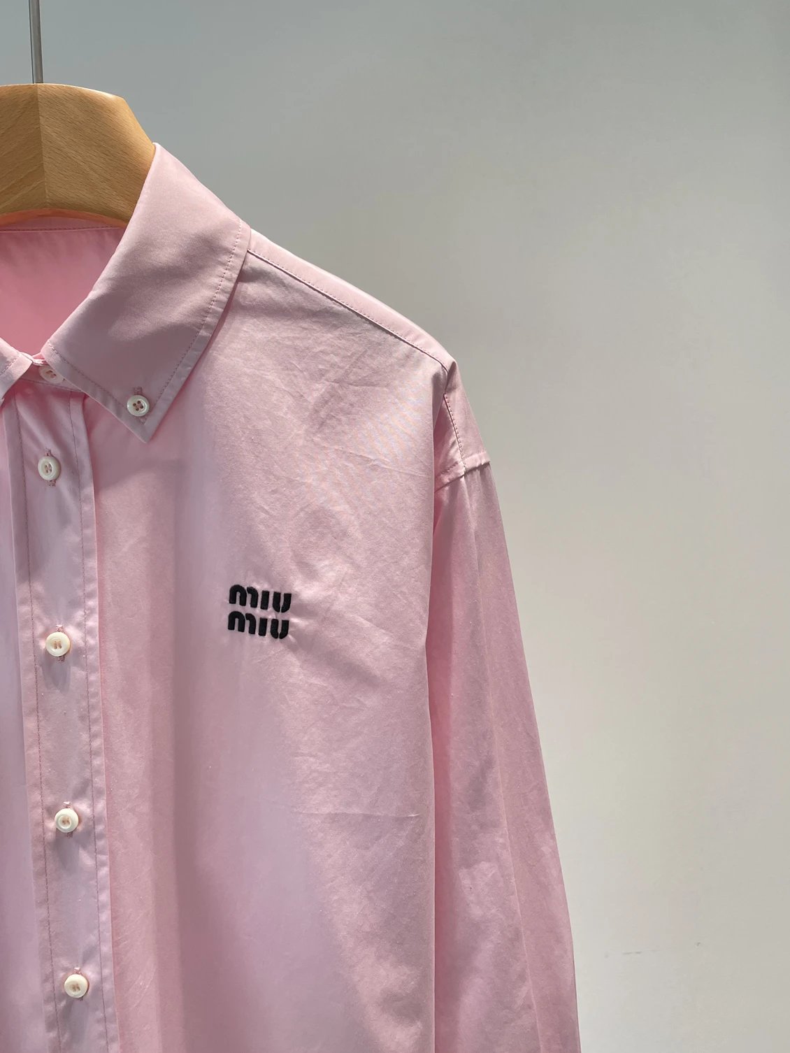 重磅渠道 miu粉衬衣 100支府绸棉 短款宽松衬衫