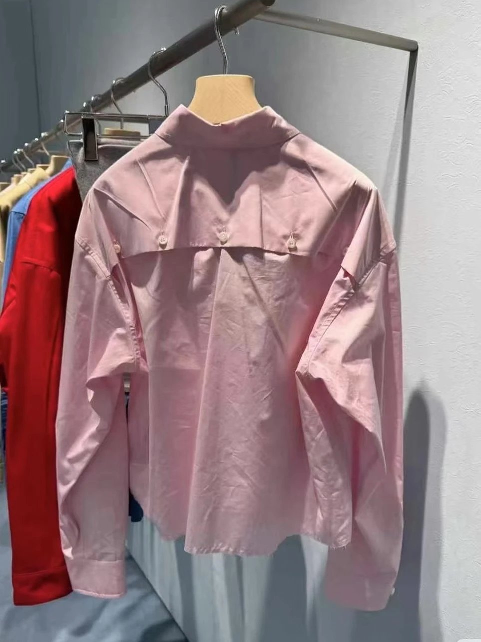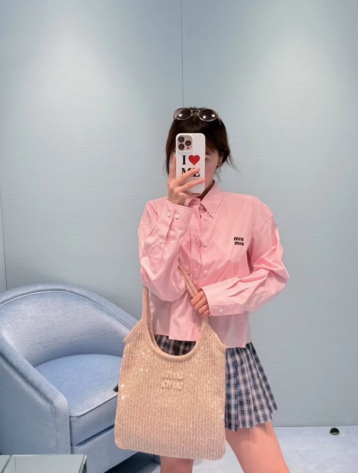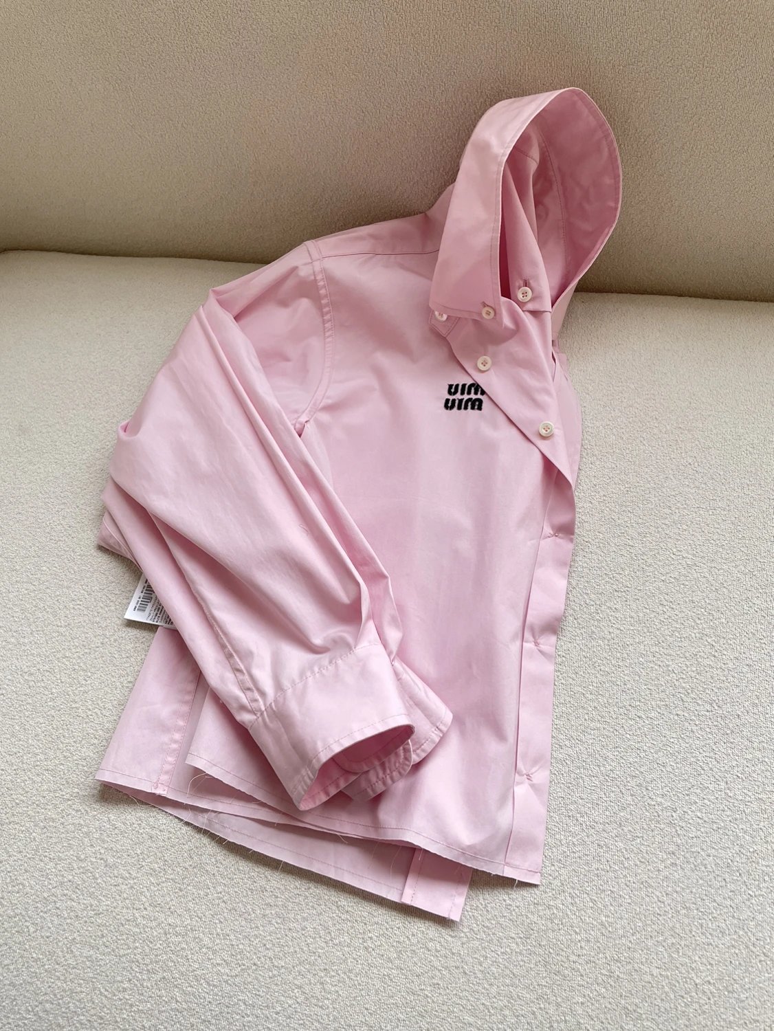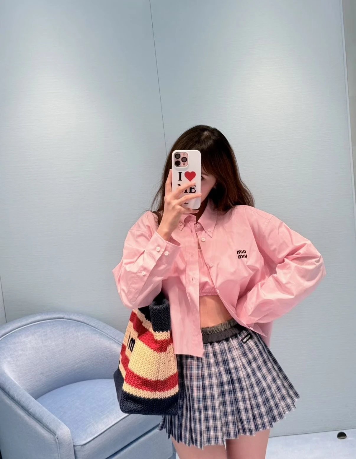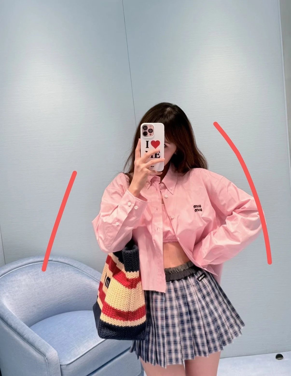 重磅渠道 miu粉衬衣 100支府绸棉 短款宽松衬衫