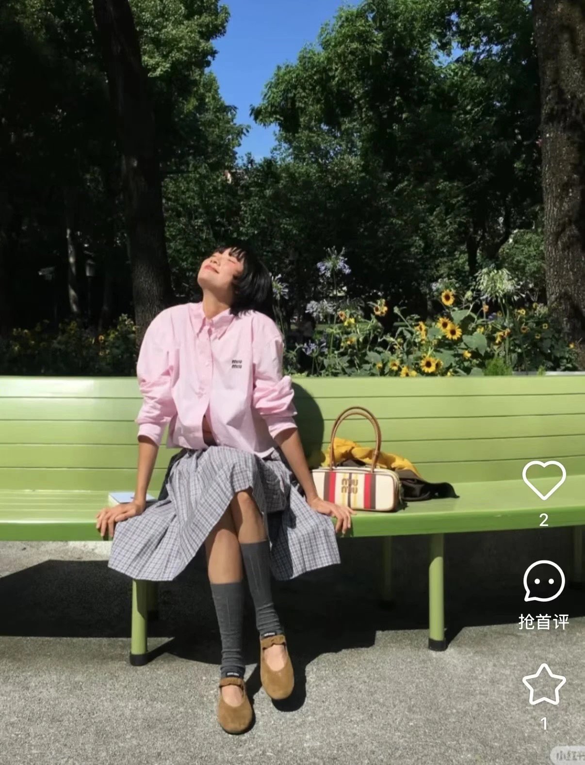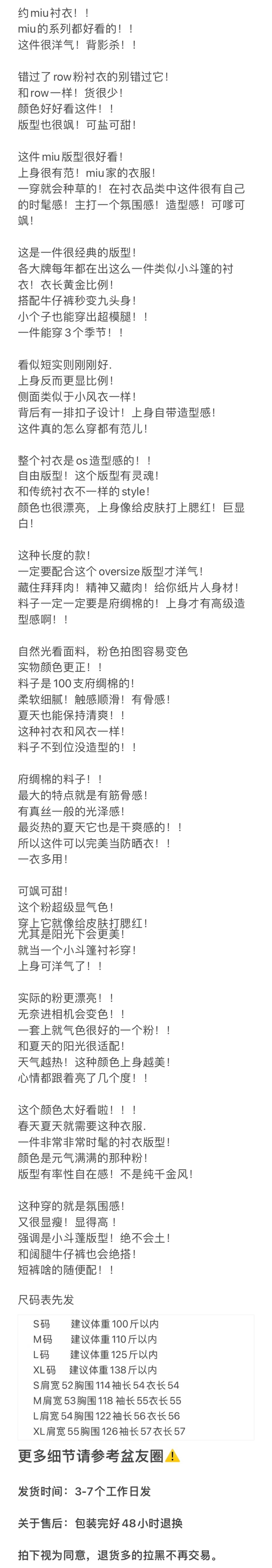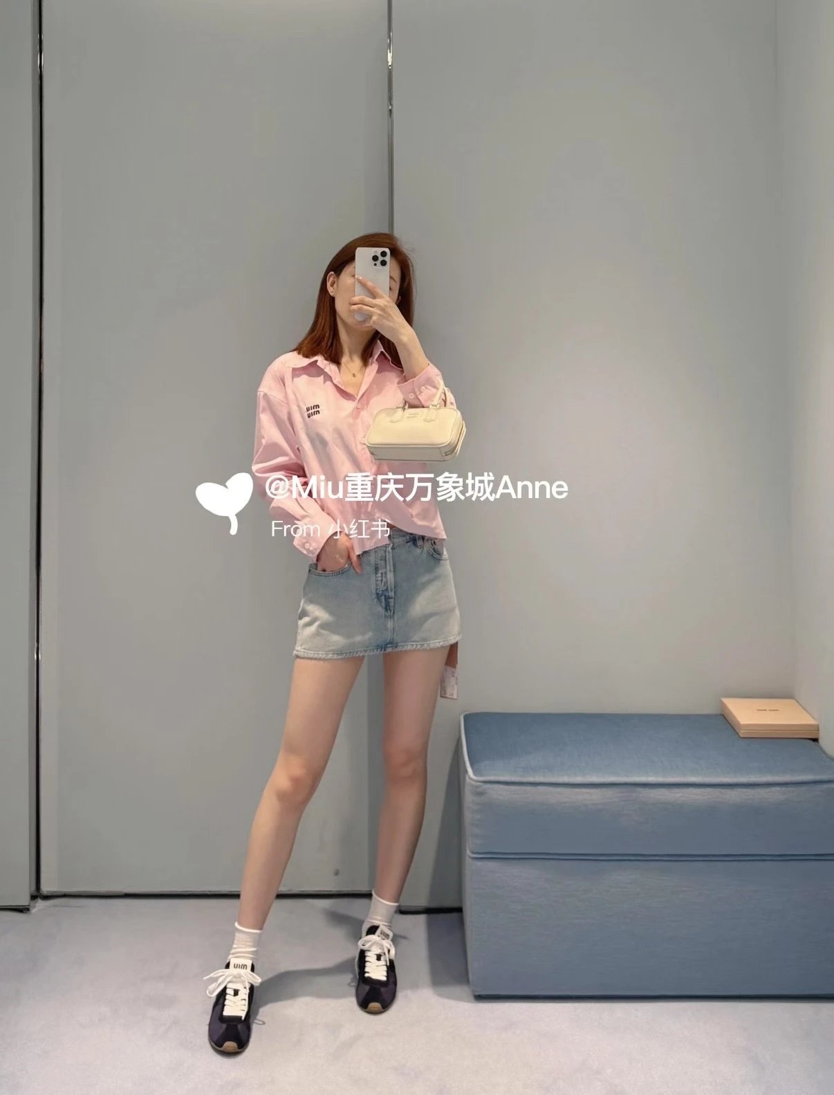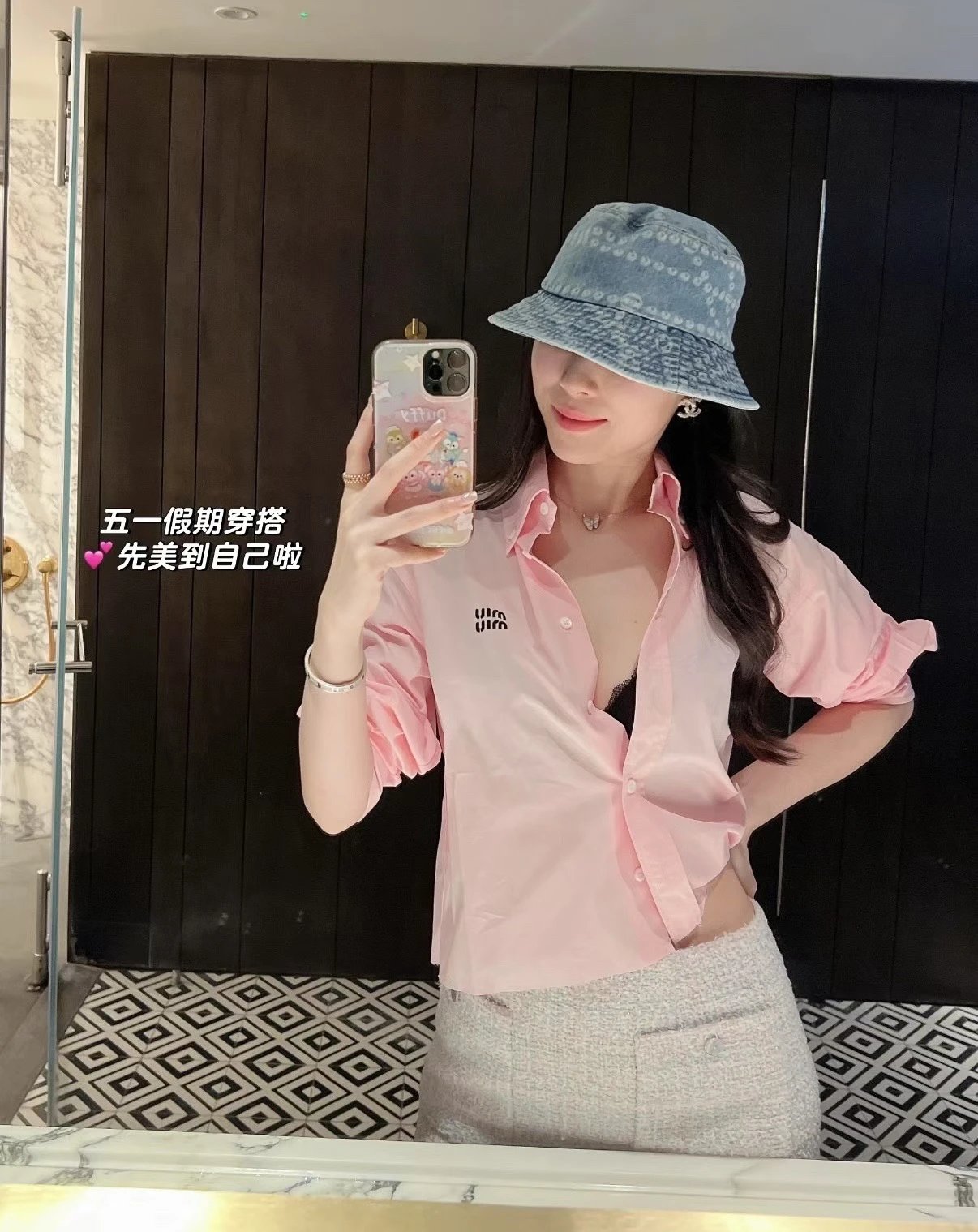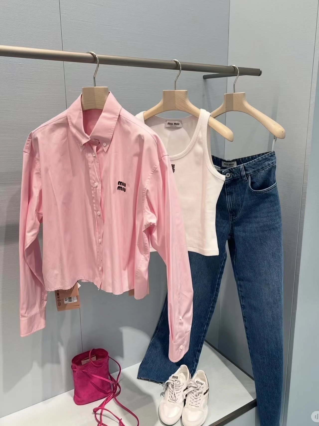 重磅渠道 miu粉衬衣 100支府绸棉 短款宽松衬衫