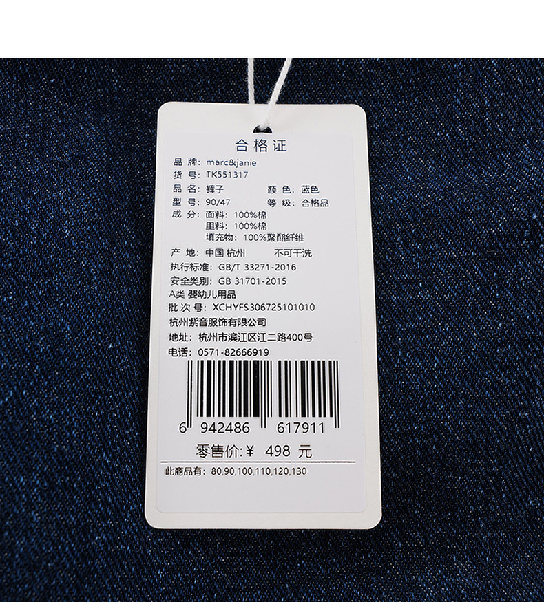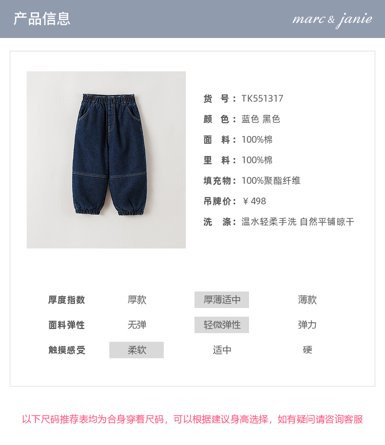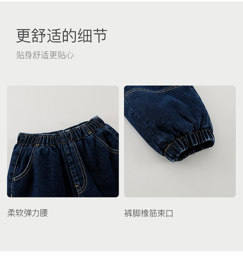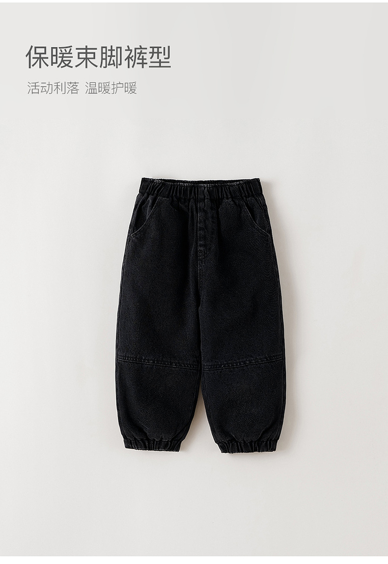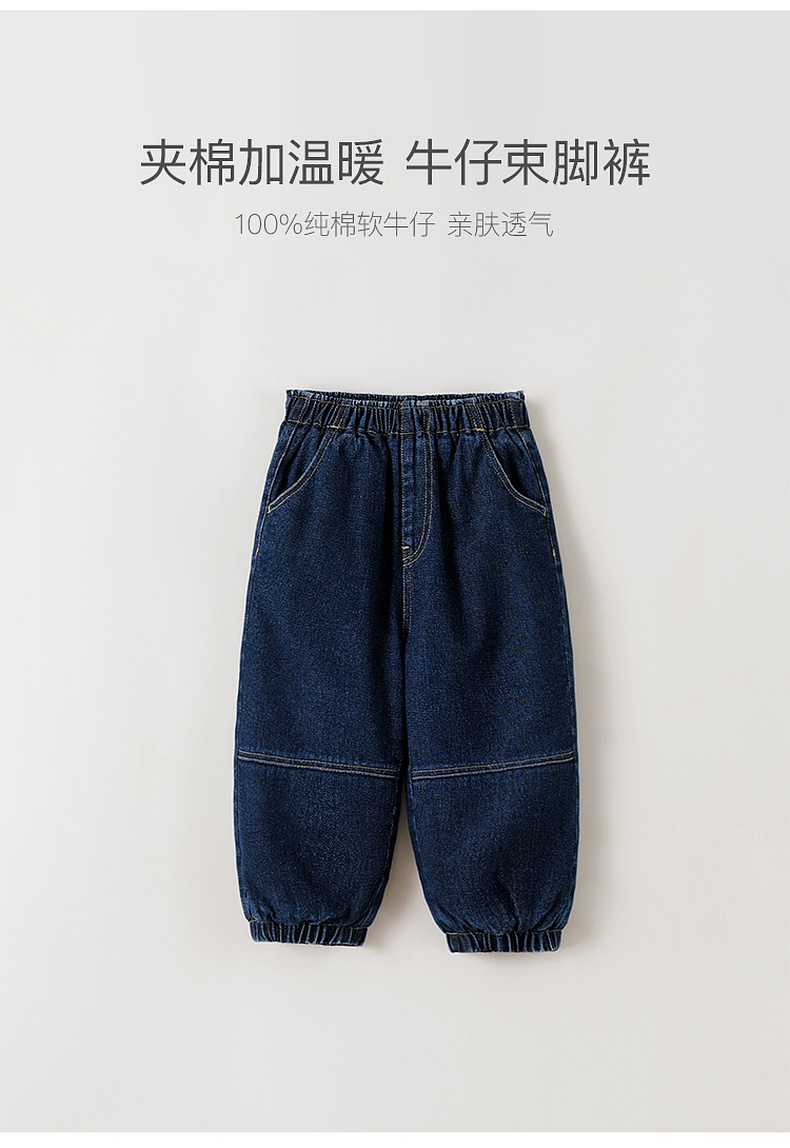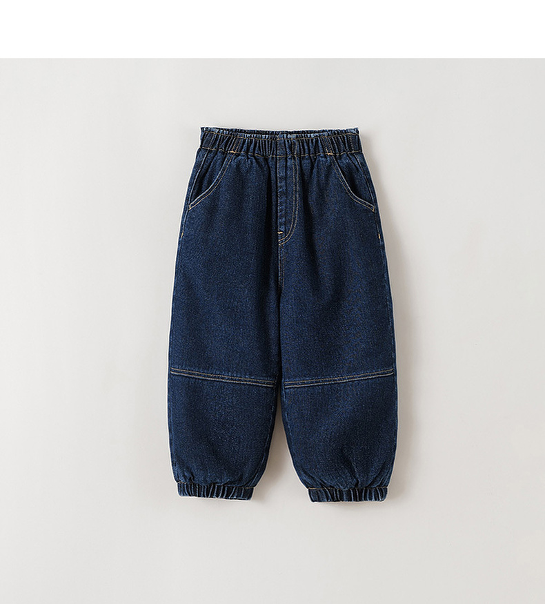马克珍妮男童夹棉加暖牛仔束脚裤2025年冬装新款551317