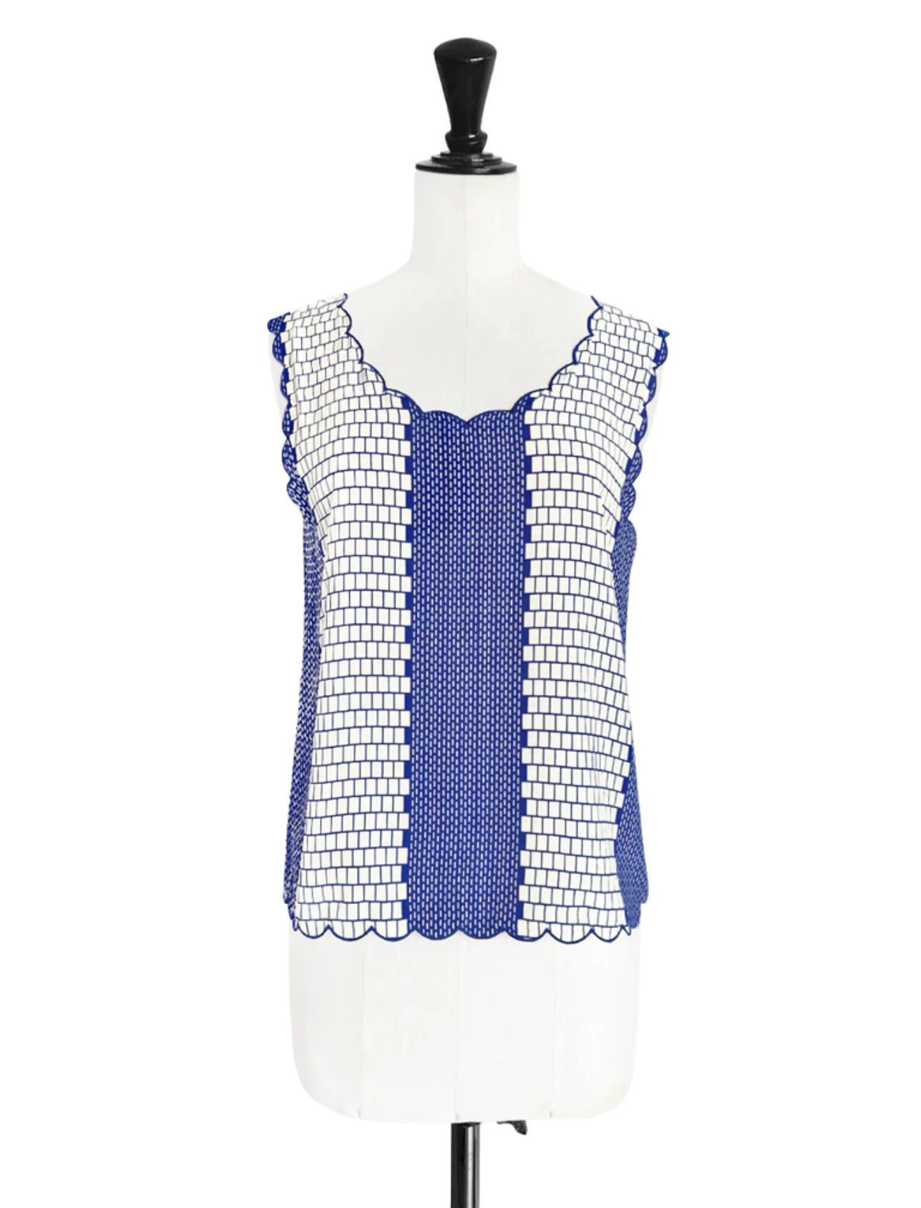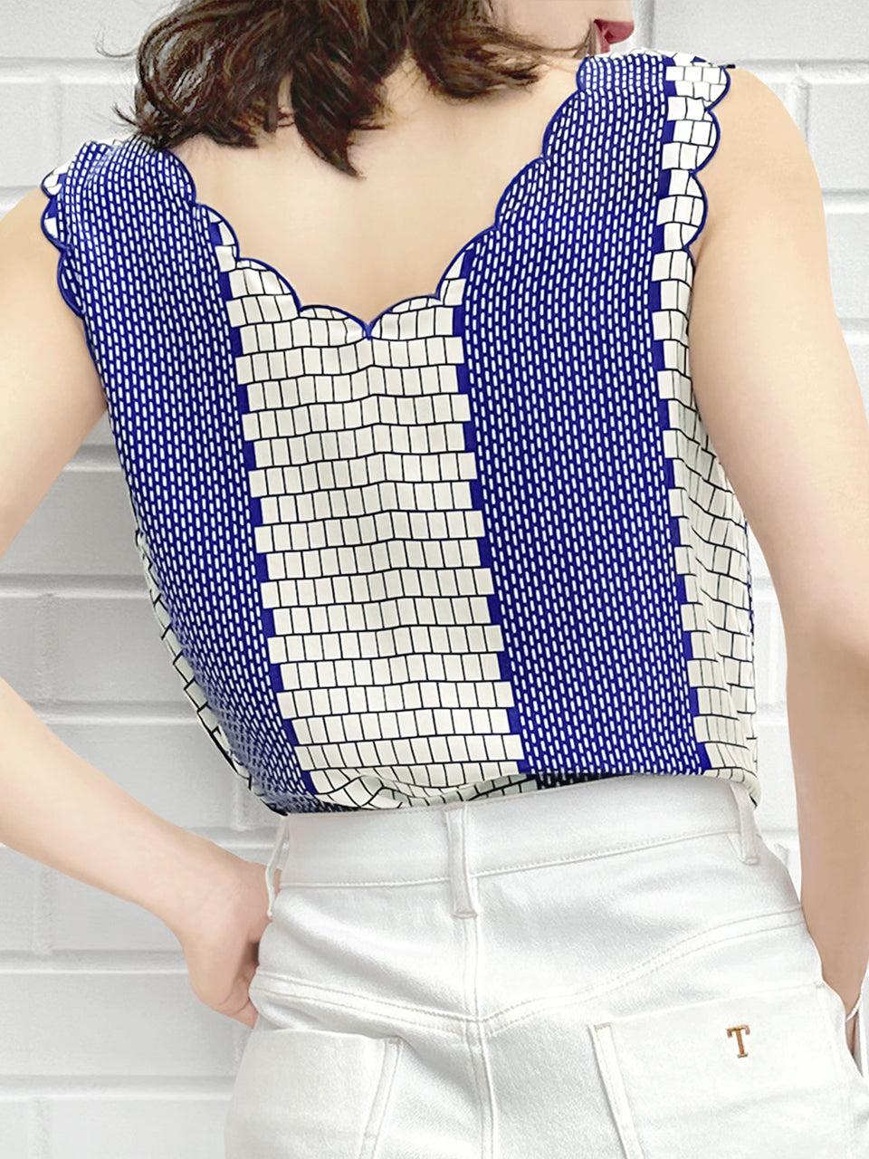 TYNVIE 波浪边车花背心 - 蓝印花