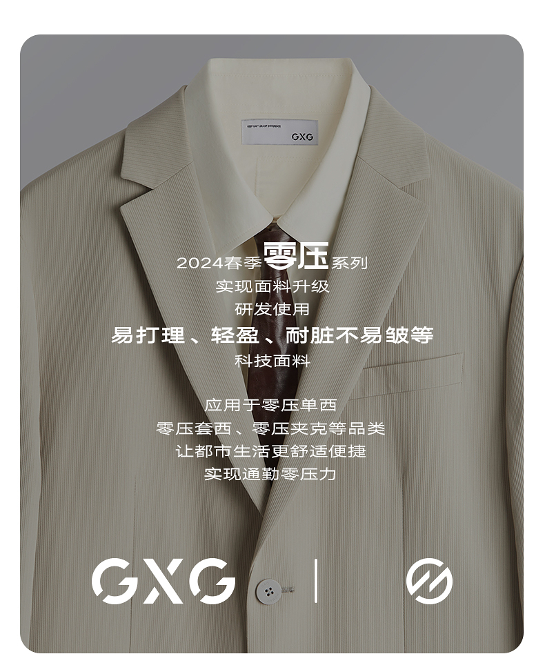 GXG男装 索罗娜面料弹力商务休闲西装男士易打理西服 24年春热卖西服