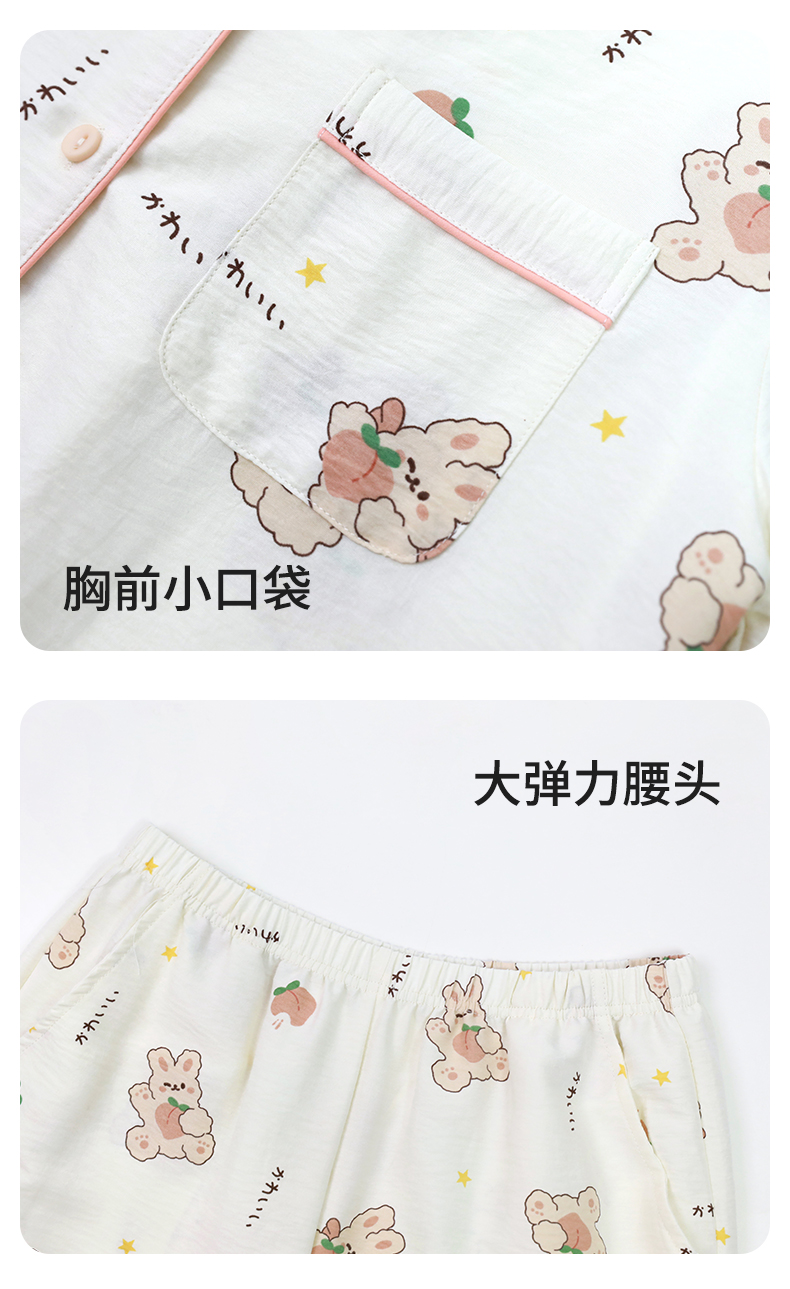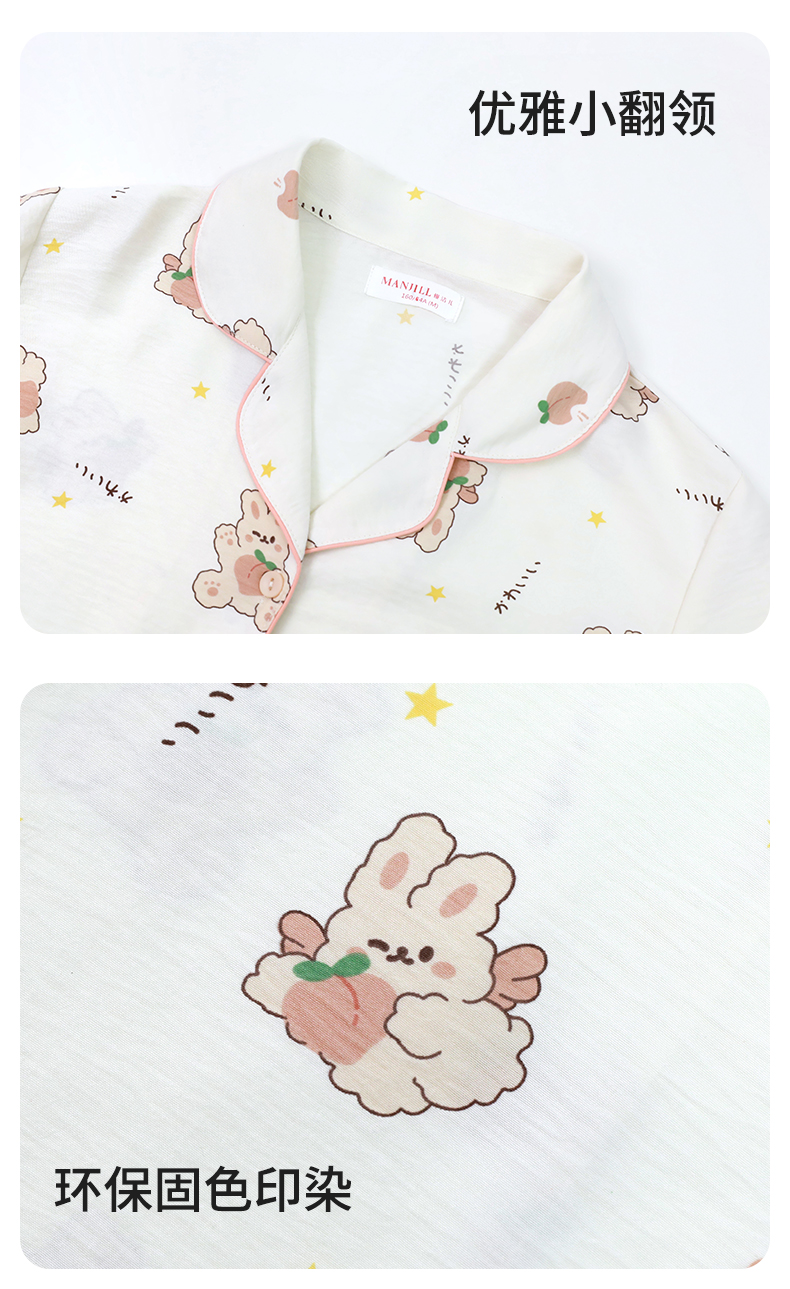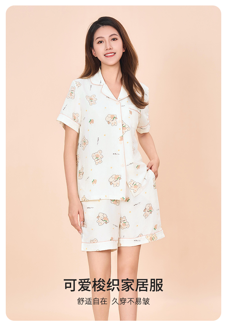 【商场同款】熳洁儿 女士梭织家居服开衫短袖短裤套装可爱卡通少女印花24203008