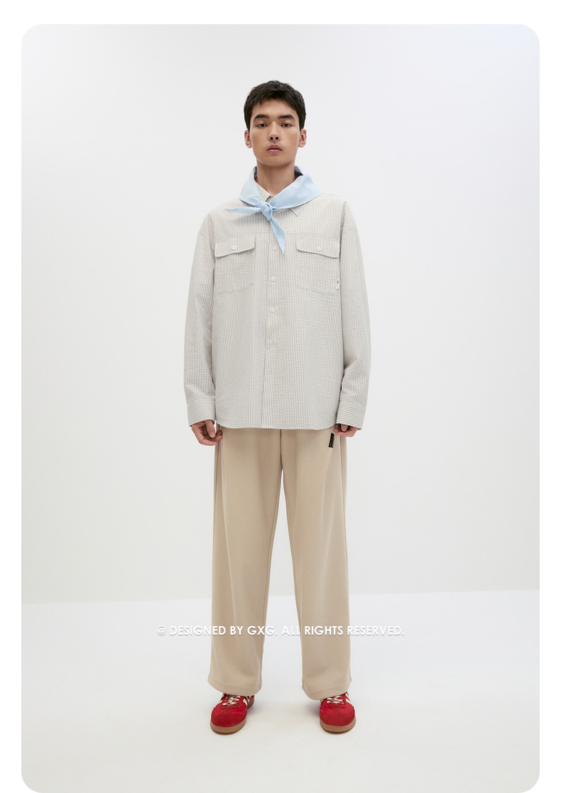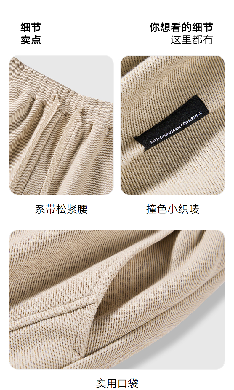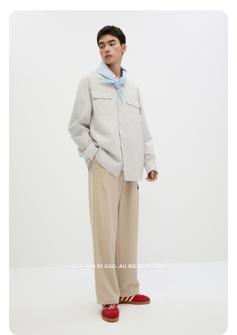 GXG男装 双色肌理面料休闲裤宽松直筒长裤男士裤子 2024秋季热卖