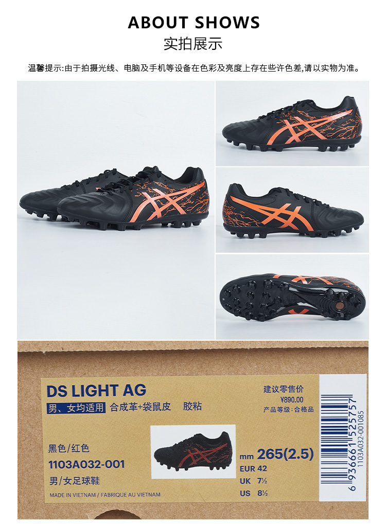 SFS亚瑟士 Asics DS LIGHT AG短钉袋鼠皮人草足球鞋1103A032-001