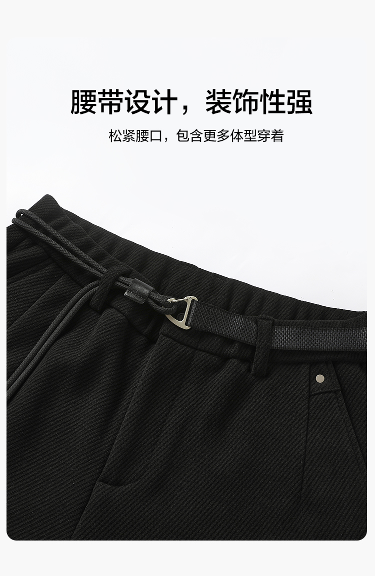 2025春新款男士休闲裤简约纯色锥形裤腰带设计百搭通勤长裤男K&C