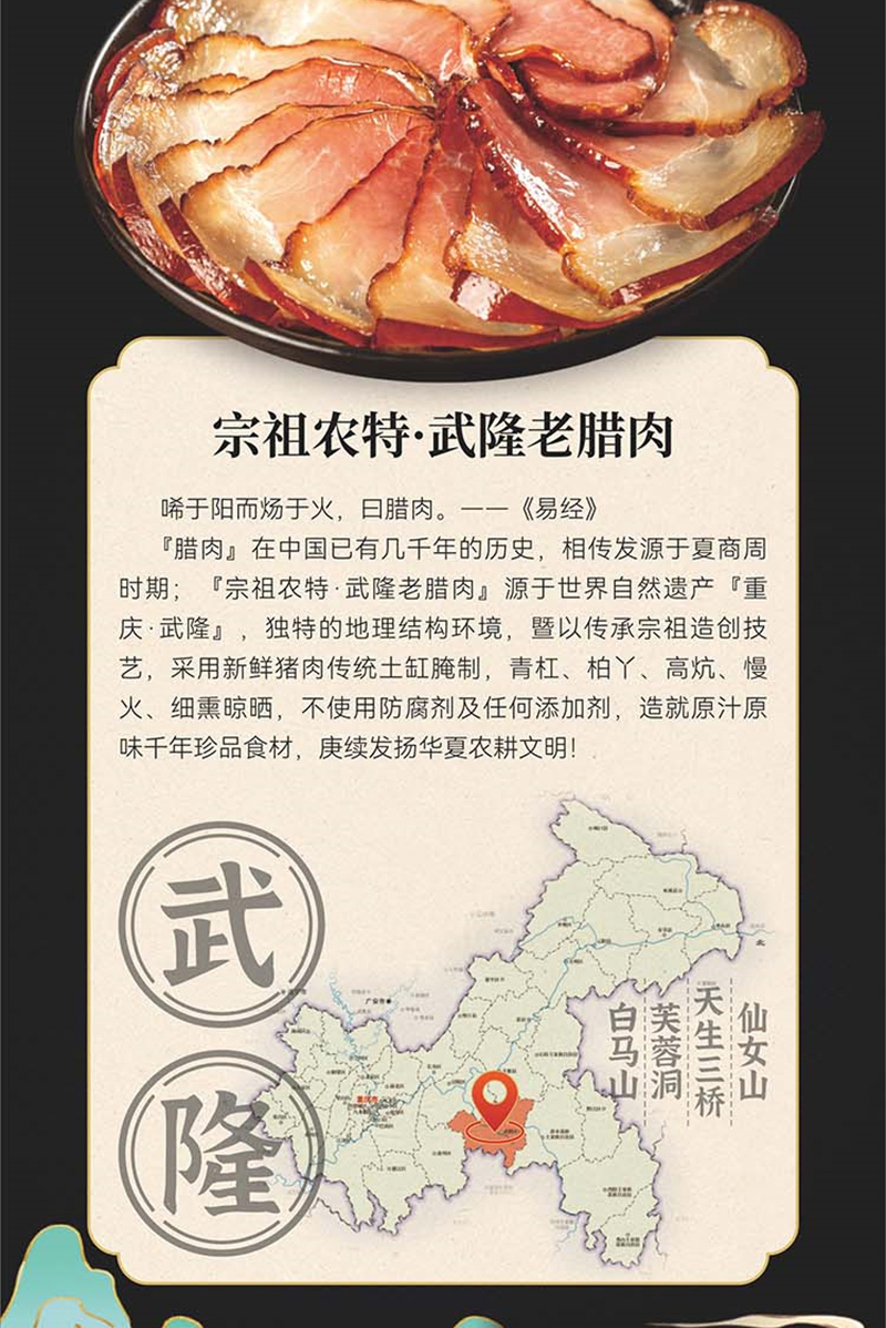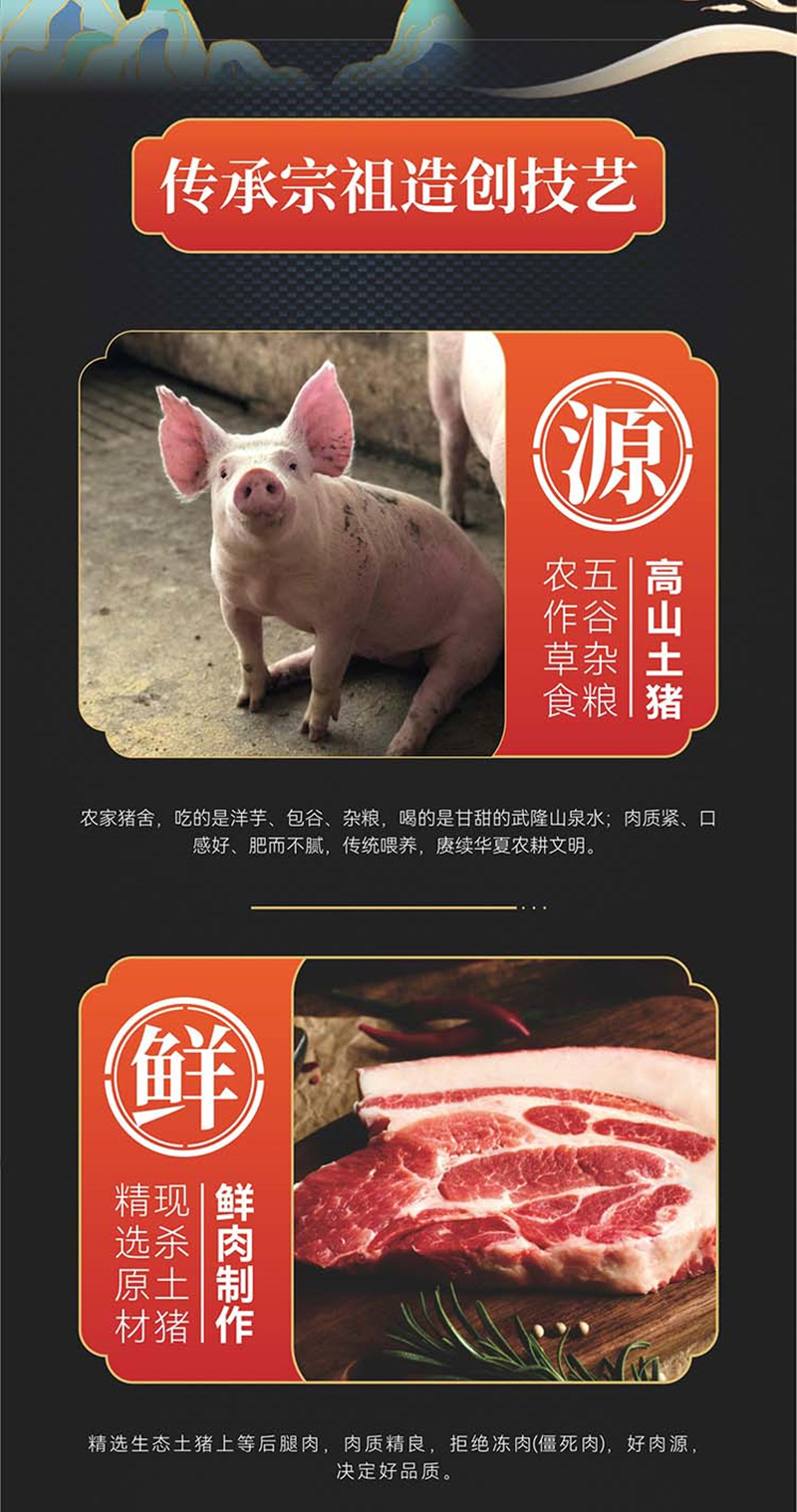 宗祖农特武隆老腊肉 高山土猪 腊后腿 500g/袋