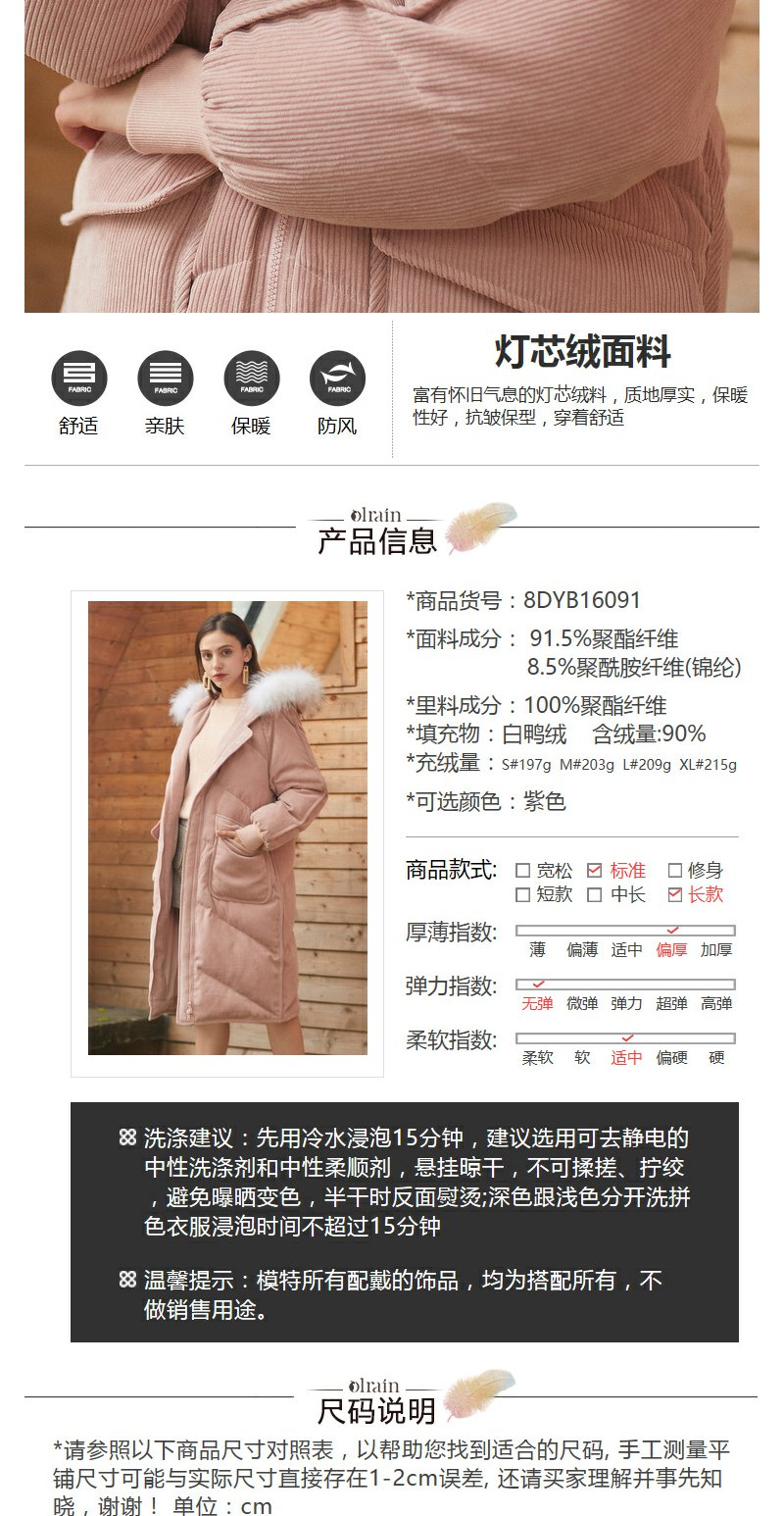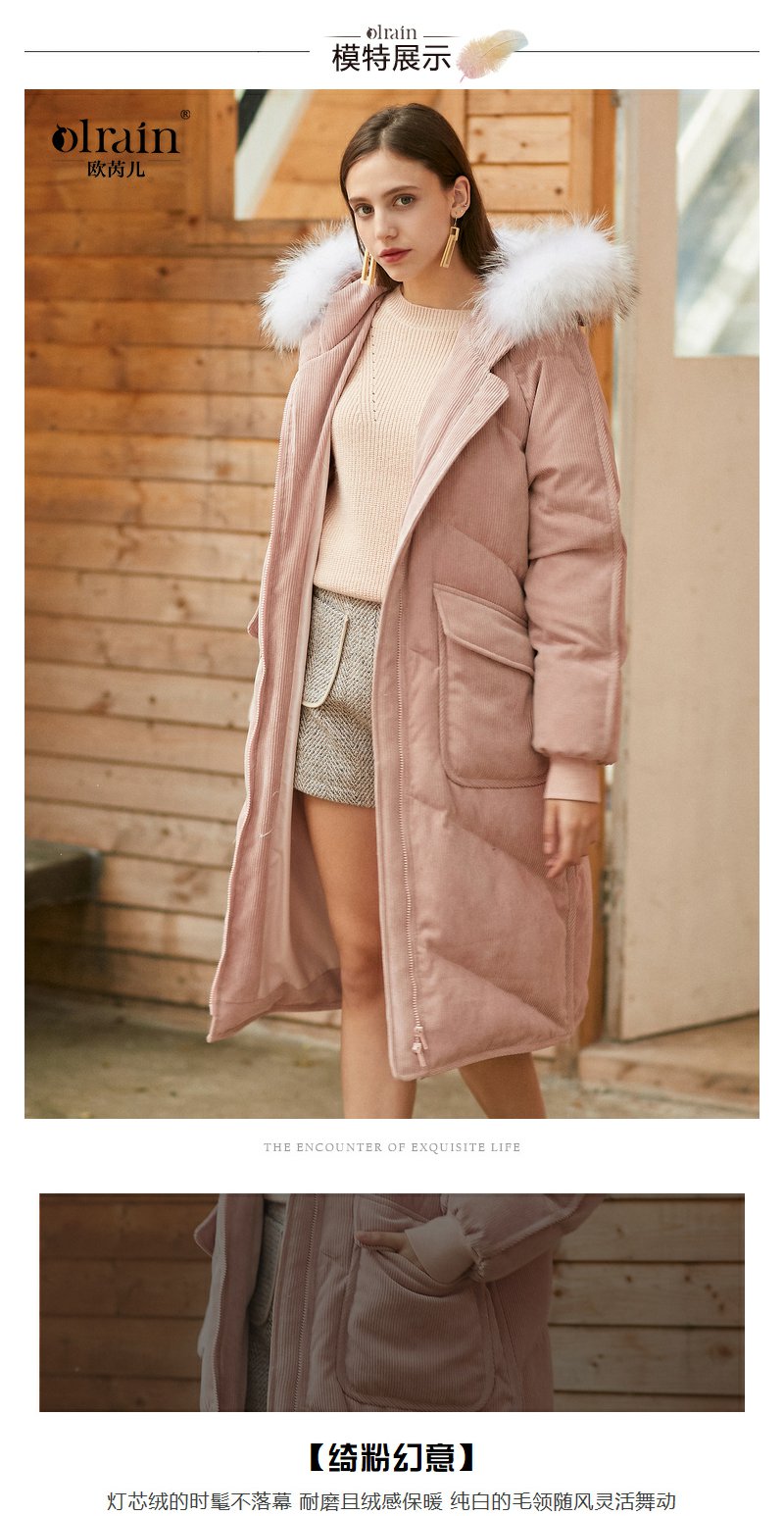 欧芮儿羽绒服女中长款秋冬装2019新款保暖加厚大毛领连帽外套