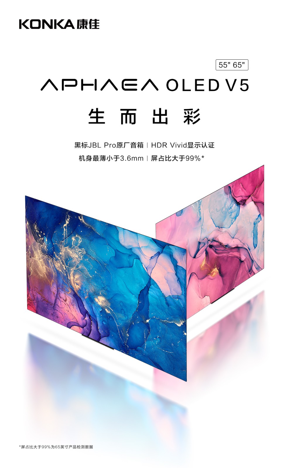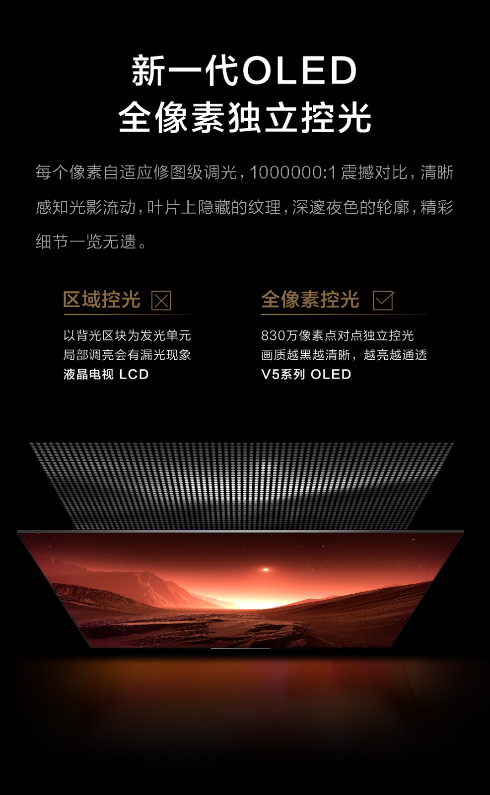 康佳(KONKA)OLED65V5 65英寸 OLED护眼 4K超高清 纤薄 平板液晶电视 黑色