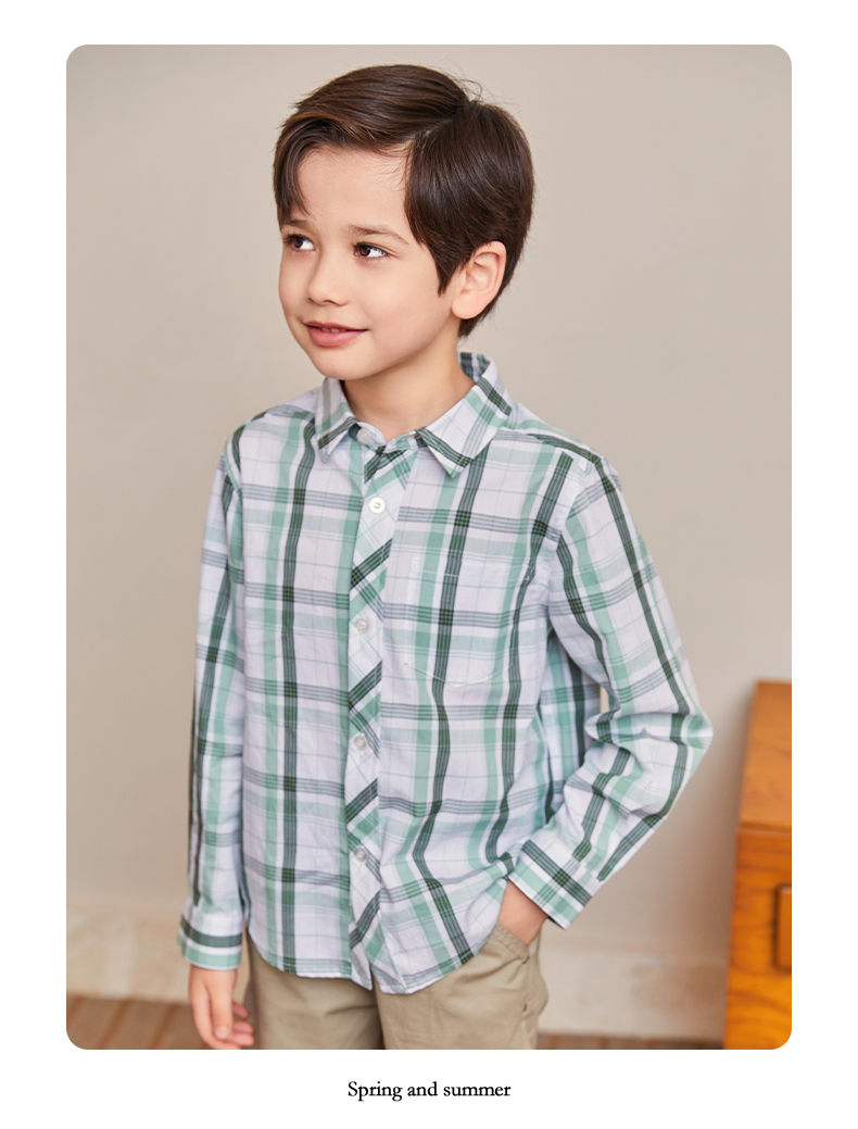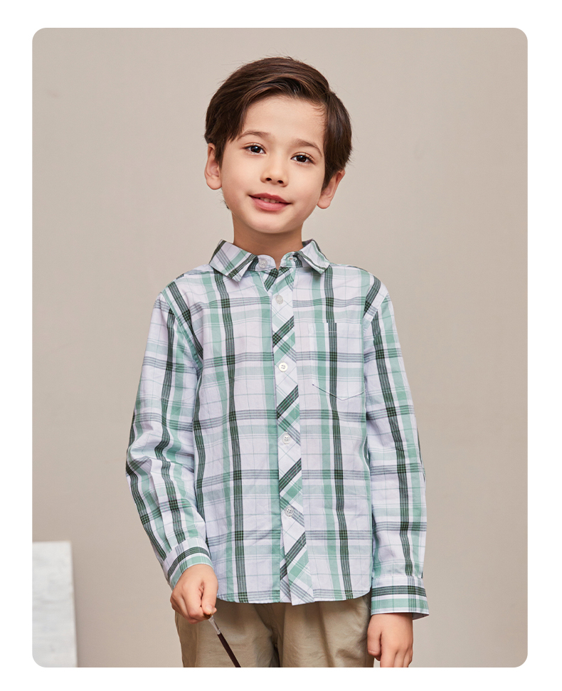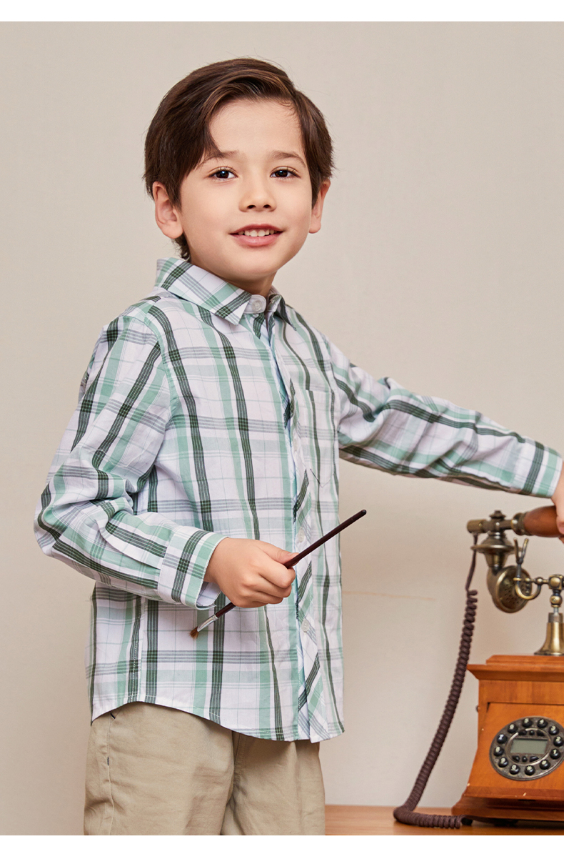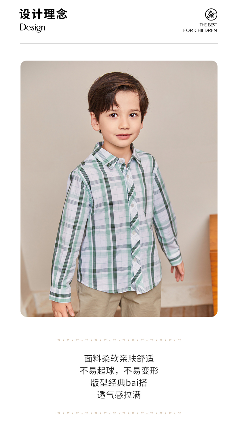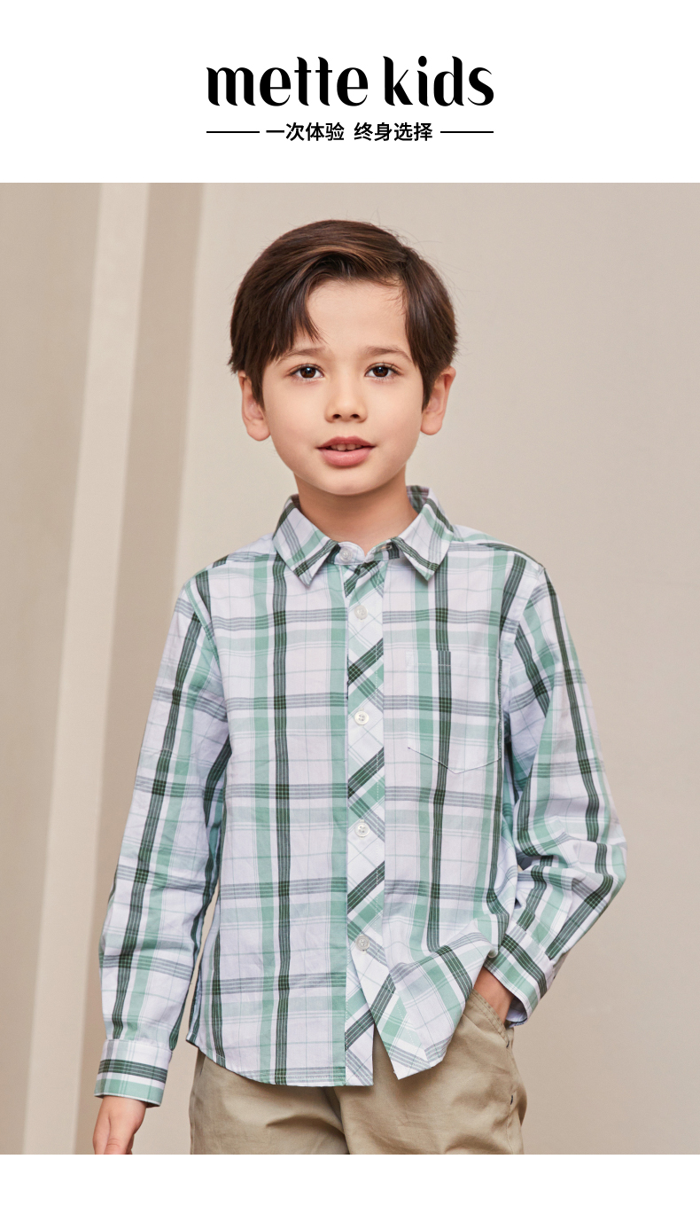 mettekids男童衬衫春秋新款儿童格子上衣童装中大童纯棉长袖衬衣