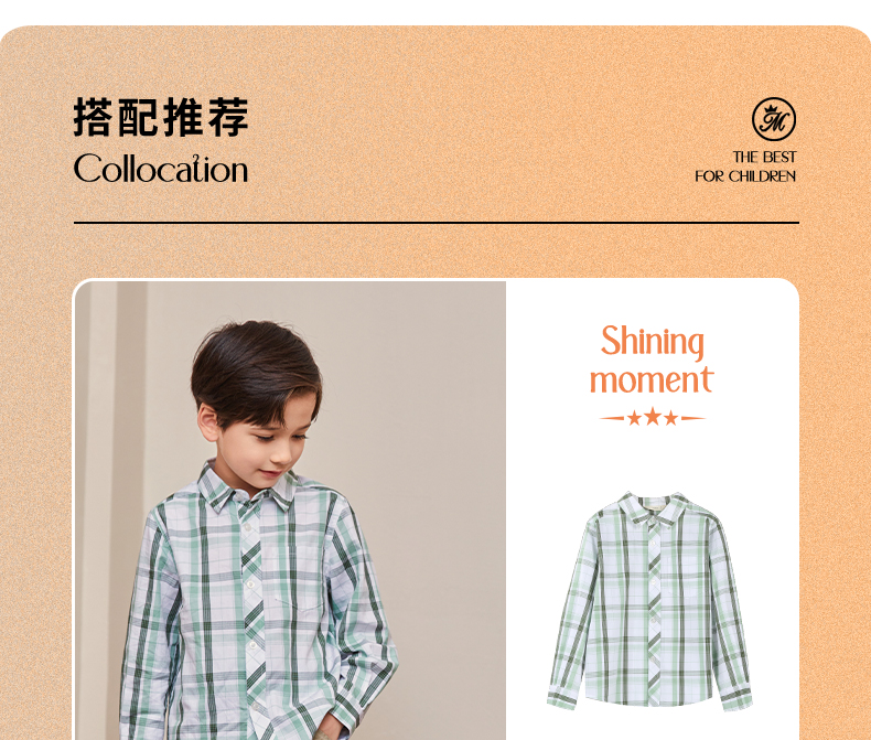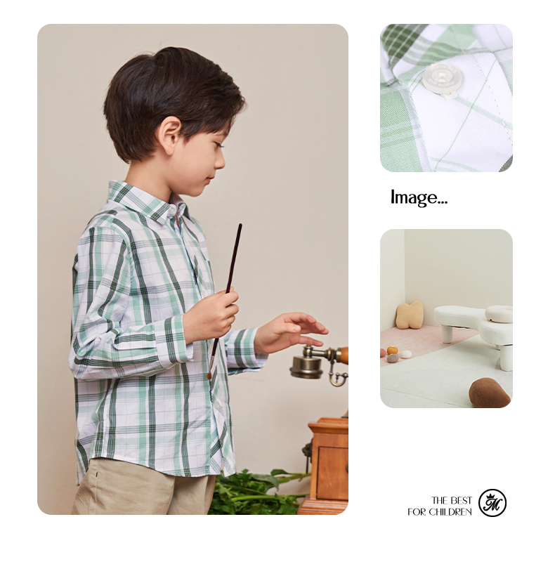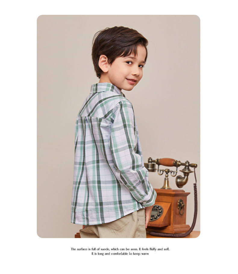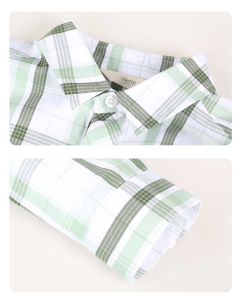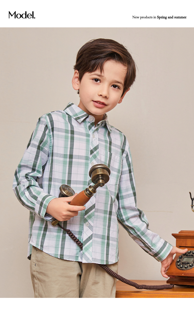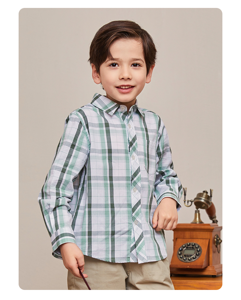 mettekids男童衬衫春秋新款儿童格子上衣童装中大童纯棉长袖衬衣