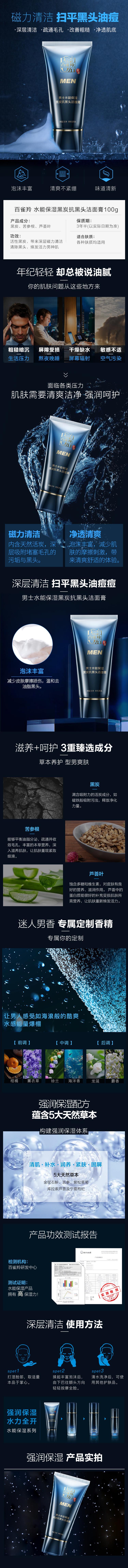 百雀羚草本男士水能保湿黑炭抗黑头洁面膏100g