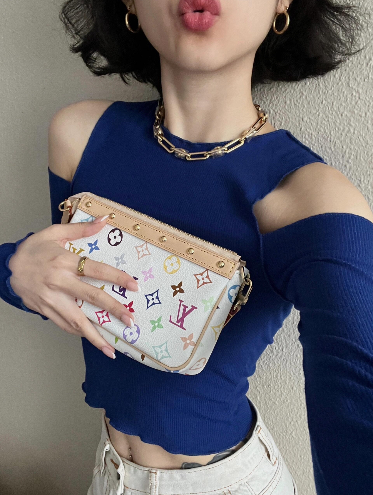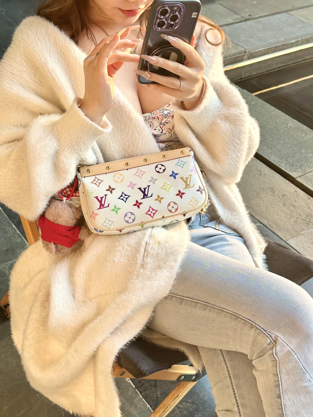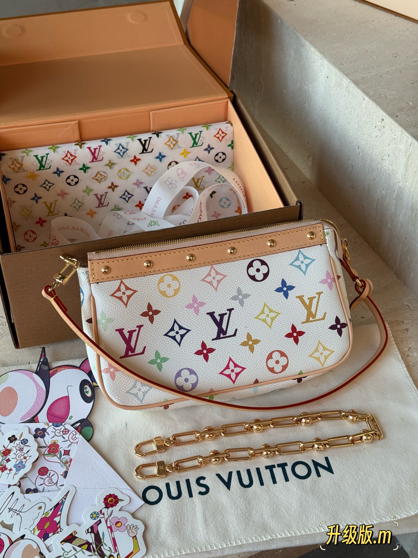 顶级免税版 VIP专柜体验 收到即官网同样 LV村上隆联名 白三彩麻将包 这个新款气质真的无敌好 多加了一条链条更时髦了 巨好看 巨出片!