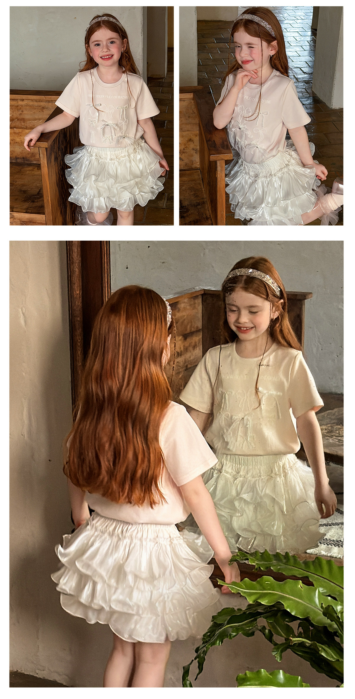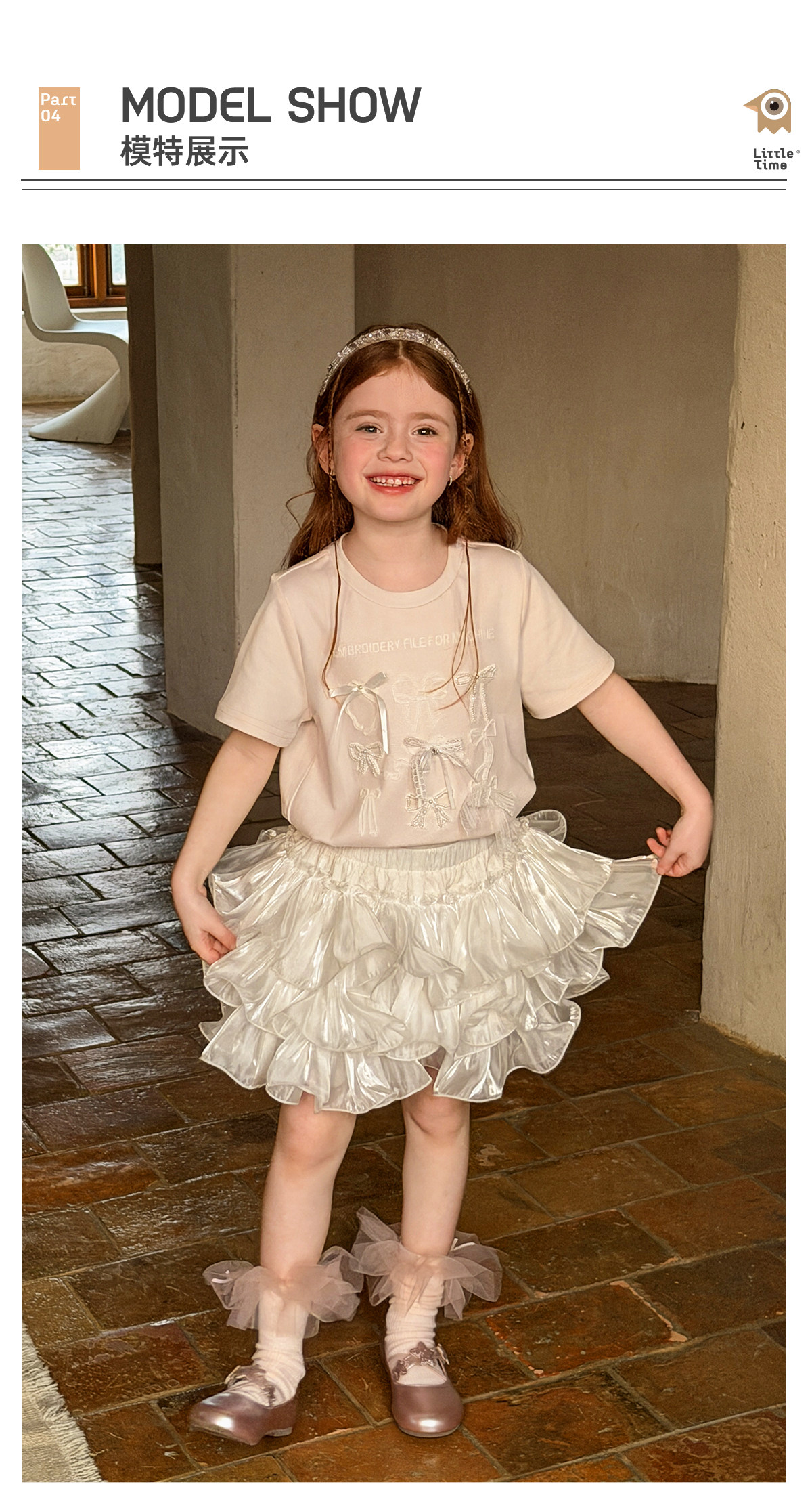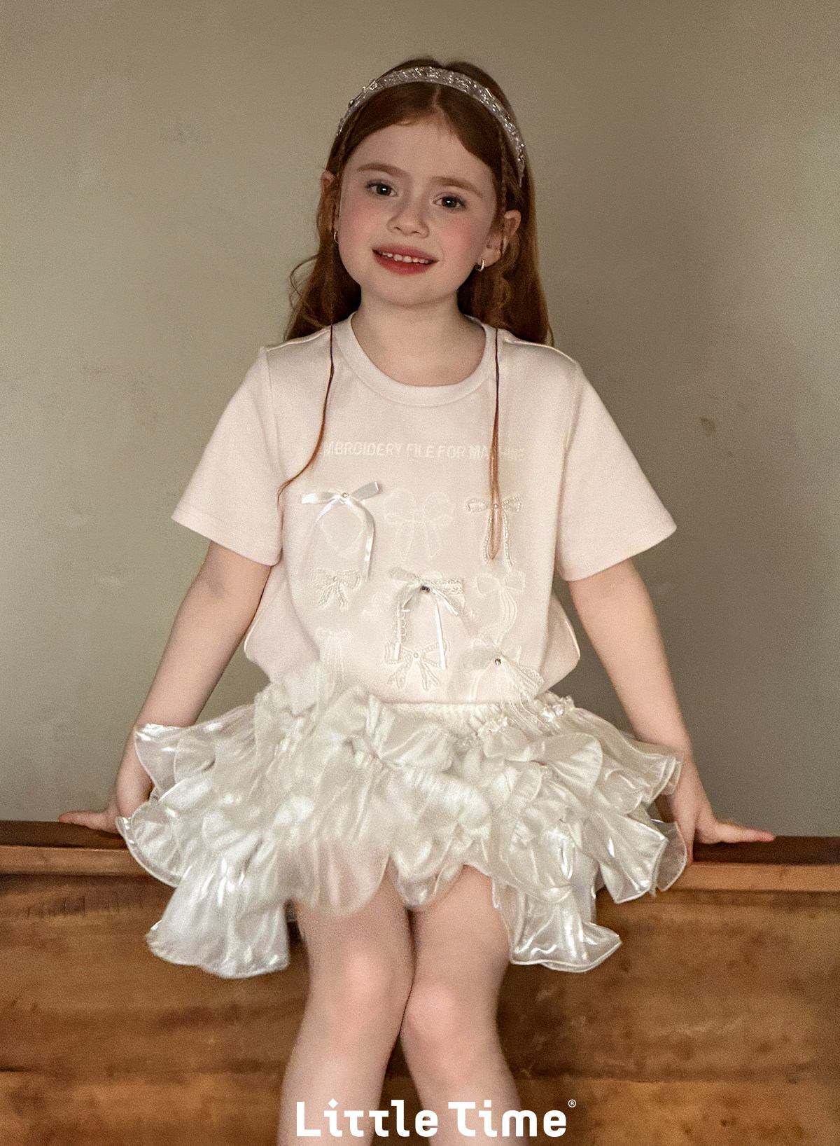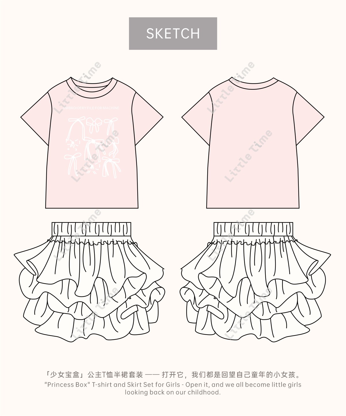 littletime美式甜心风刺绣印花T恤女短袖圆领白色度假风上衣