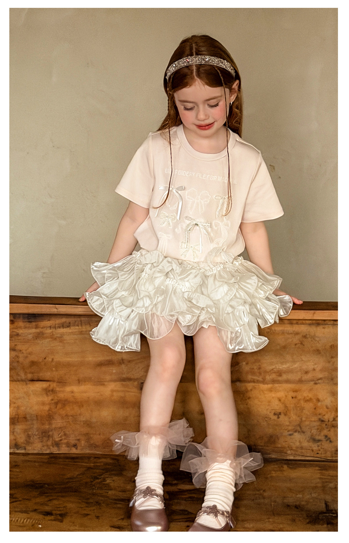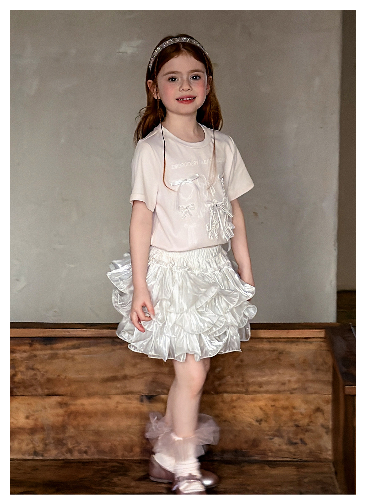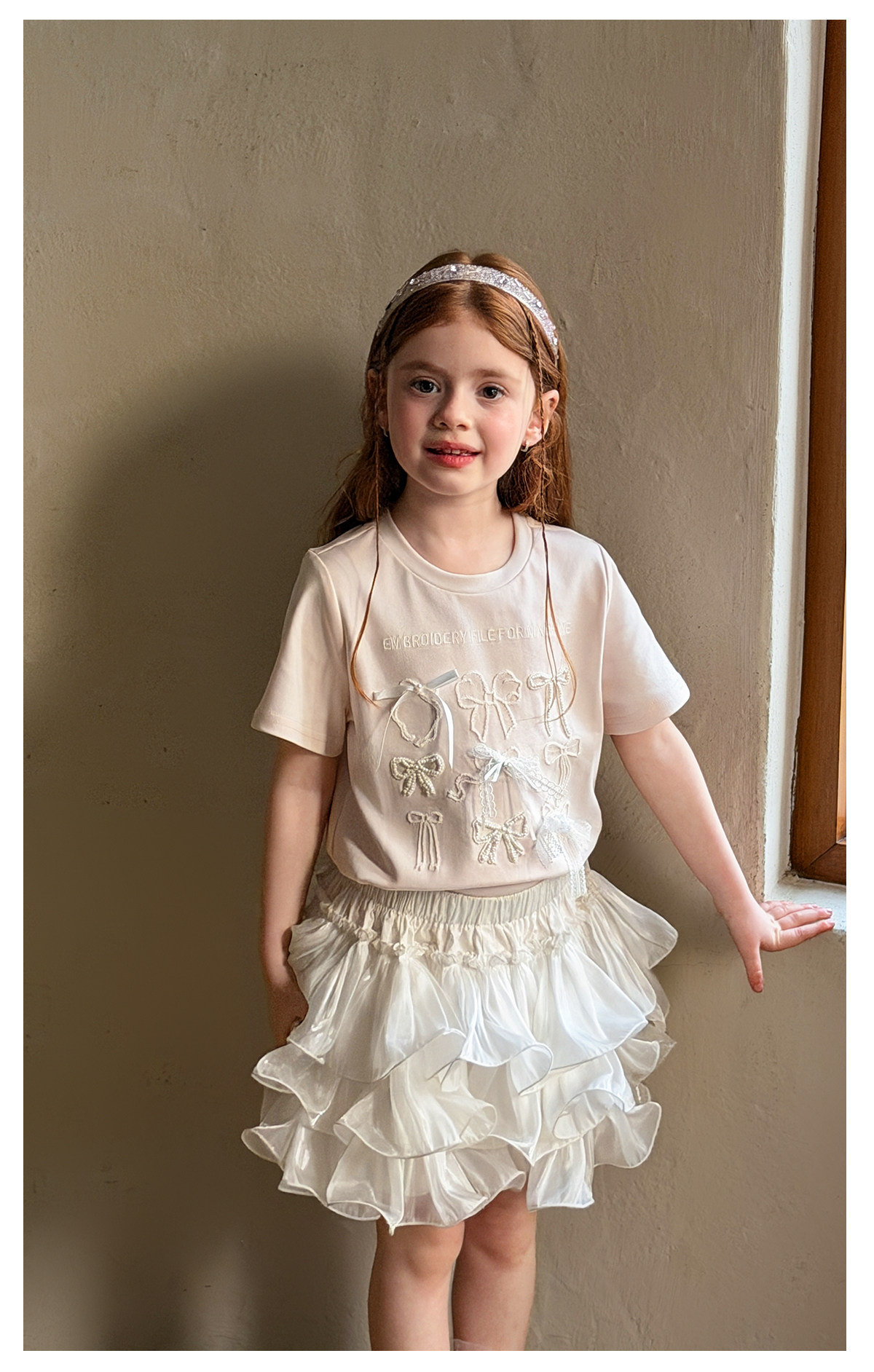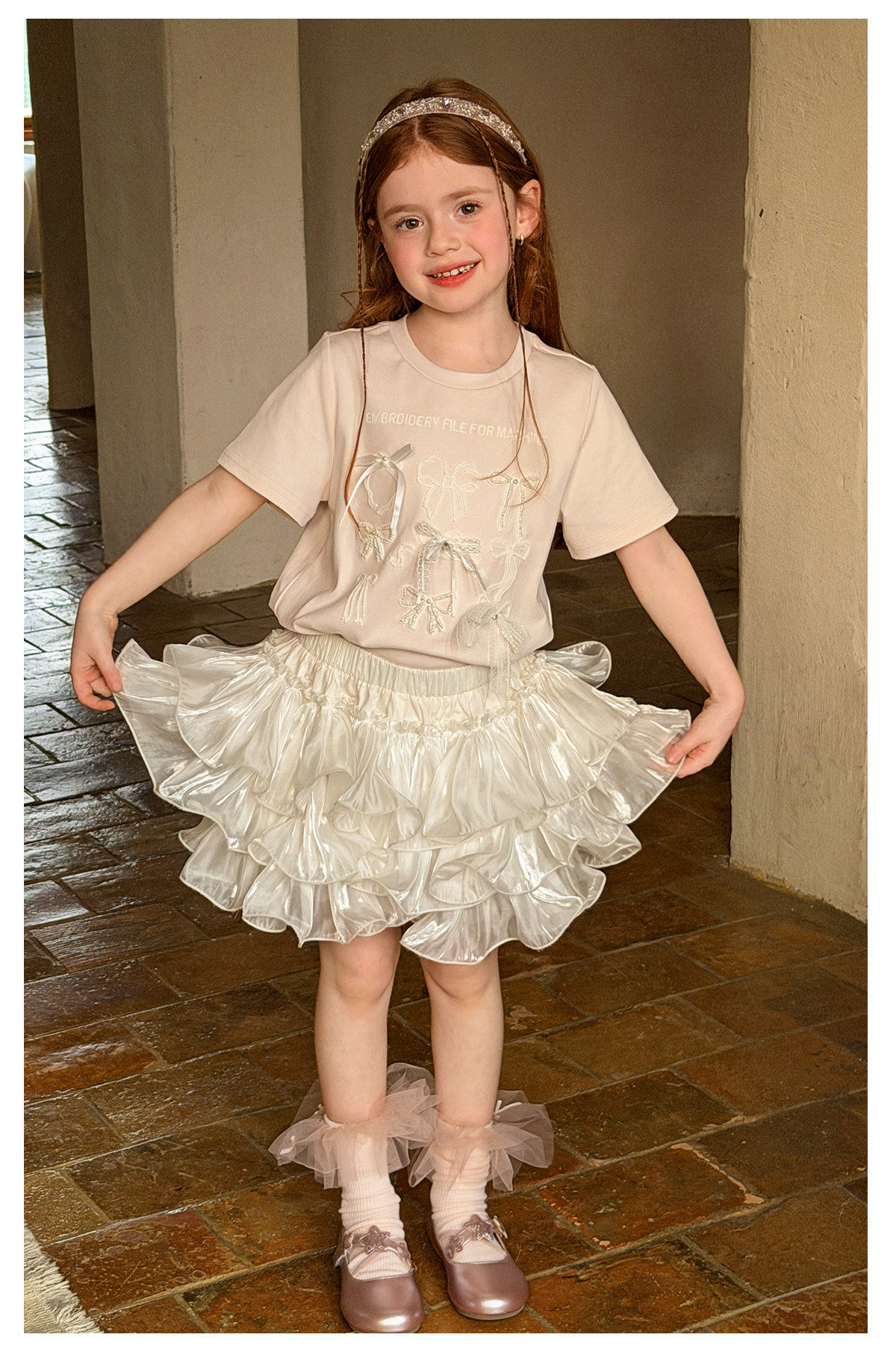 littletime美式甜心风刺绣印花T恤女短袖圆领白色度假风上衣