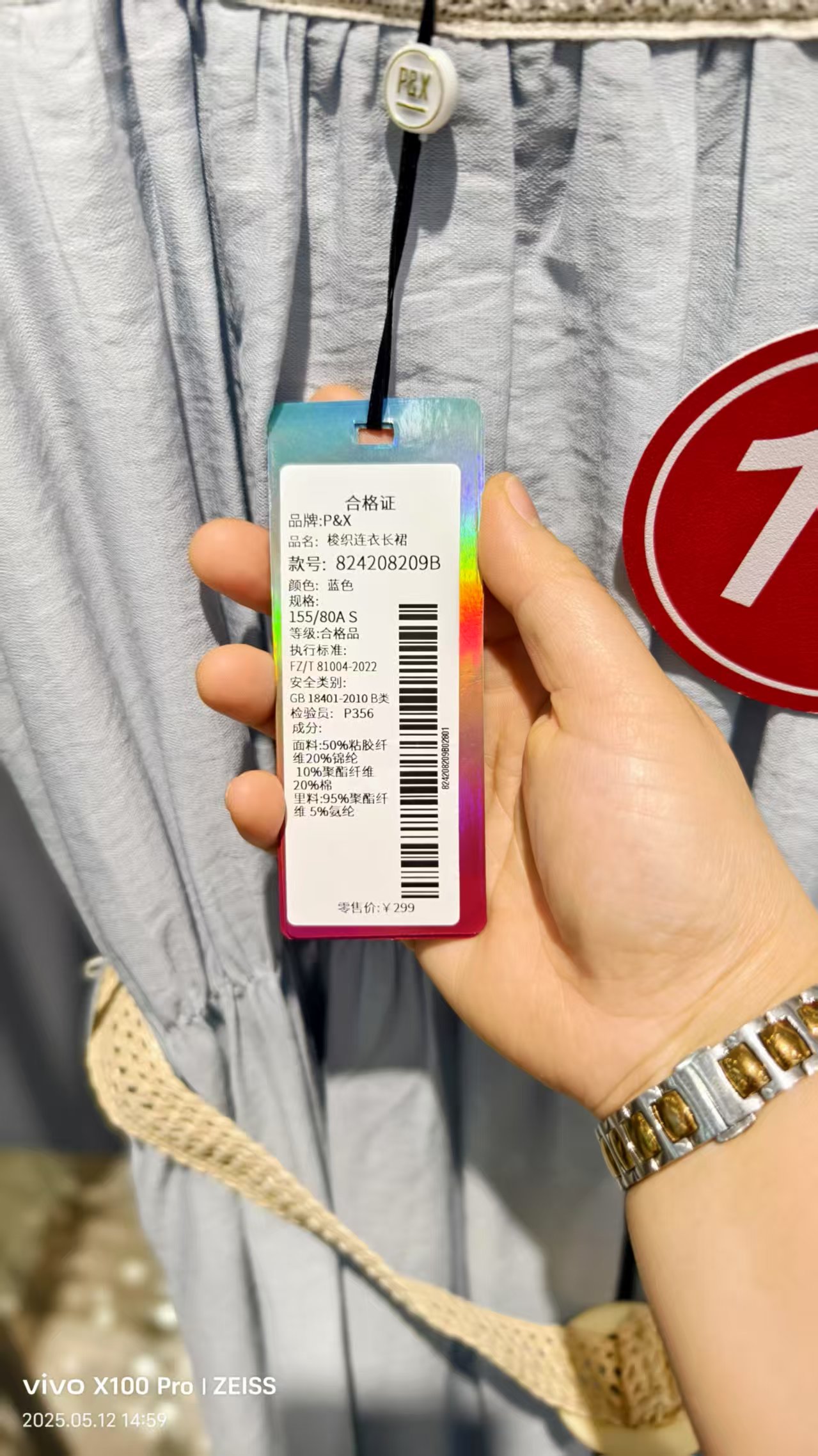 P&X设计师女装 夏 梭织连衣长裙 蓝色 824208209B