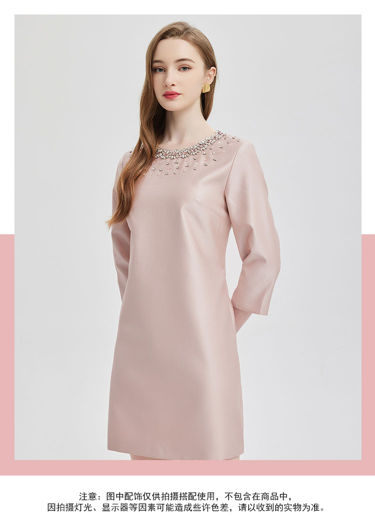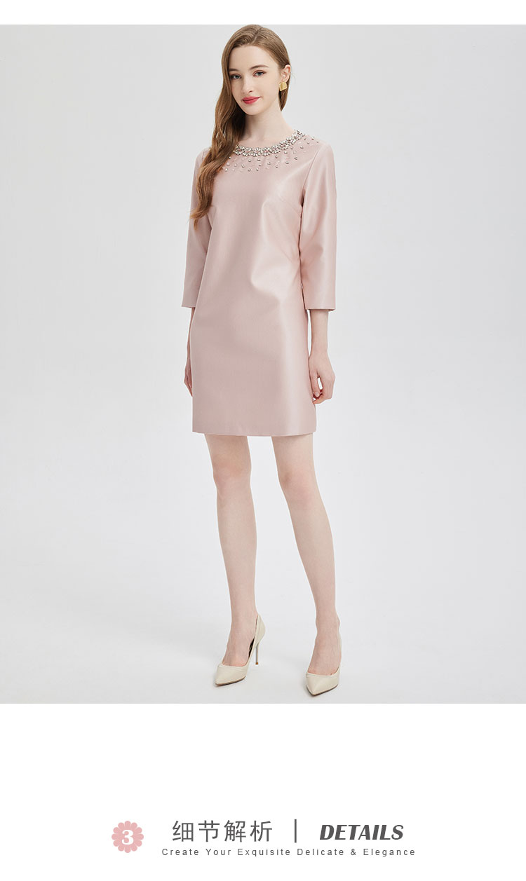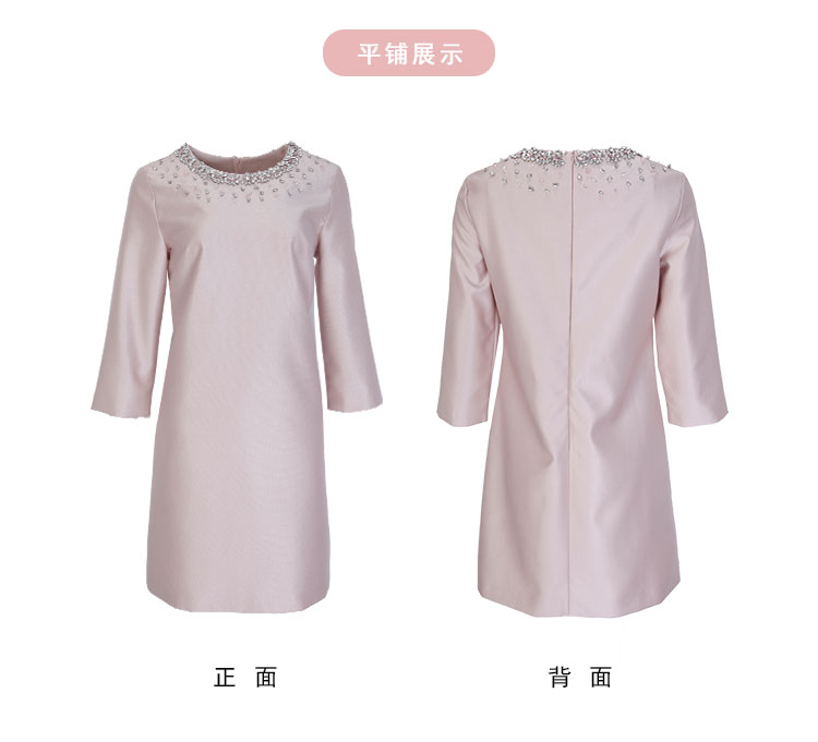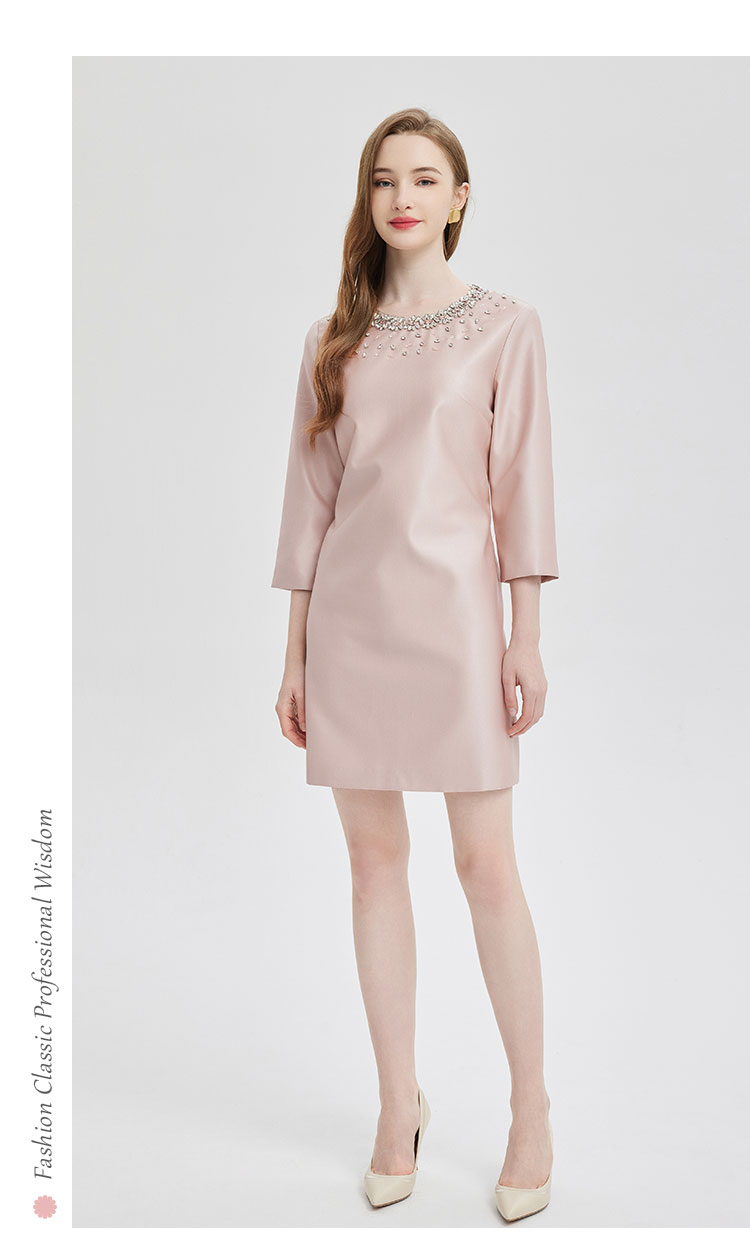 PE805斯尔丽24新款名媛风华丽钉珠H身型七分袖连衣裙