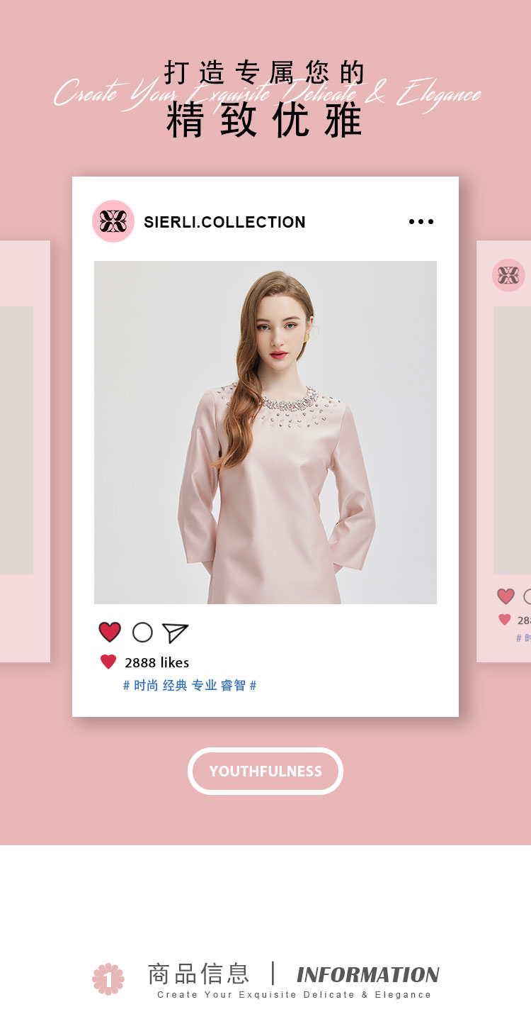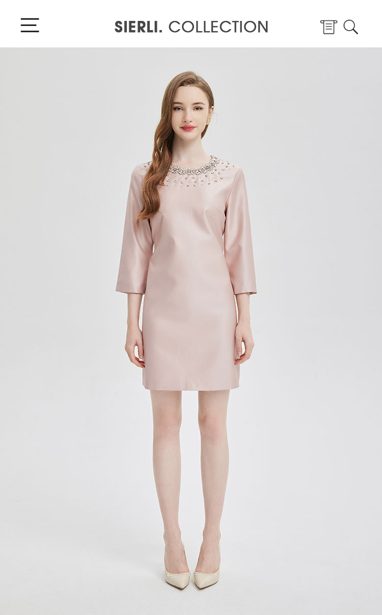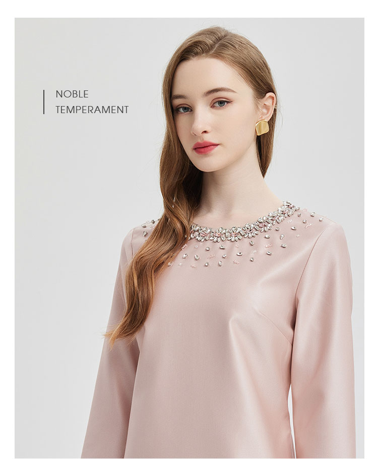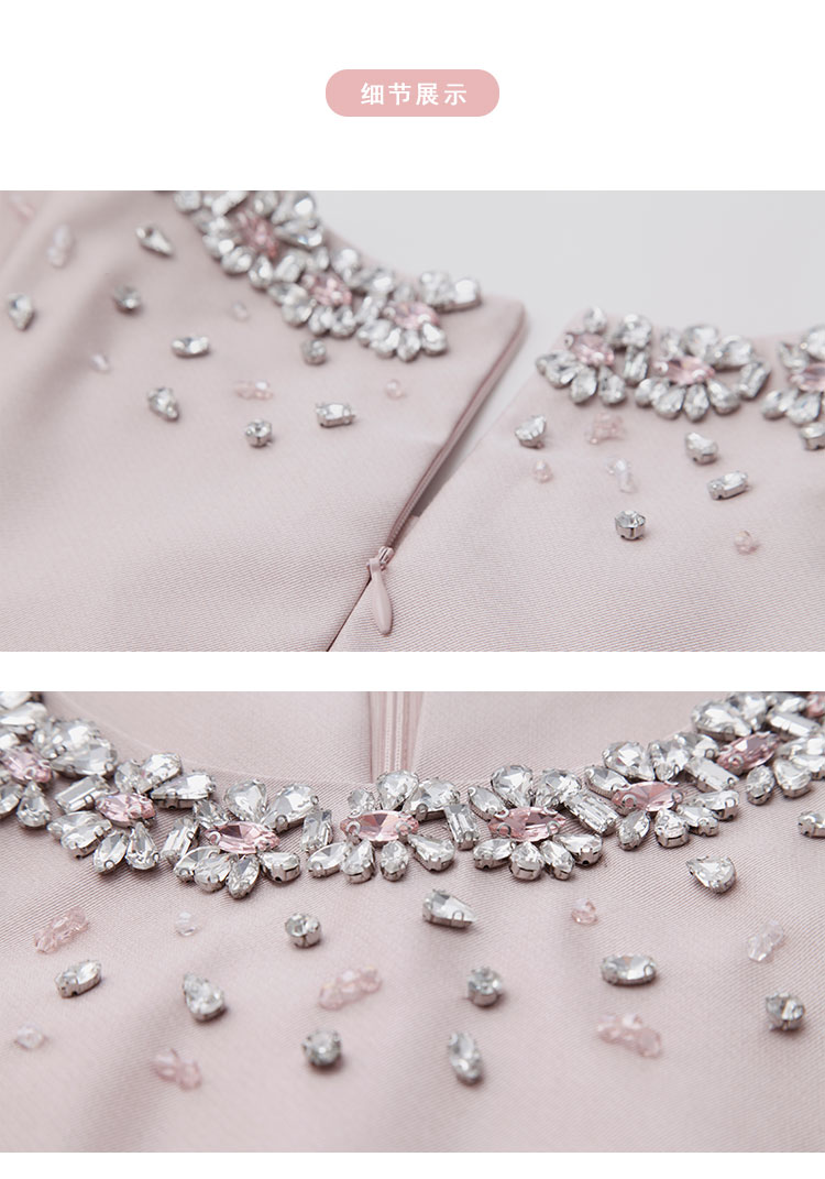PE805斯尔丽24新款名媛风华丽钉珠H身型七分袖连衣裙