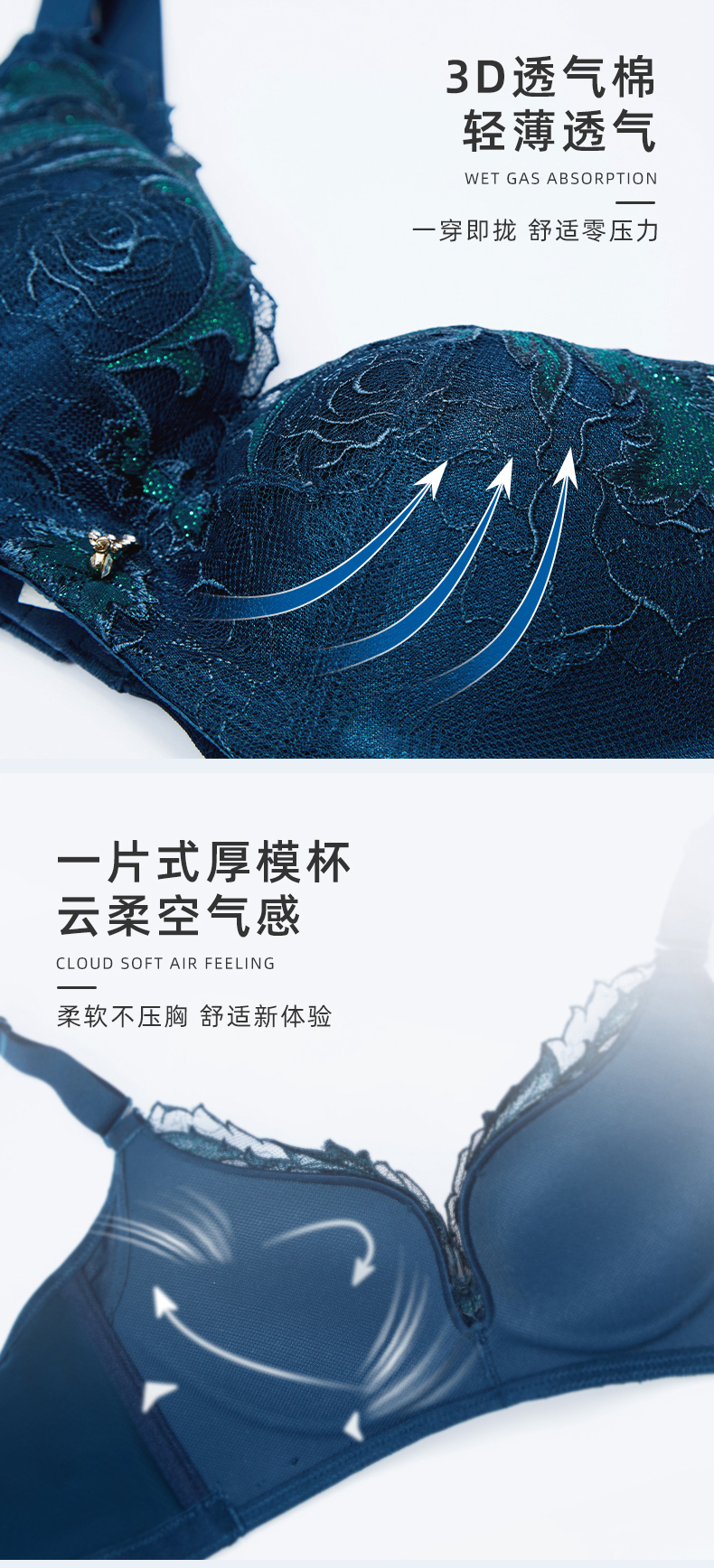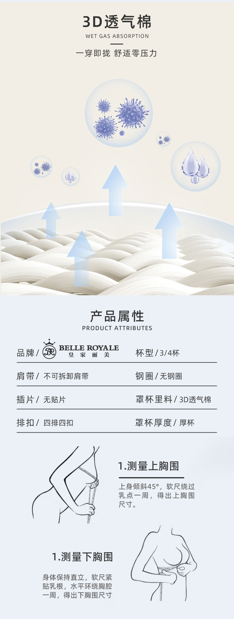 皇家丽美无钢圈文胸精美刺绣透气棉内衣美背四排扣聚胸内衣WW918-3