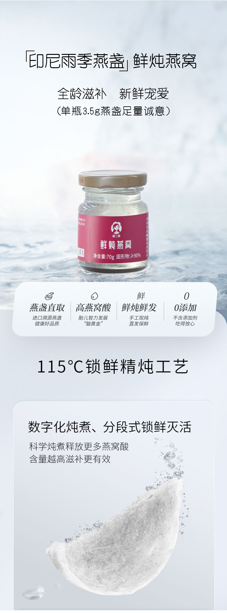 【喜乐元宵节】【鲜炖燕窝 固形物≥90%】【原料雨季燕盏 黄金产地】鲜炖燕窝小鲜瓶70g*3瓶 原味/无糖孕妇即食营养 3倍活性蛋白 高营养