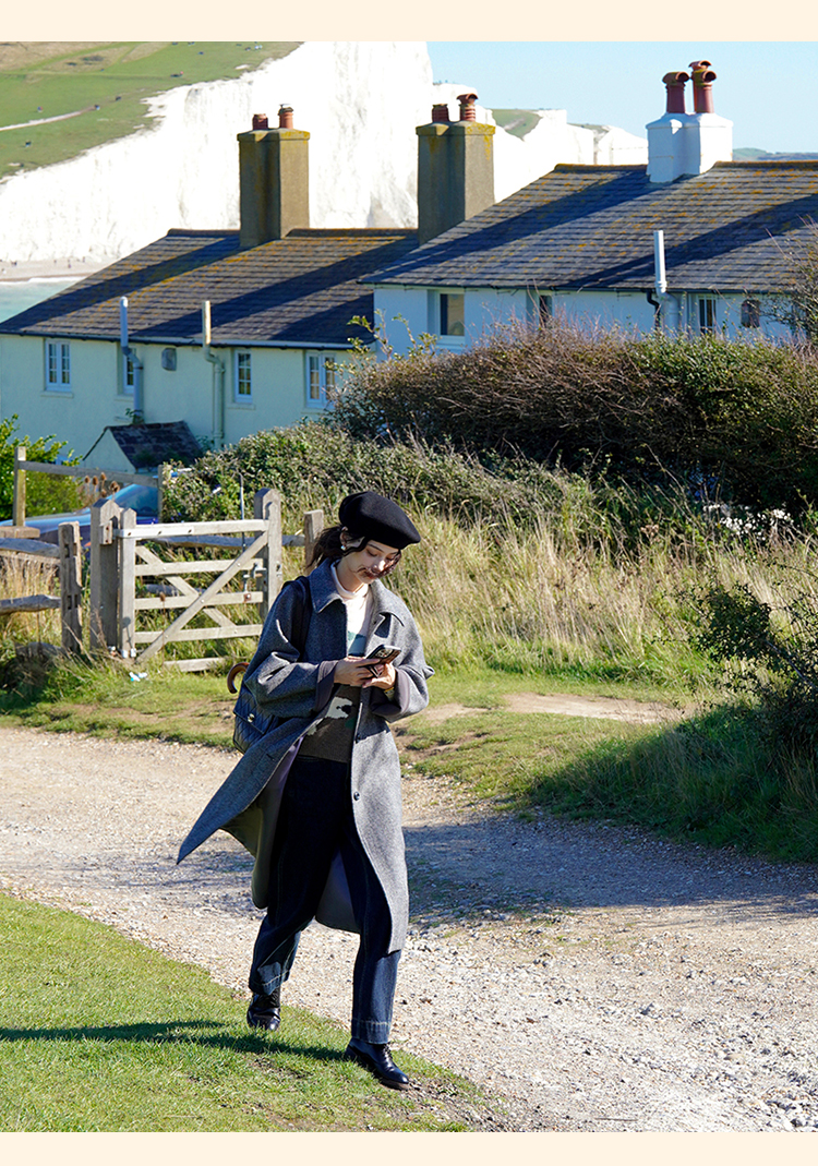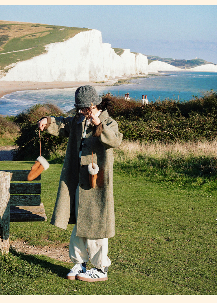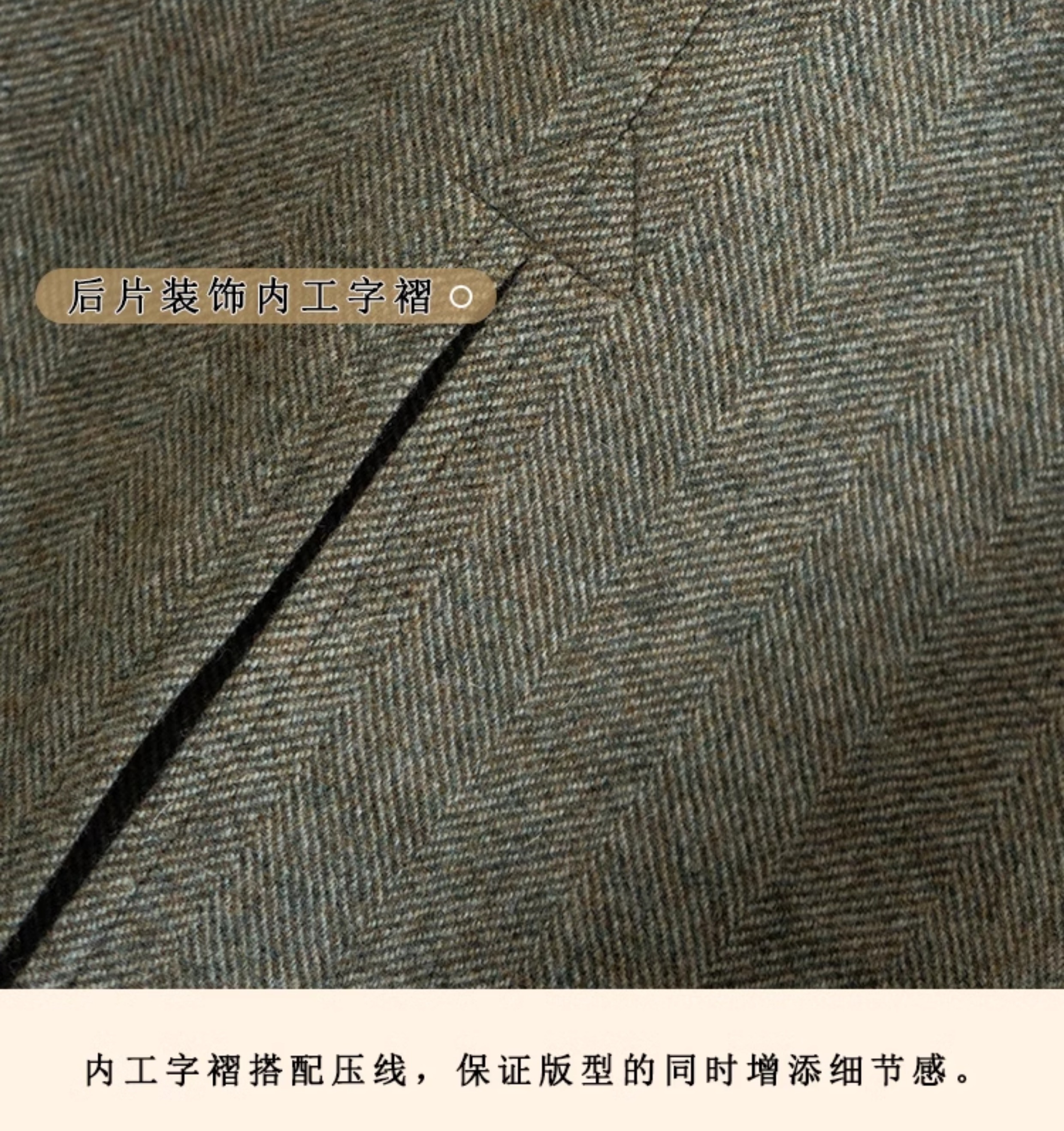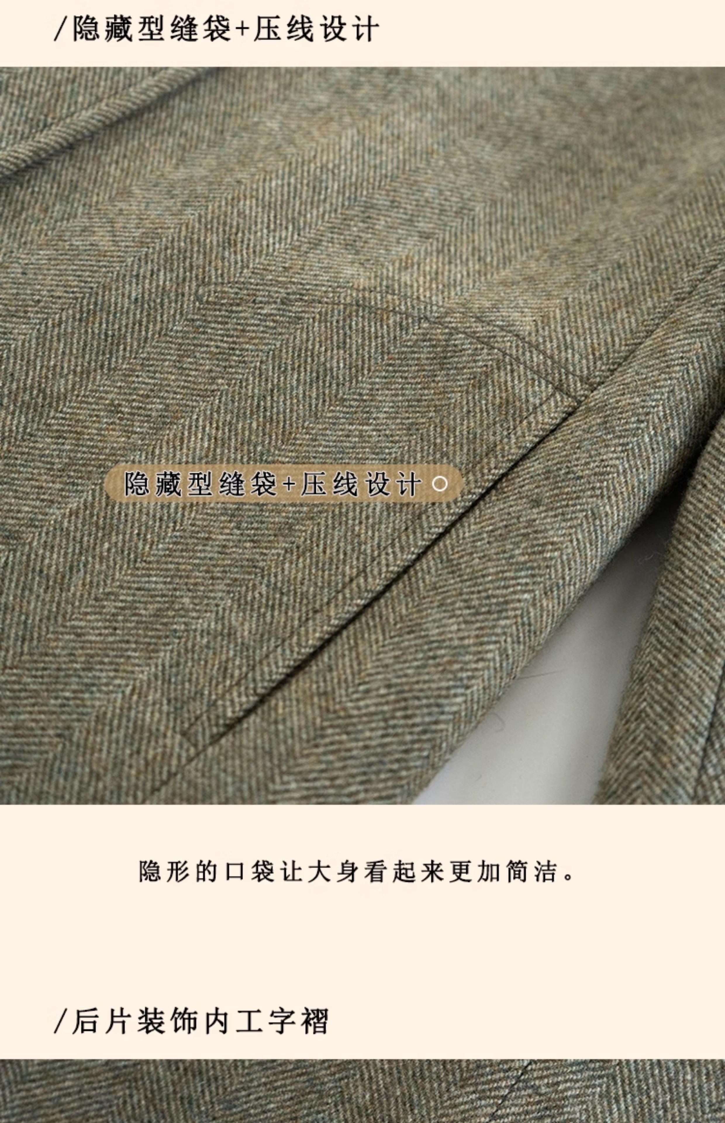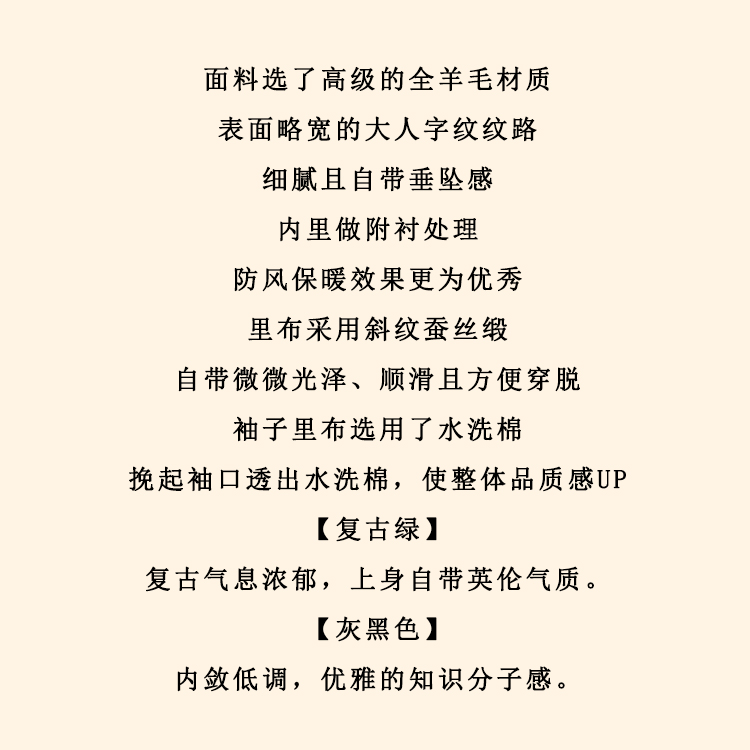 浮生八记/24C114/复古全羊毛人字纹羊腿袖卷袖口大衣