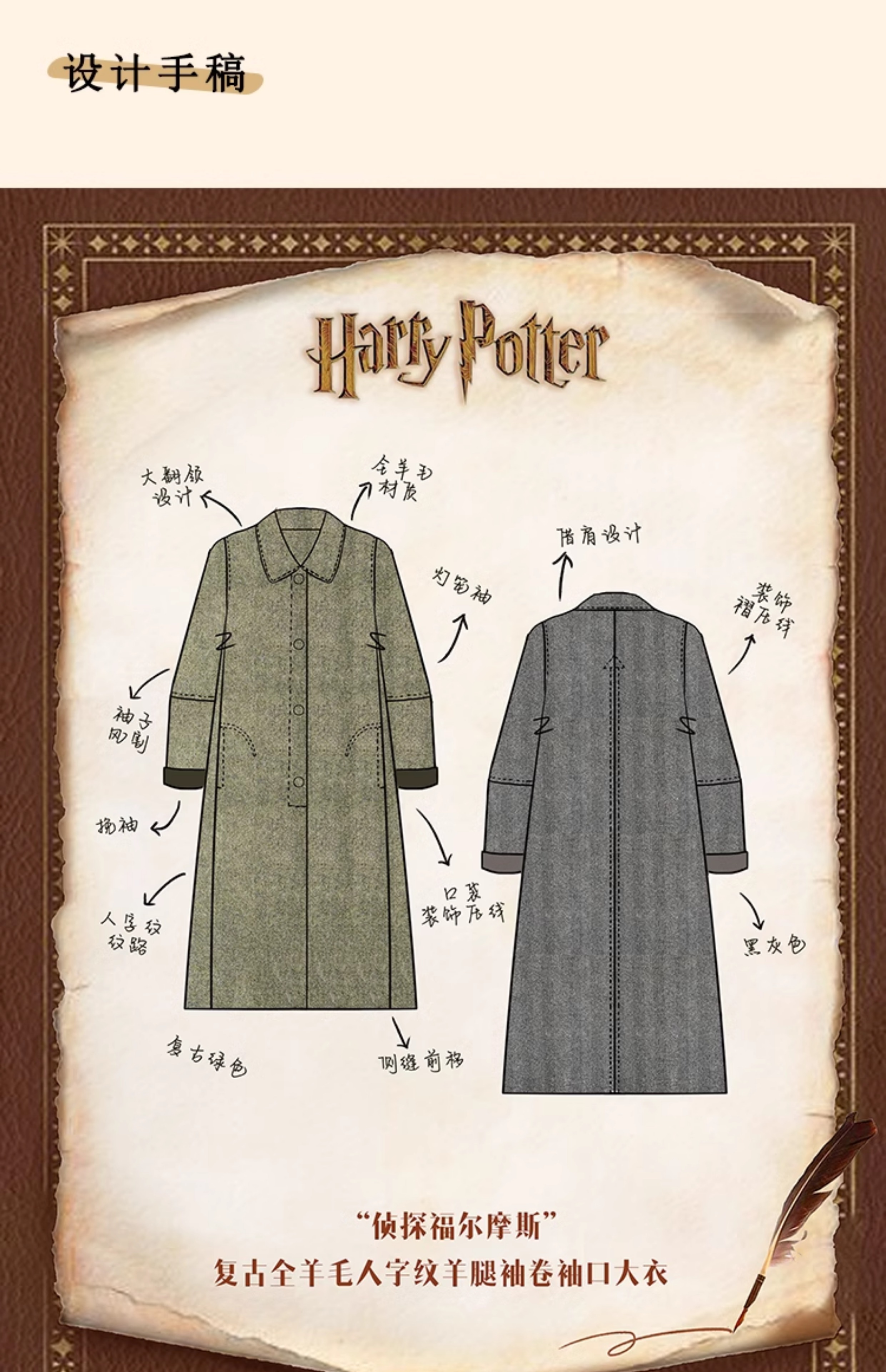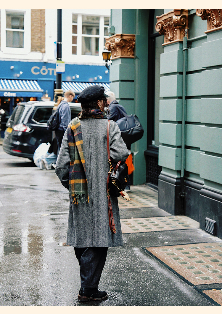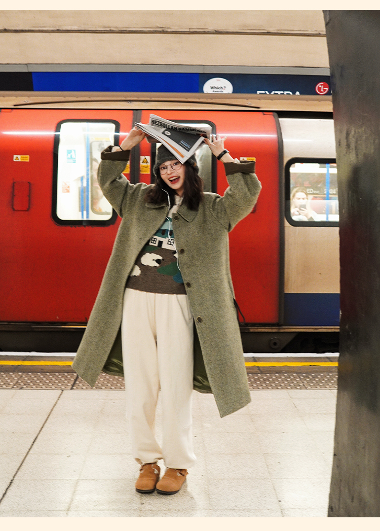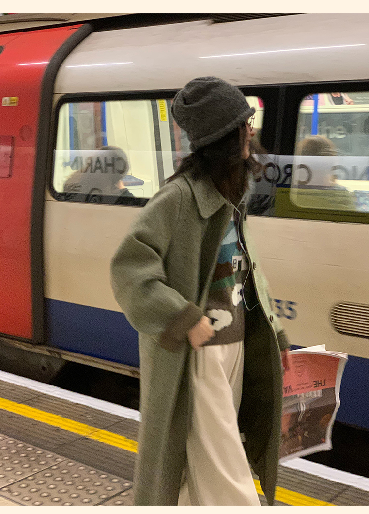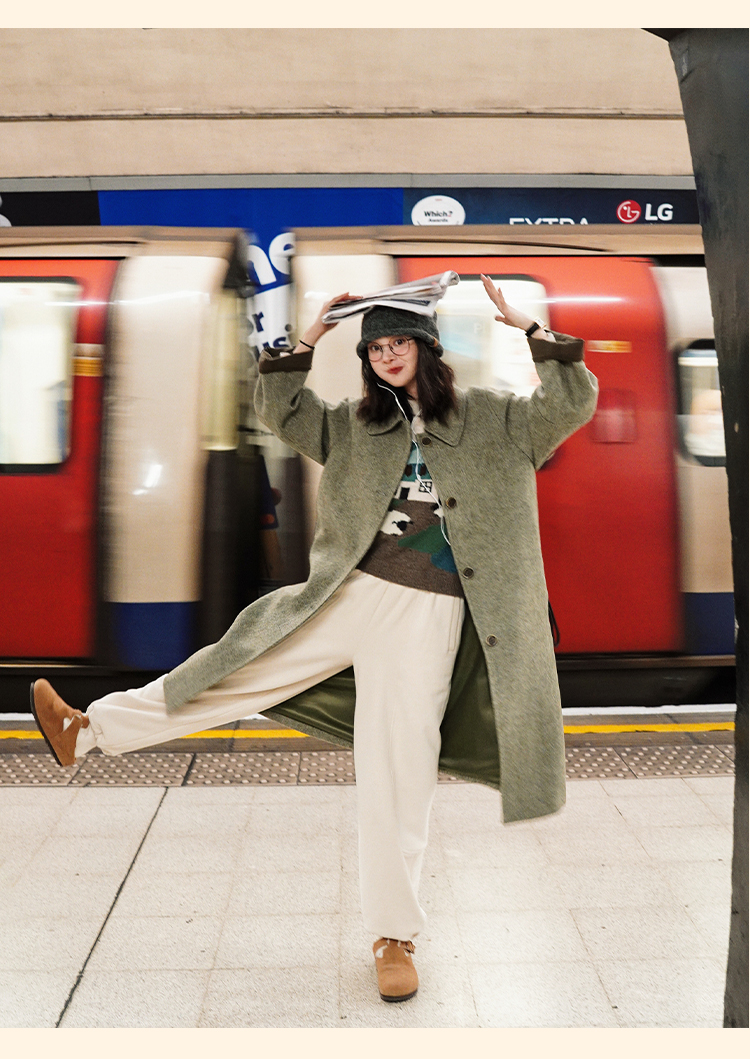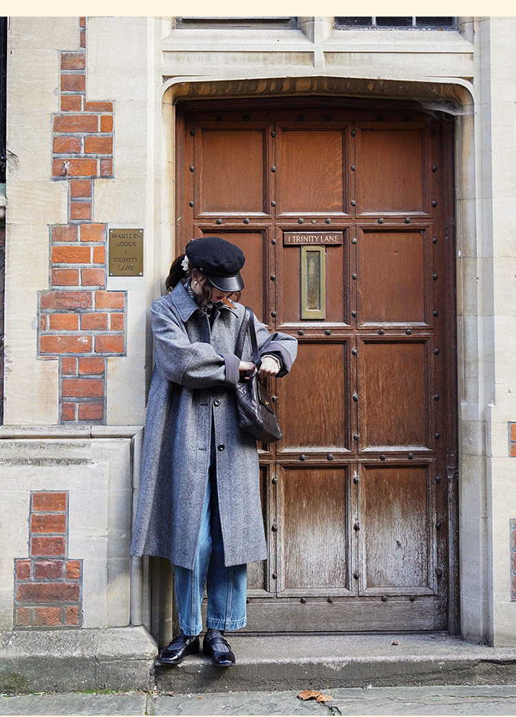 浮生八记/24C114/复古全羊毛人字纹羊腿袖卷袖口大衣
