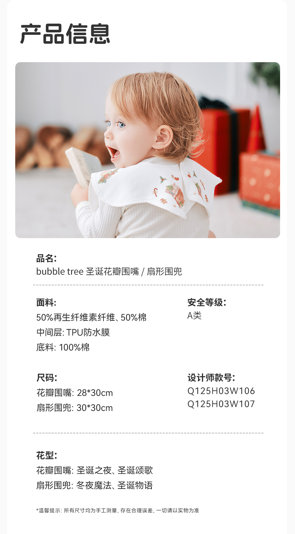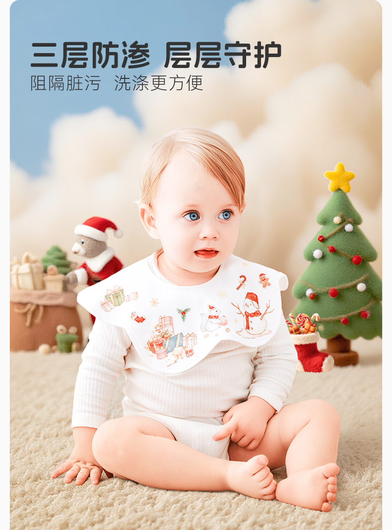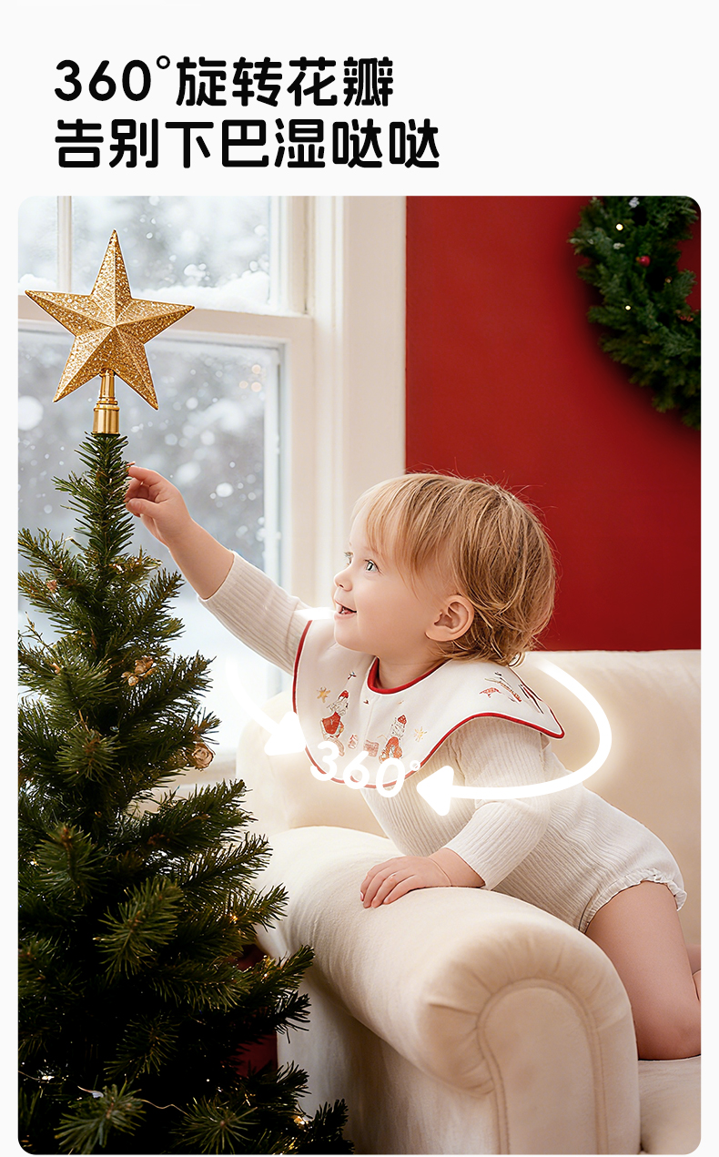 【云优选】圣诞限定 BUBBLE TREE口水巾新生婴儿宝宝圣诞花瓣纱布围兜儿童防水围嘴a类(预售,预计10-15号发货,介意慎拍)