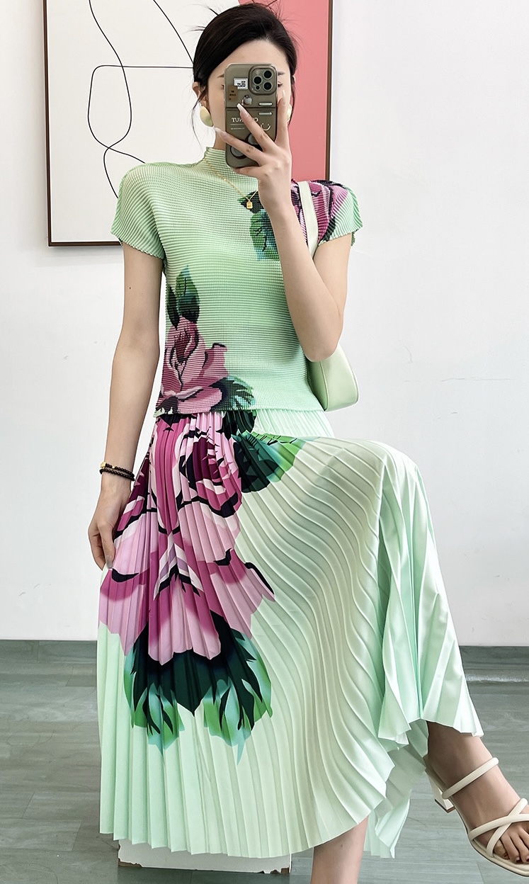 女压褶玫瑰裙 # 绿 杏 均码 轻盈不变形 突破尺寸限制 可塑性超强 舒畅飘逸 尊重穿着者的个性