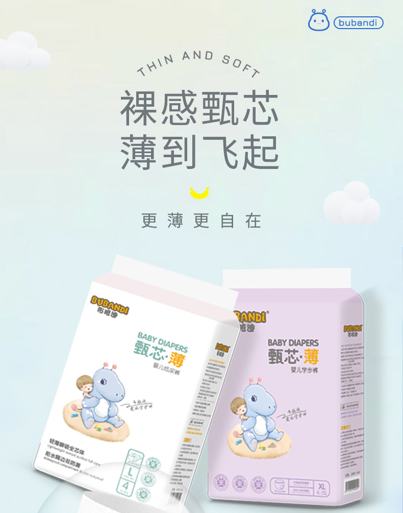 【试用装2包】布班迪甄芯薄纸尿裤拉拉裤旅行装0.2cm超薄人气爆款三安认证尿不湿体验装