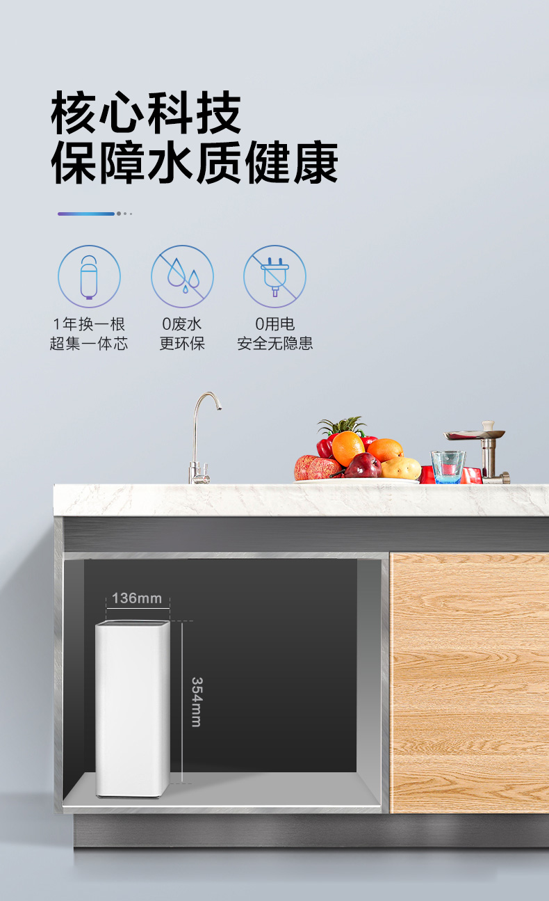 美的(Midea)MU1861A 厨下式 家用净水器 超集一体自主换芯 矿物质水 不用电零废水 前置过滤器 美的净水器