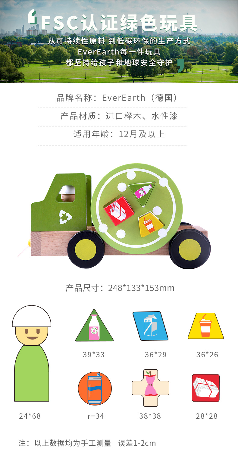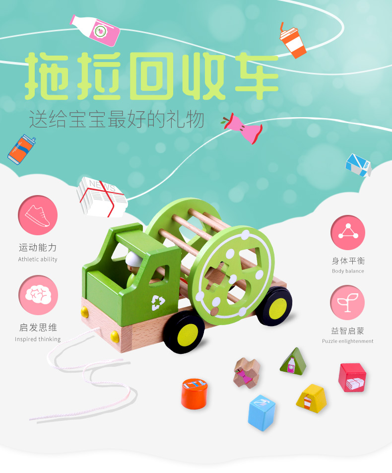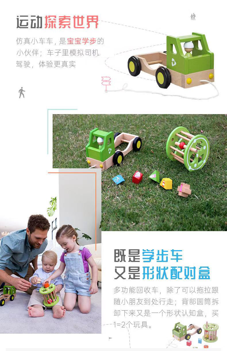 德国EverEarth 拖拉回收车单品 拖拉回收车儿童婴儿宝宝拖拉学步玩具