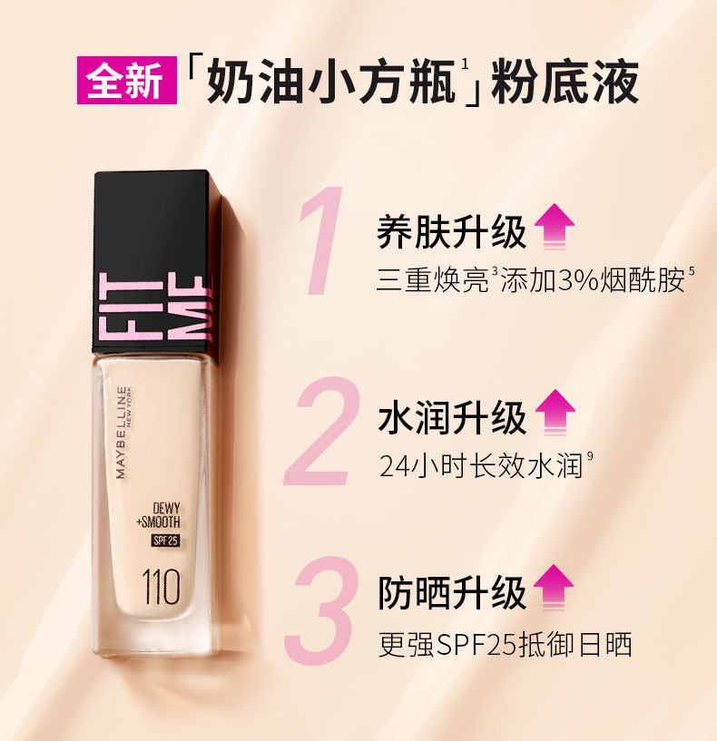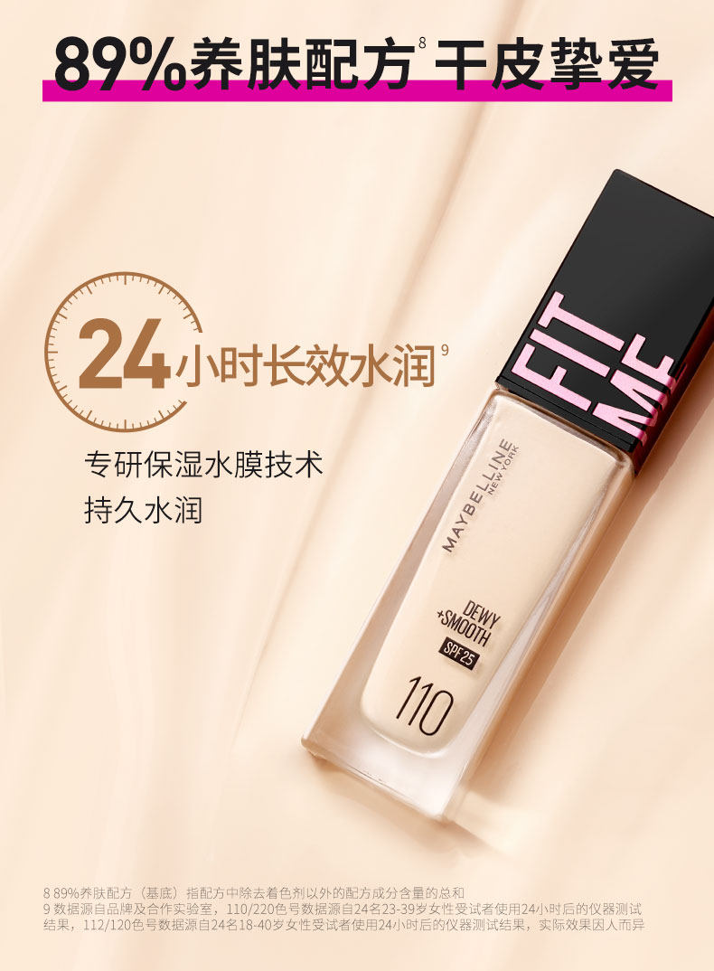 美宝莲纽约FIT ME PRO粉底液干皮滋润秋冬保湿控油防晒持久不脱妆