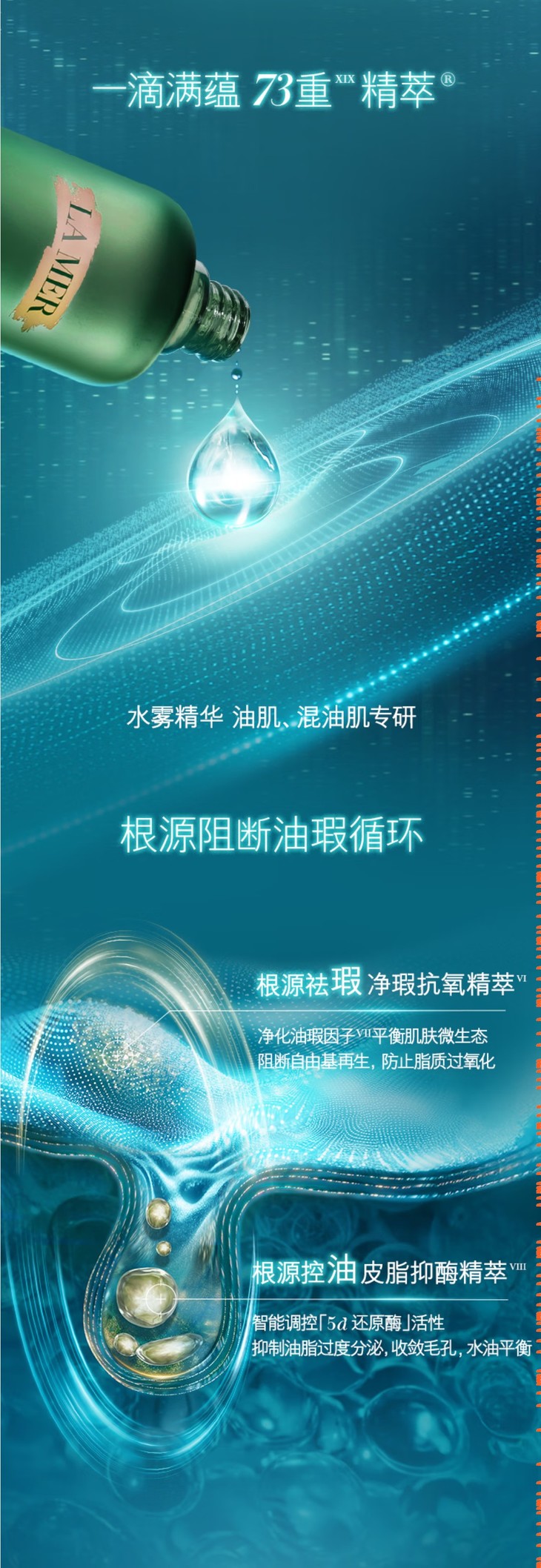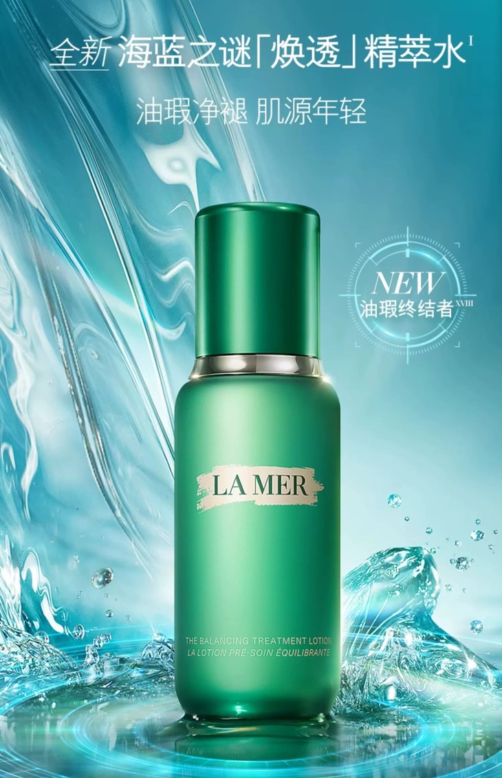 全新海蓝之谜焕透精萃水,专为混油肌设计,三大精萃体系助力控油修护,阻断油瑕循环,焕亮肌肤;奢华礼盒包装。
