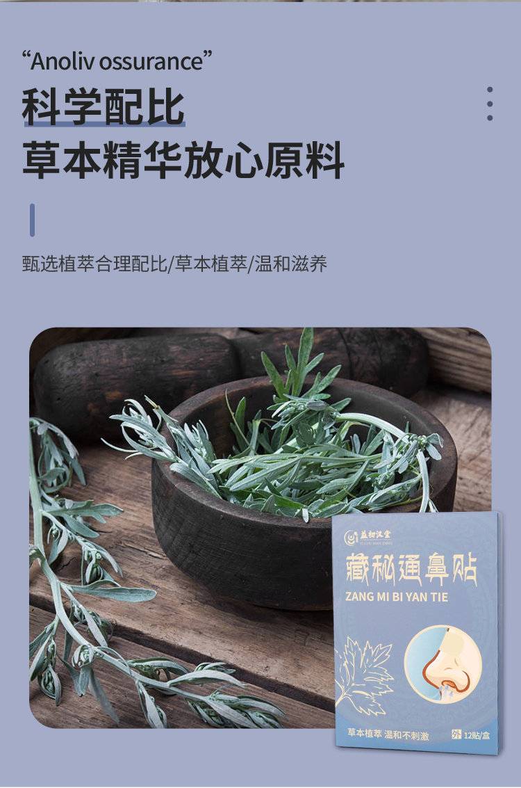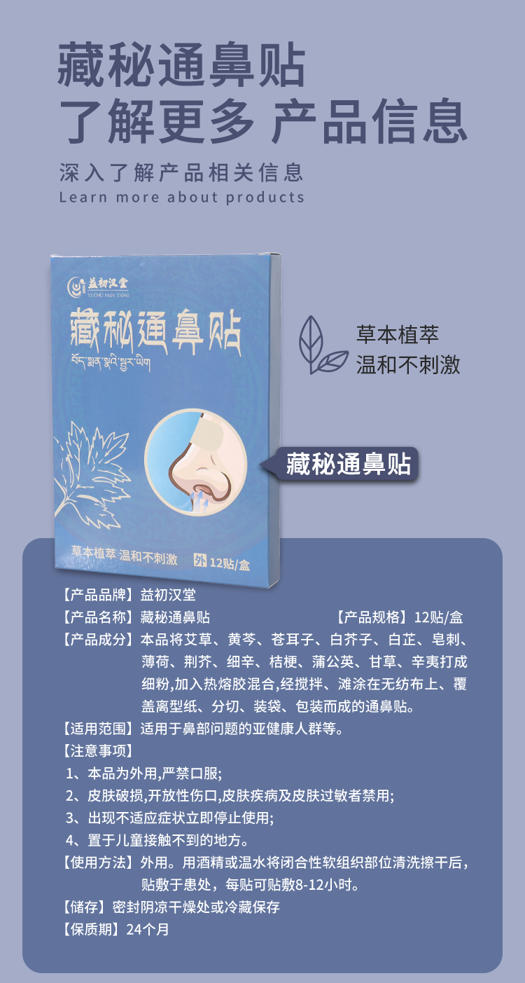 【益初汉堂 藏秘通鼻贴】 草本植萃温和舒适 快速渗透轻薄透气 草本精华放心原料 12贴/盒