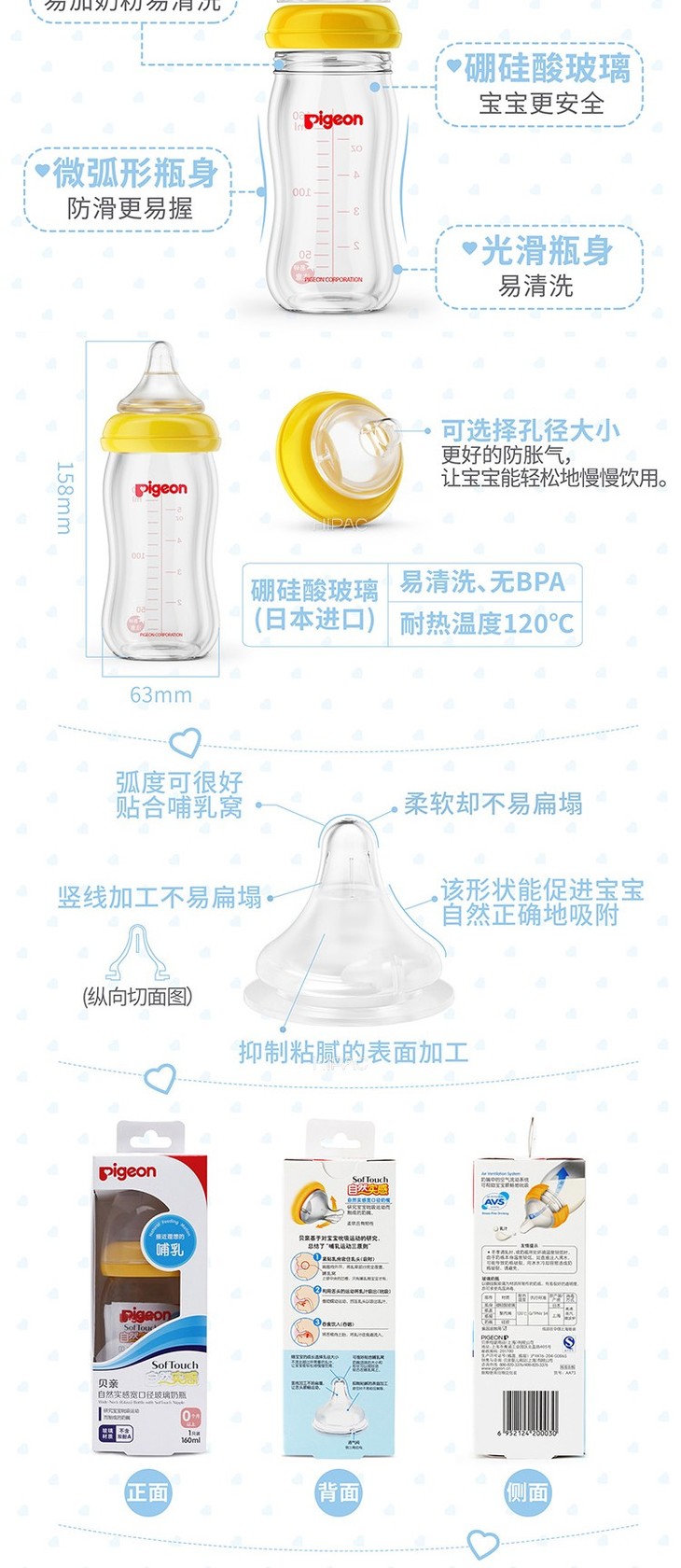 【一般贸易】贝亲宽口径玻璃奶瓶160ml黄色 AA73