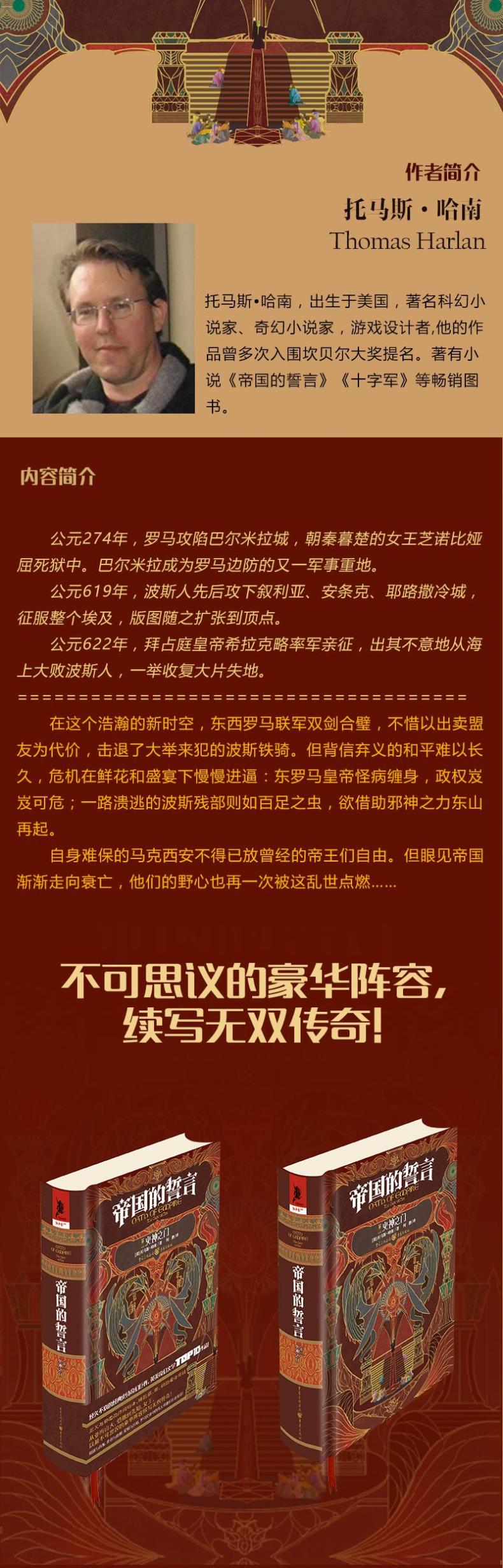 由美国托马斯·哈南所著、何静翻译的《帝国的誓言(卷2火神之门)(精)》一书讲述了:公元274年,罗马攻陷巴尔米拉城,朝秦暮楚的女王芝诺比娅屈死狱中。巴尔米拉成为罗马边防的又一军事重地。公元619年,波斯人先后攻下叙利亚、安条克、耶路撒冷城,征服整个埃及,版图随之扩张到顶点。公元622年,拜占庭皇帝希拉克略率军亲征,出其不意地从海上大败波斯人,一举收复大片失地。