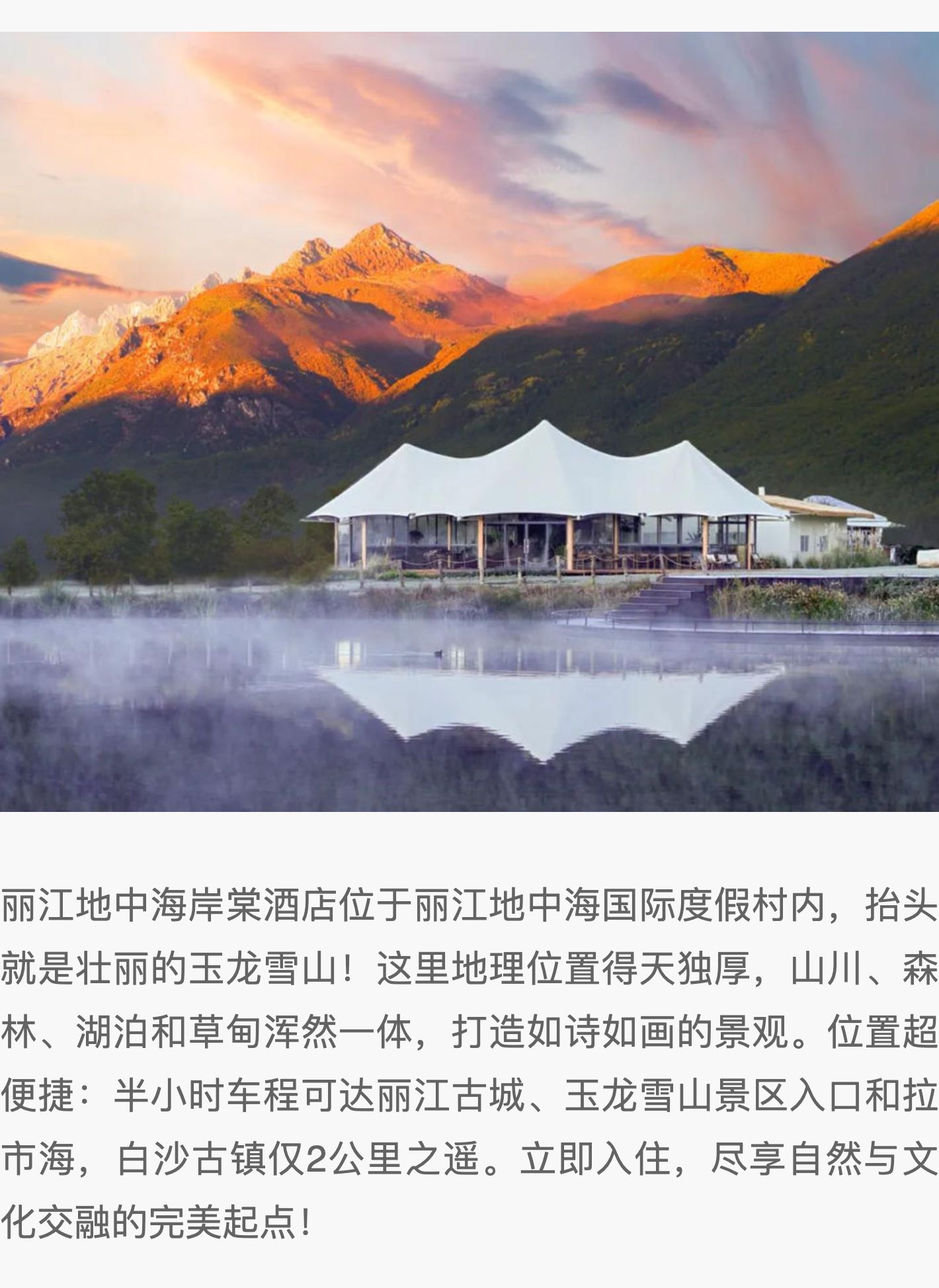 2晚/3晚【丽江地中海·棠岸度假酒店(地中海国际度假区店)】假期亲子游好去!住进玉龙雪山麓,享下午茶+旅拍等,近白沙古镇,悠然度假一步到位!
