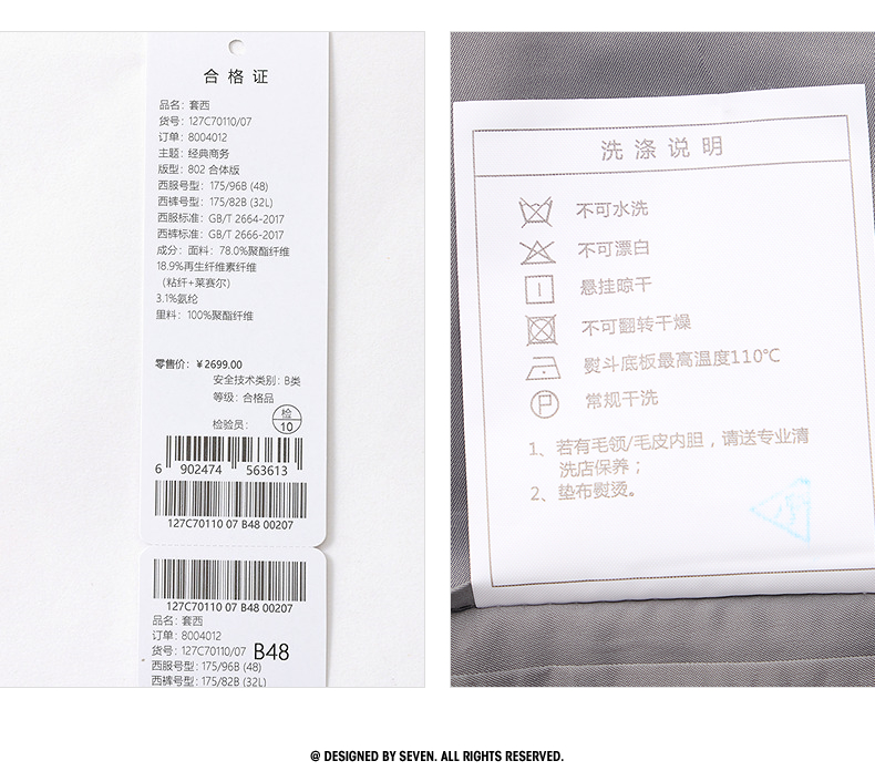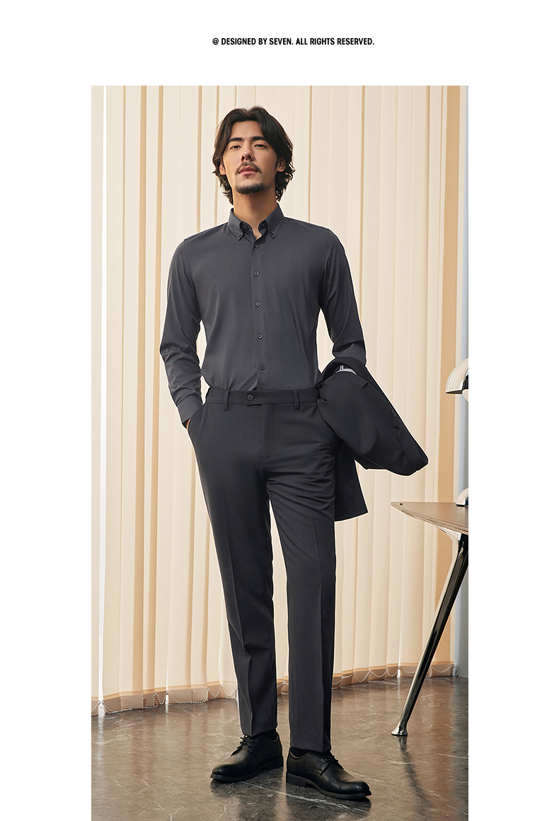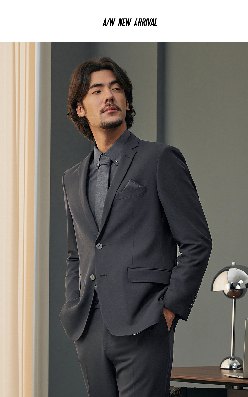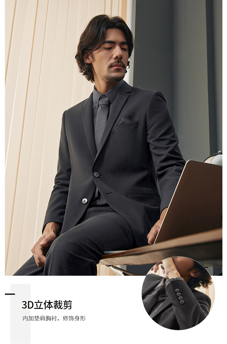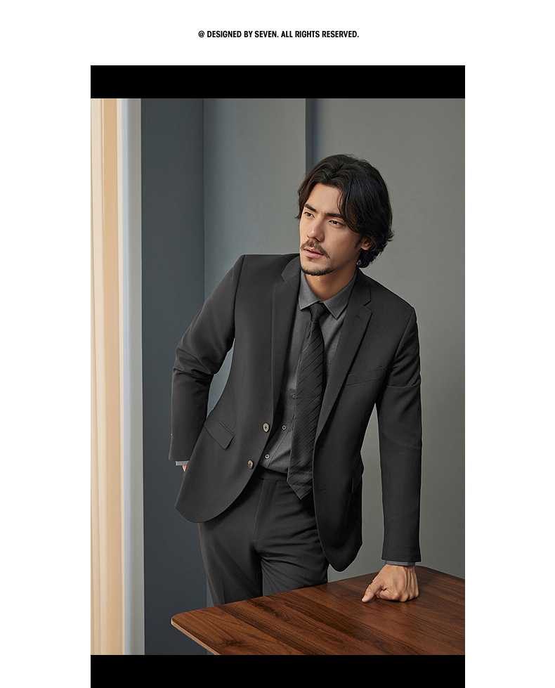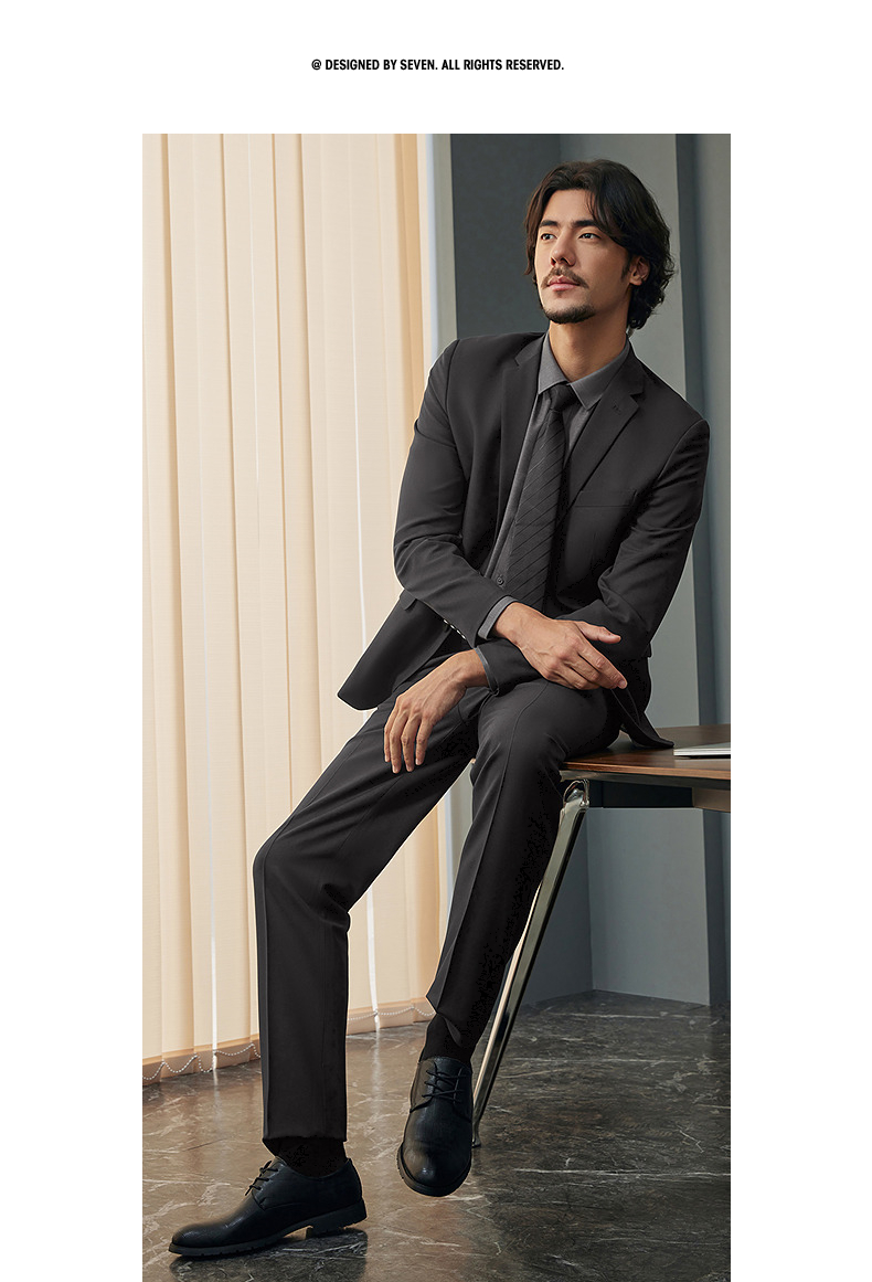 【婚礼季/犀牛褶免烫】柒牌西装男士套装2025秋季新款商务正装西服两件套 127C70110