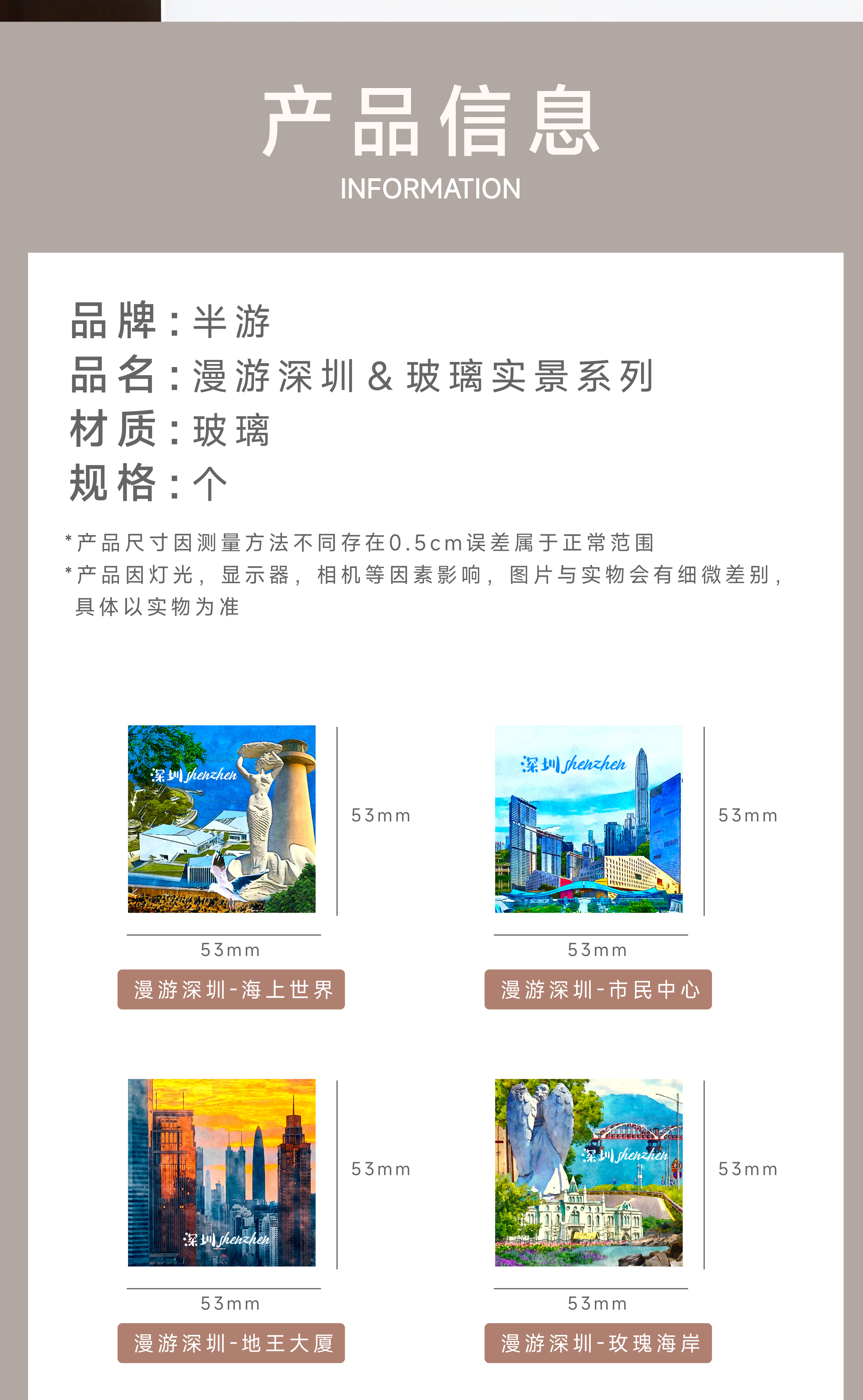 深圳手信 半游深圳印象玻璃实景冰箱贴