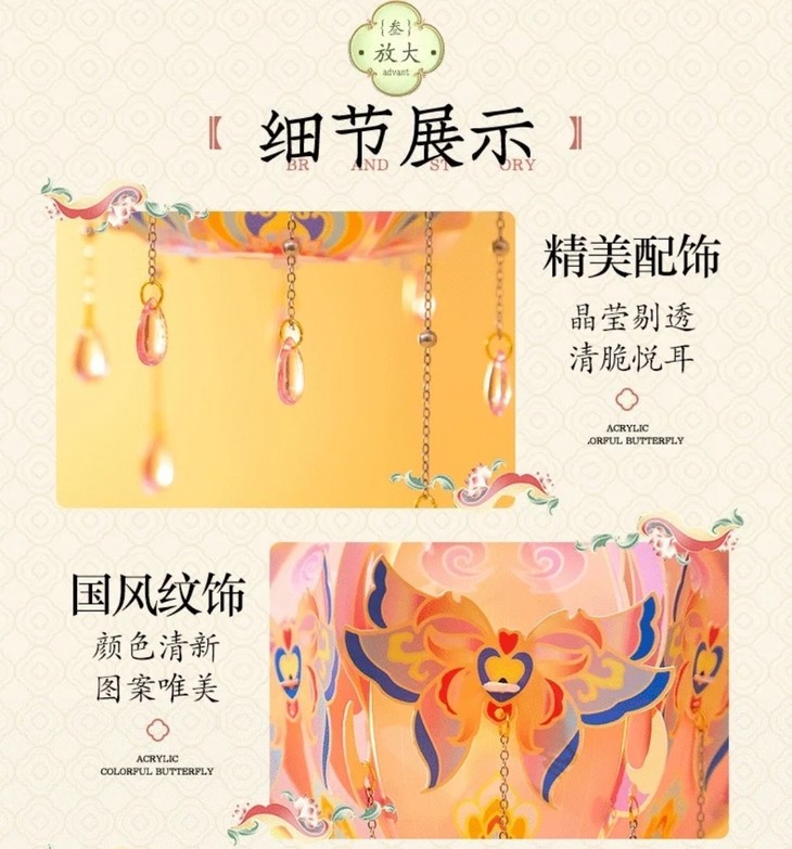 中秋夜和家人漫步赏月,提着它,温馨浪漫; 参加汉服活动,与汉服搭配,古风韵味十足 挂在家中,也是超美的装饰,增添中国风氛围。