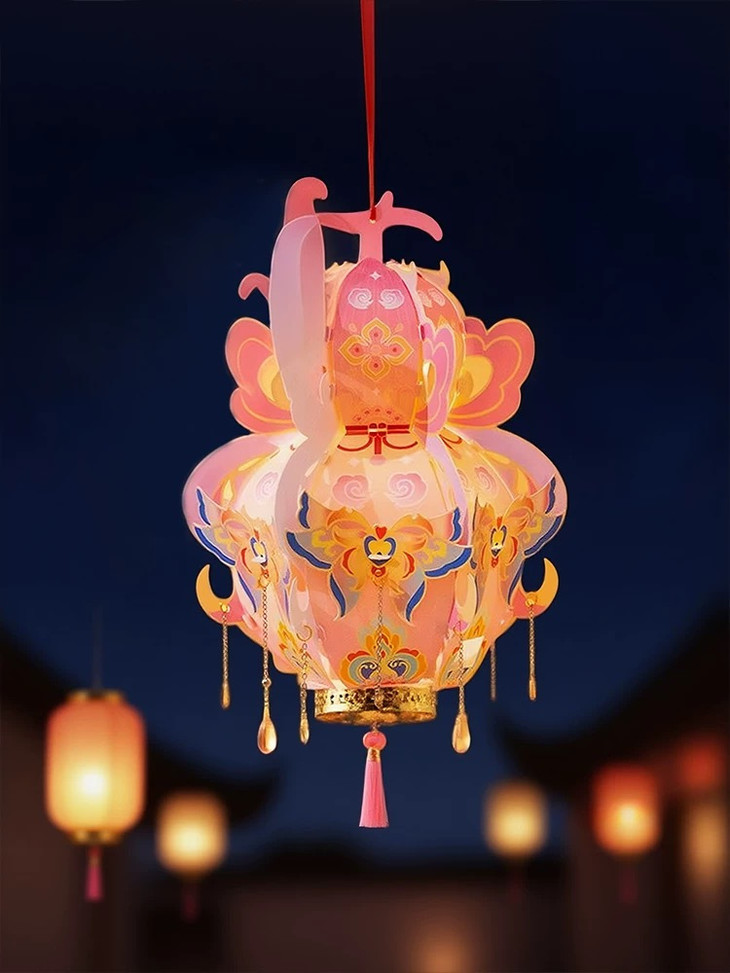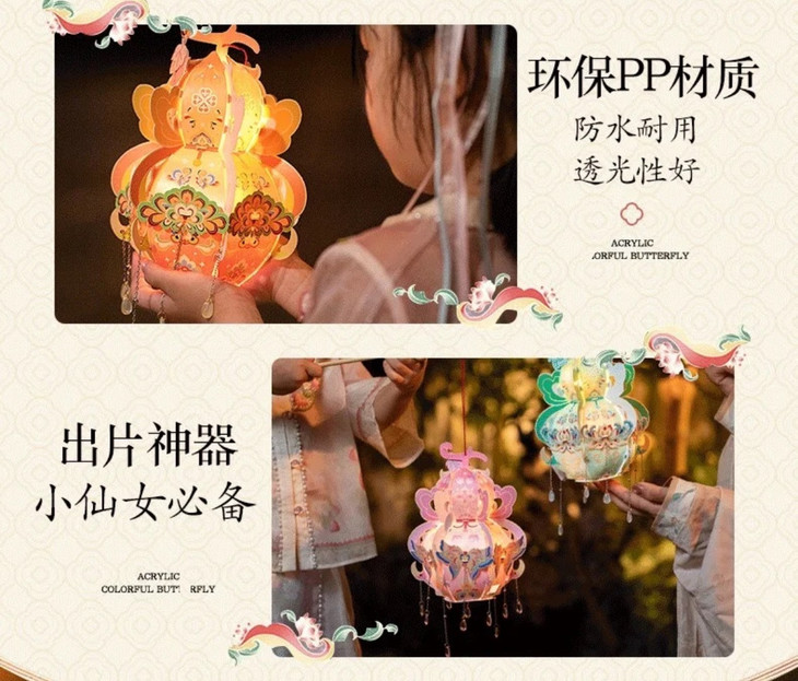 内置 LED 灯,暖光、白光、暖白光三档可调节 光线柔和不刺眼,点亮瞬间氛围感拉满 仿佛穿越回古代中秋夜~ 环保材质制作,安全无毒,手提部分加固处理,提着它走夜路也超安心。